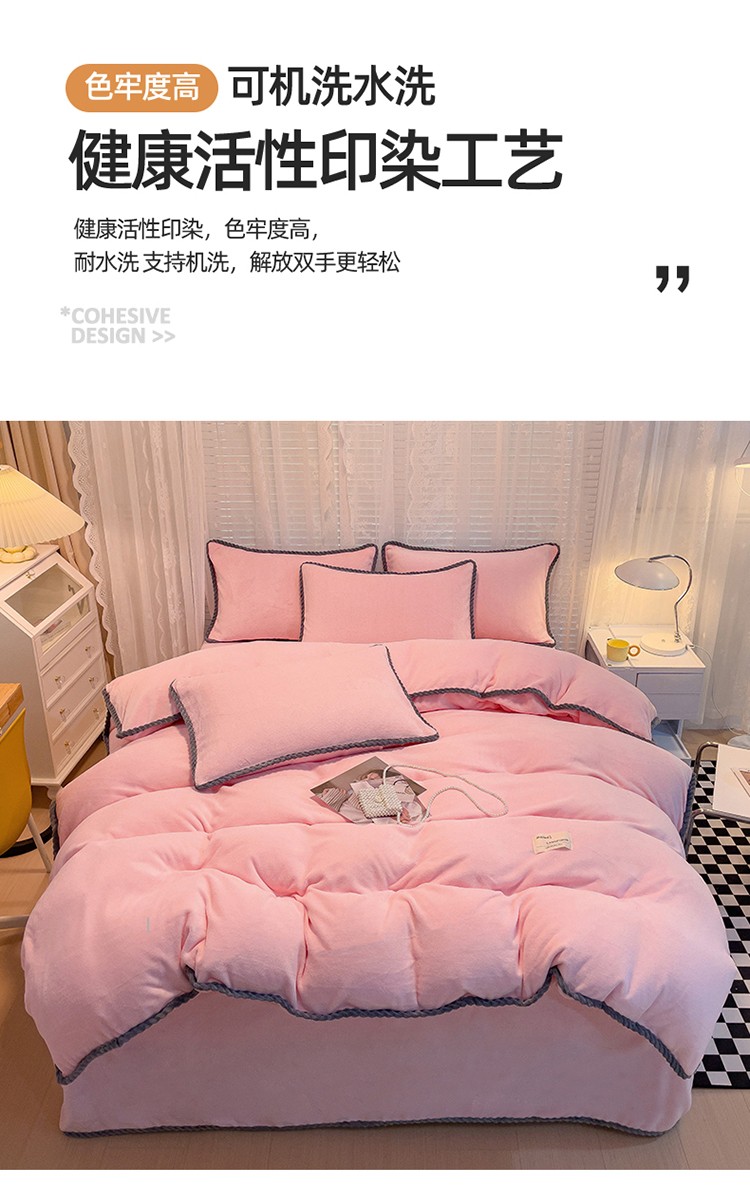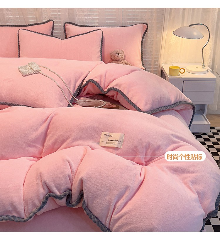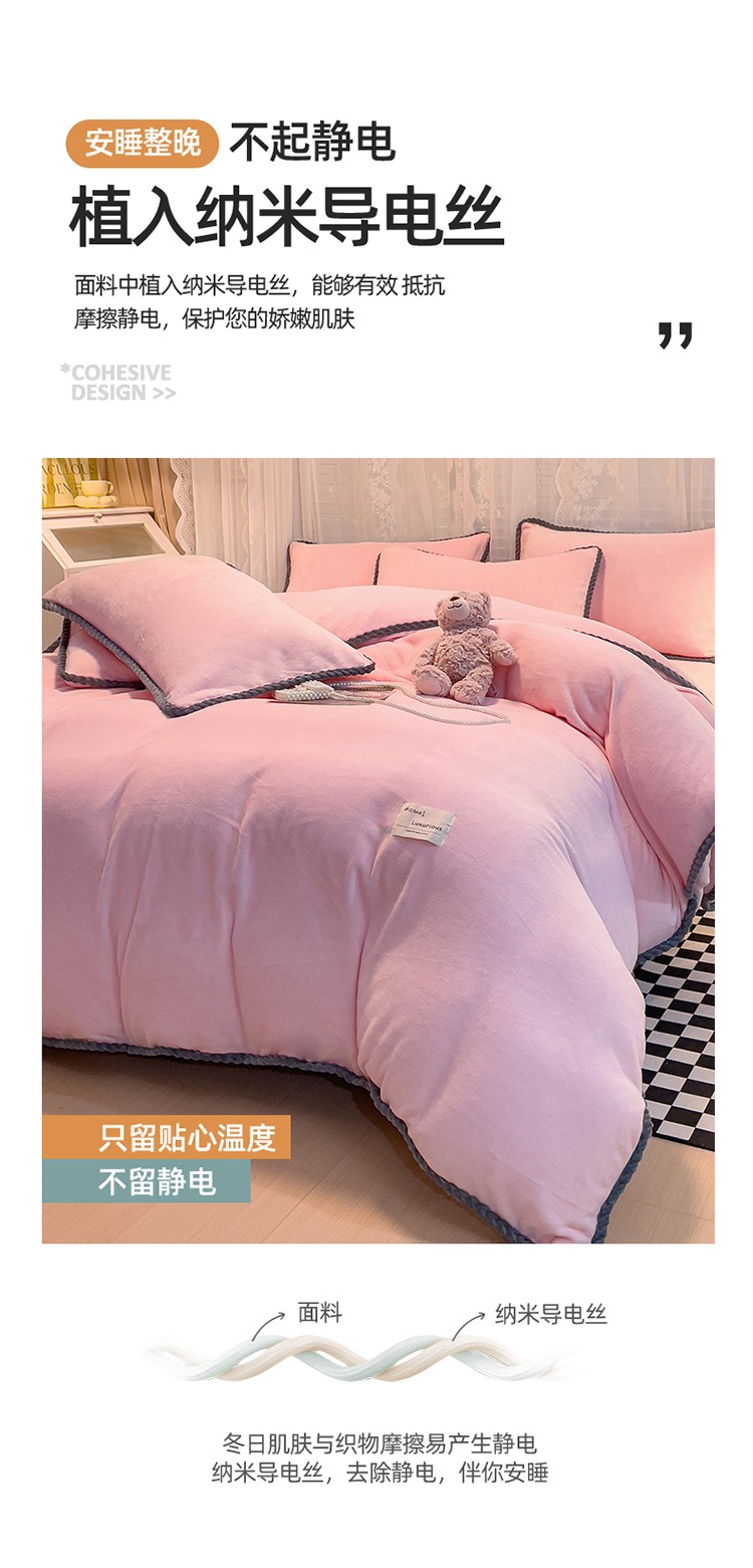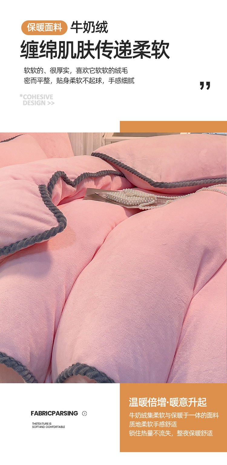 商品名称:2023新款加厚牛奶绒纯色优雅四件套 优雅-粉色