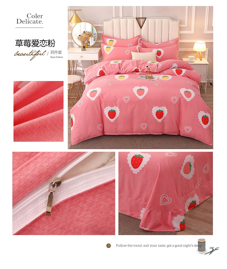 当前位置: 91家纺网 > 商品网购 > 床品套件 > 四件套 > 全棉普通四件套 > 晶缦 2023新款典雅系全棉活性磨毛四件套 草莓爱恋粉