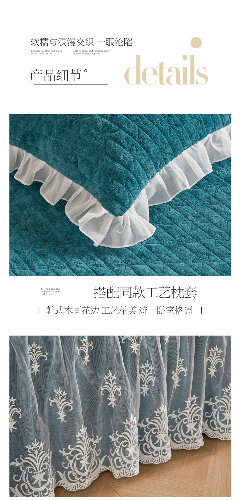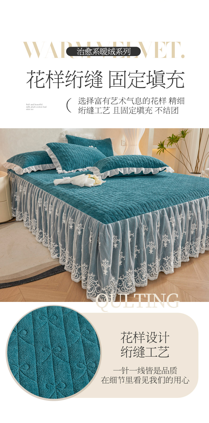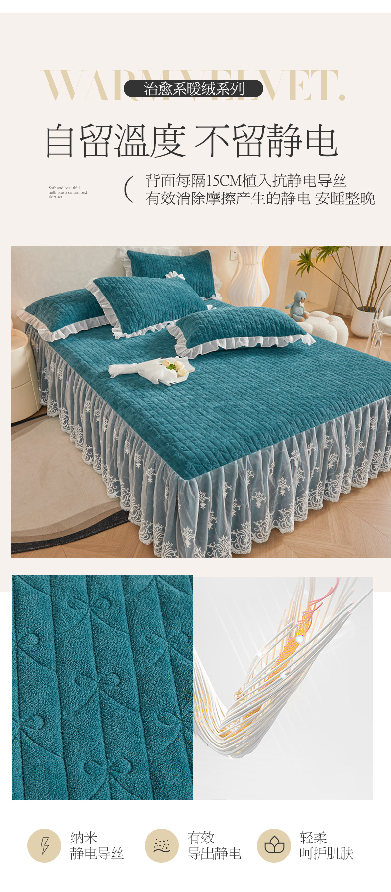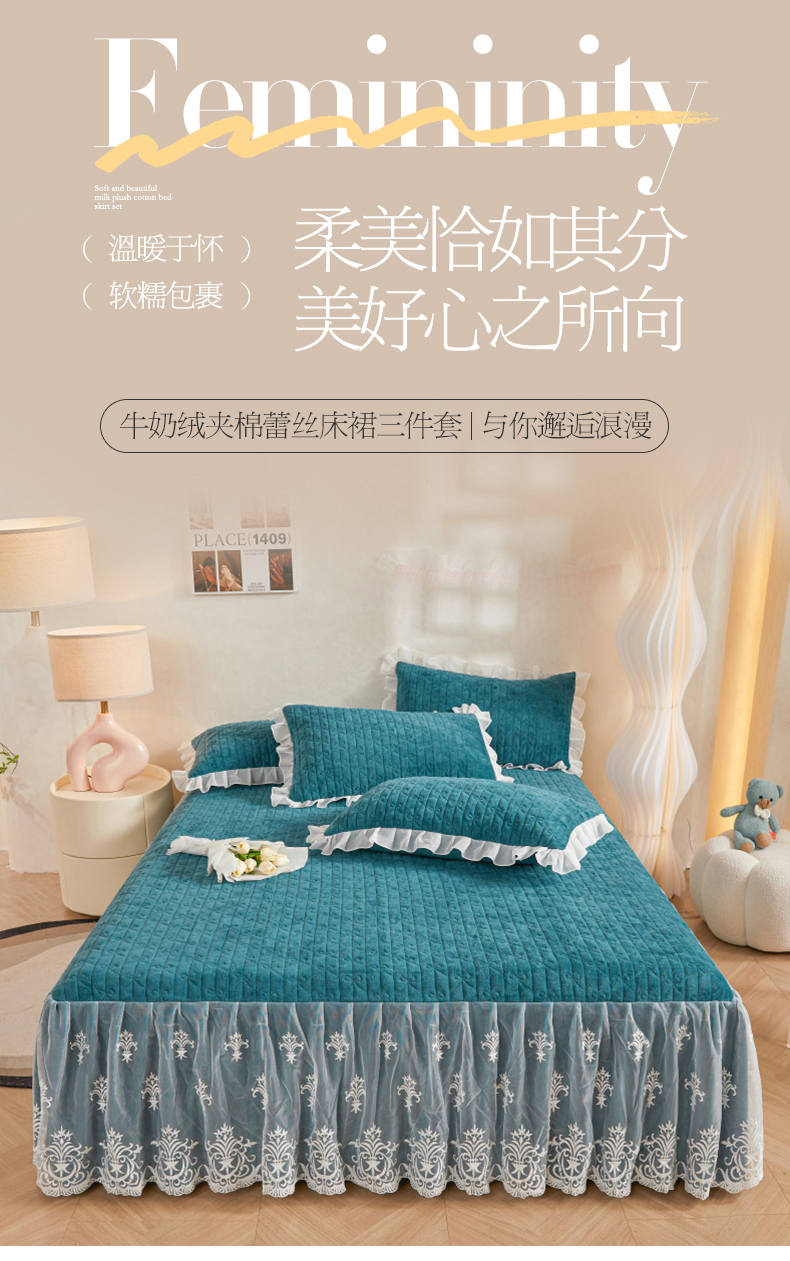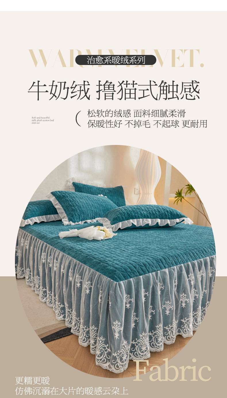 虹星家纺 2023新款牛奶绒夹棉床裙套件清新系列-床裙款单床裙 清新-孔雀兰