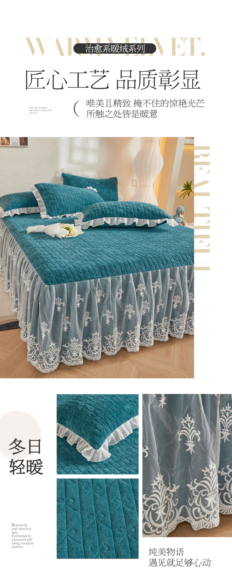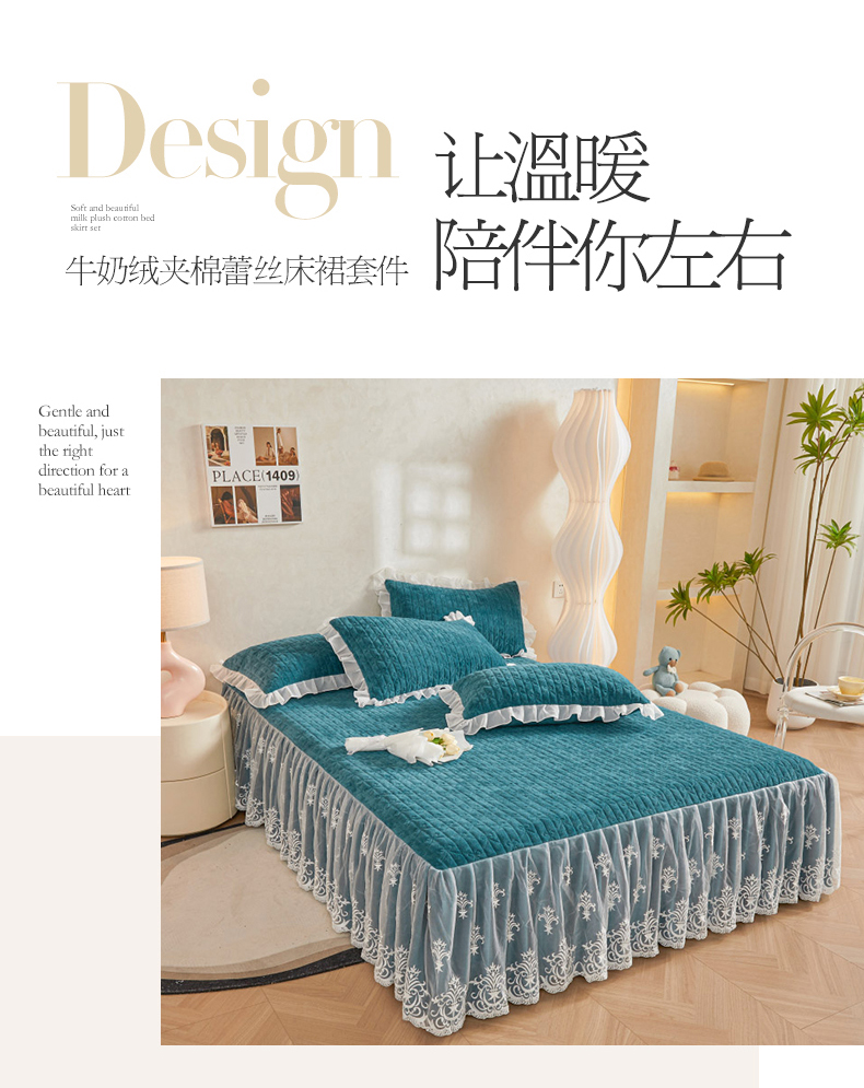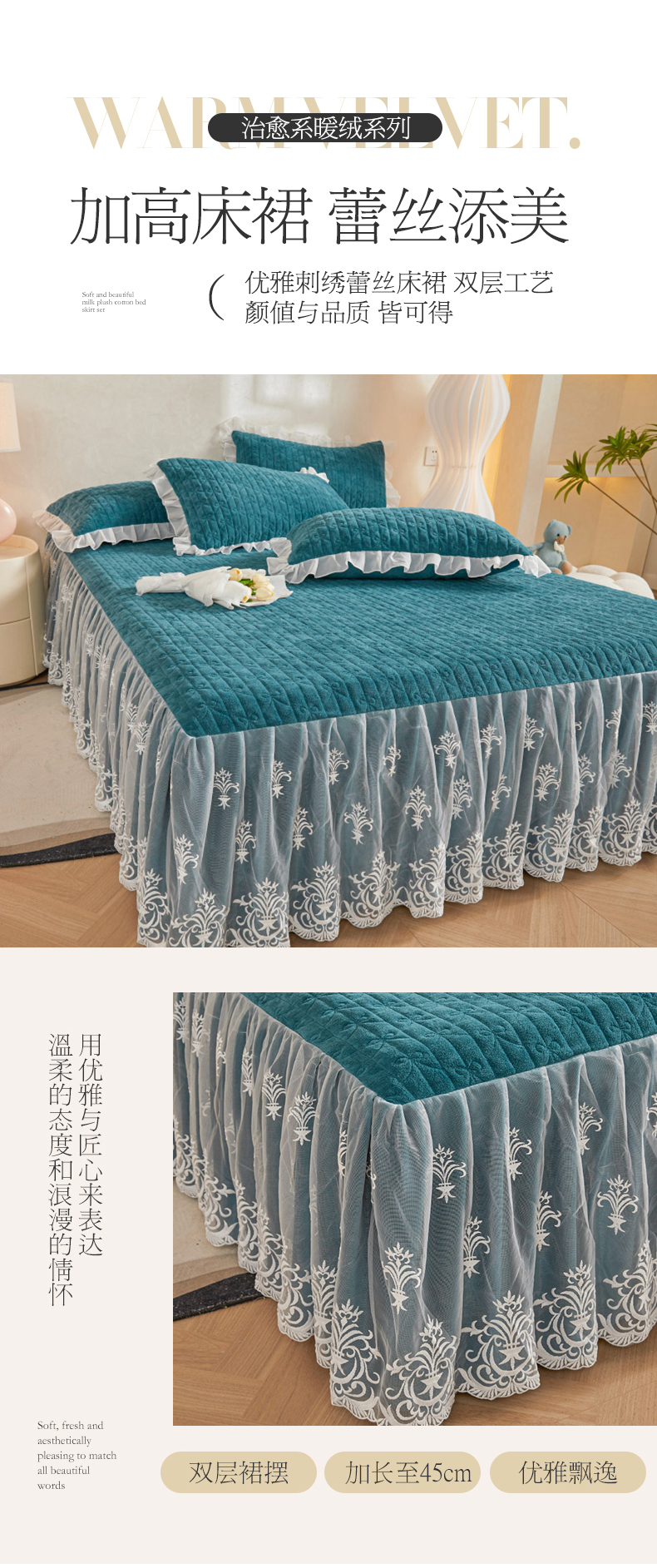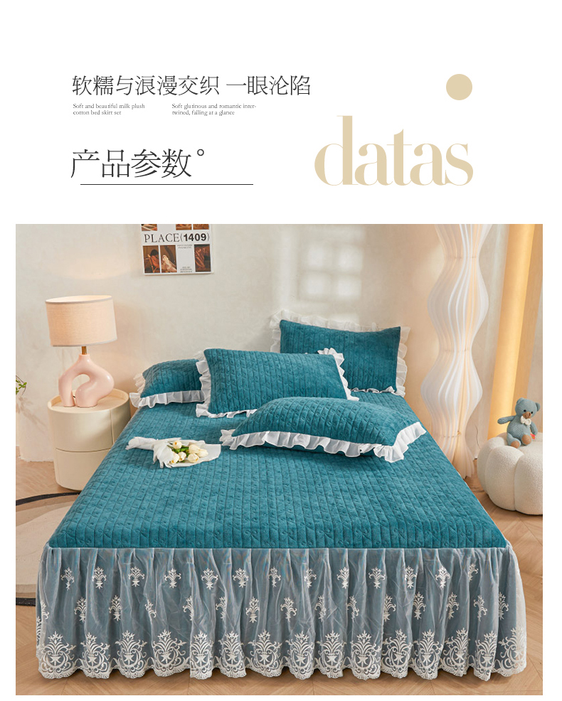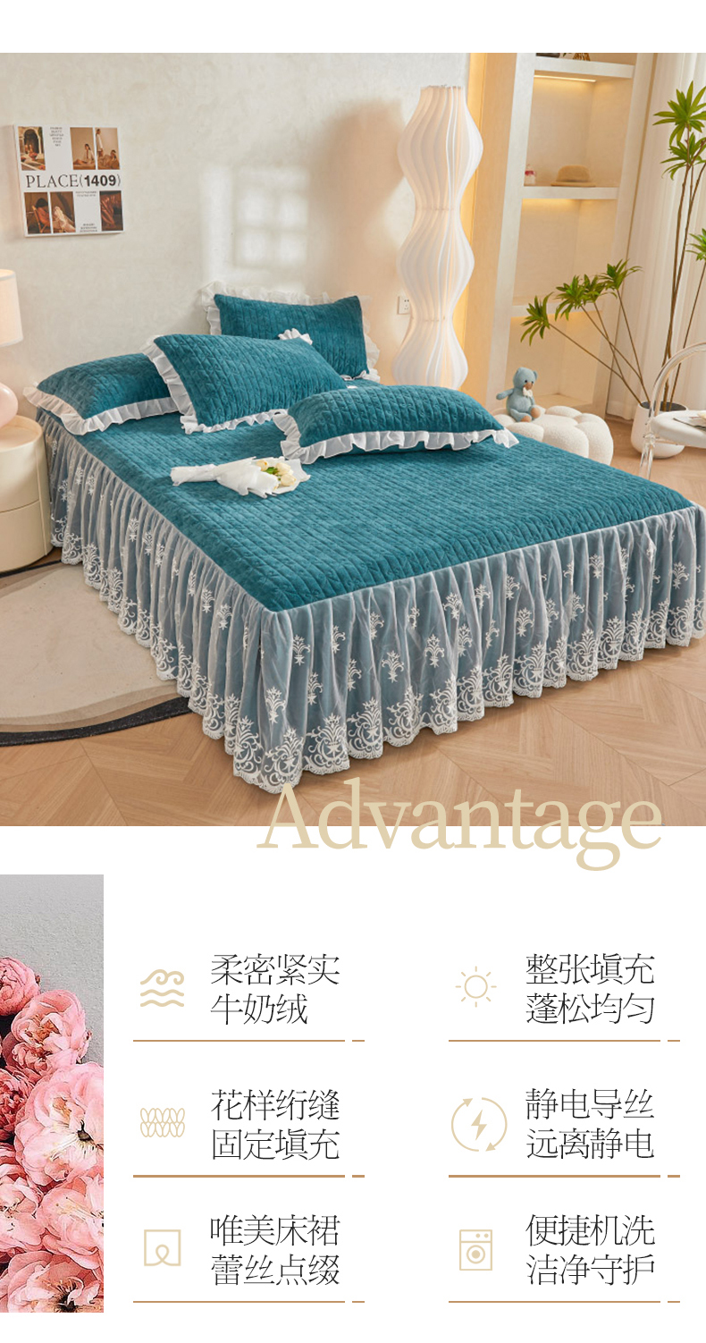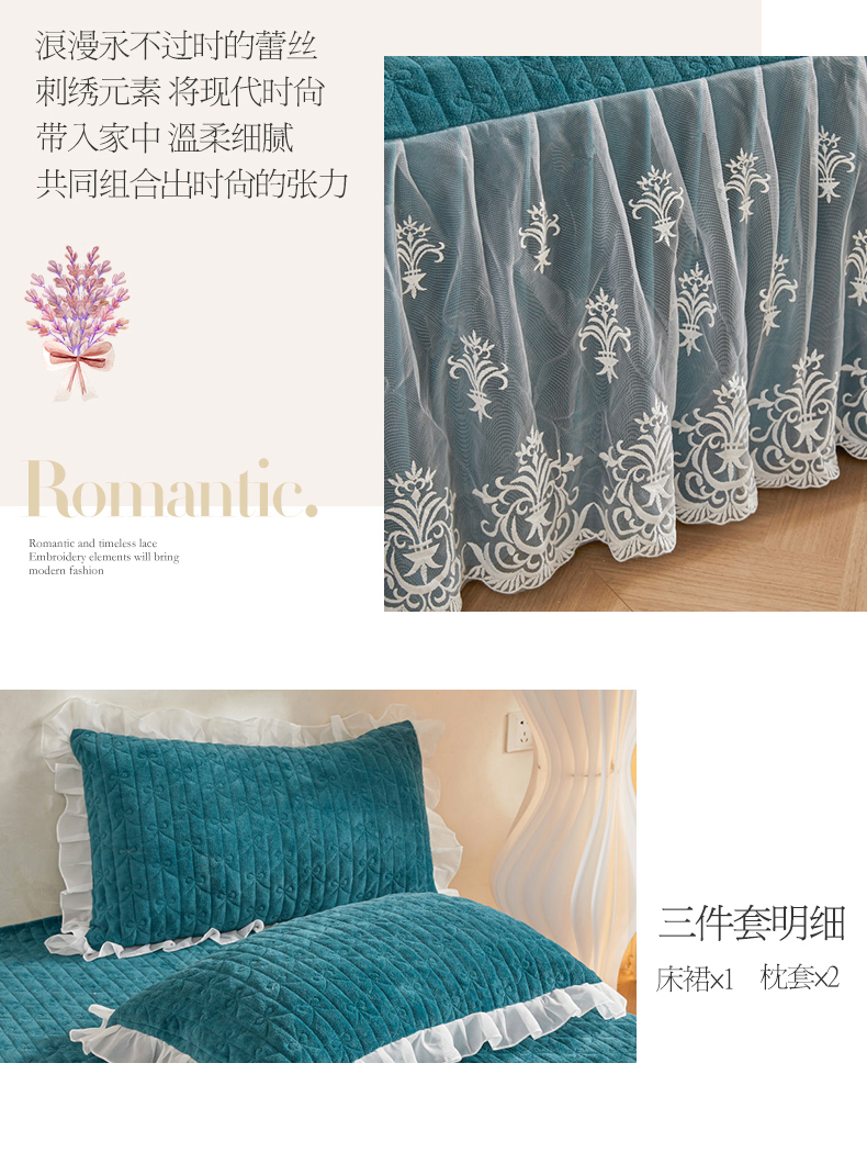 虹星家纺 2023新款牛奶绒夹棉床裙套件清新系列-床裙款单床裙 清新-孔雀兰