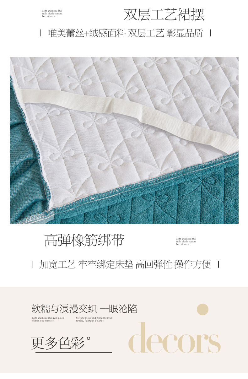 商品名称:虹星家纺 2023新款牛奶绒夹棉床裙套件清新系列-床裙款单床裙 清新-孔雀兰