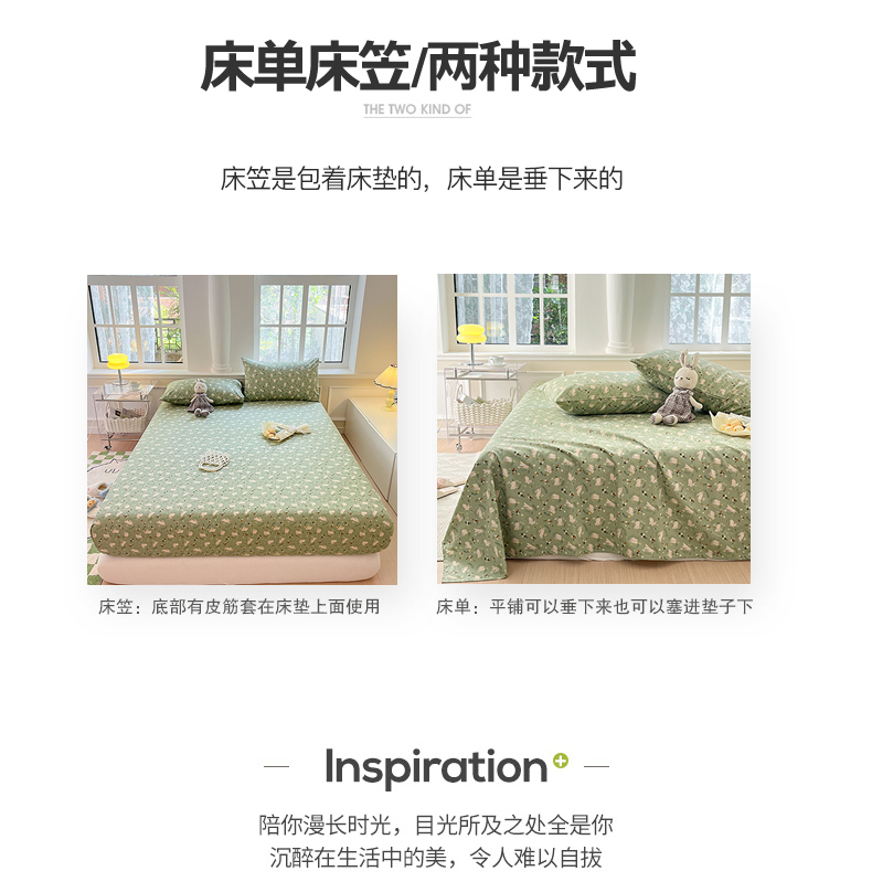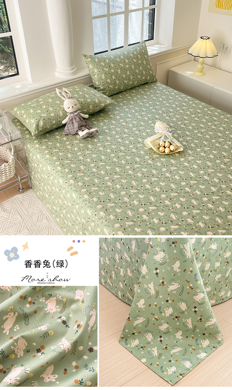 麦伦 2023新款全棉单品A版单床单床笠-单床单 香香兔-绿