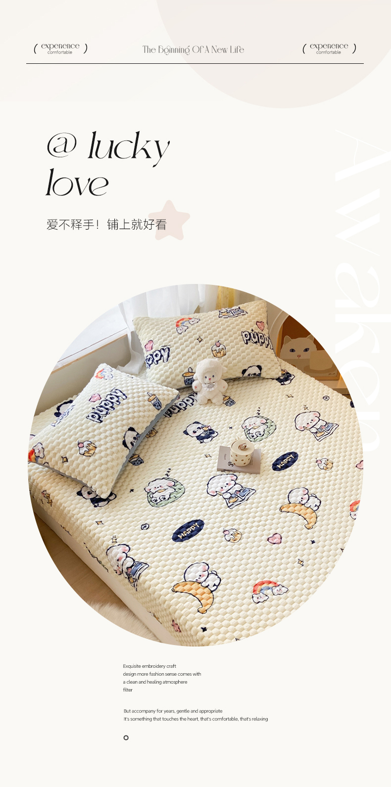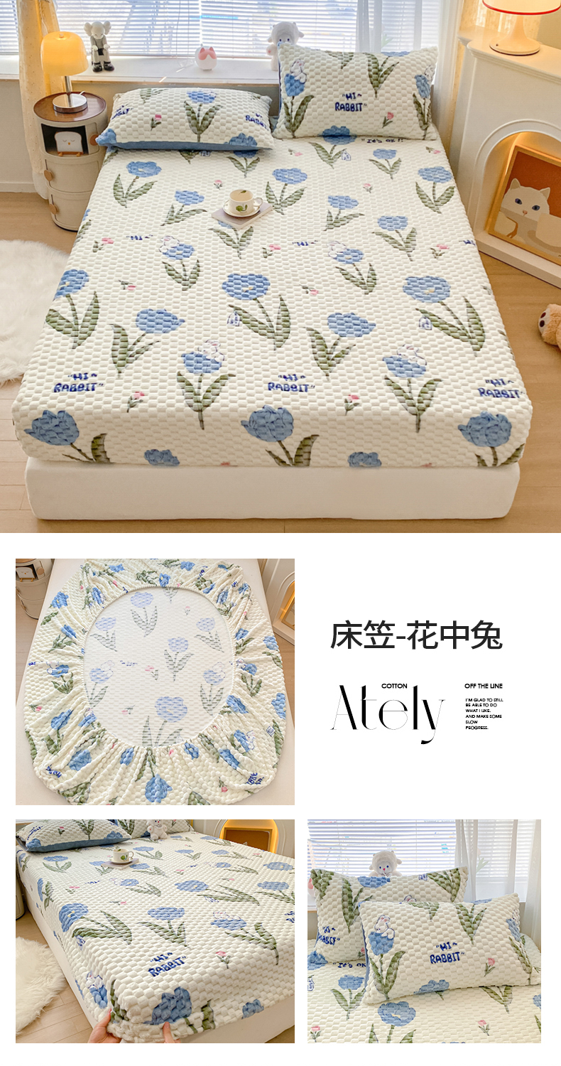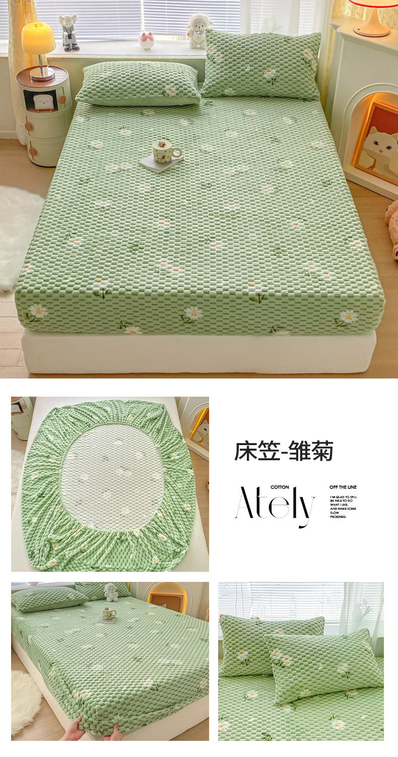 (总)欧邦 新款A类提花豆豆绒金龟绒床笠