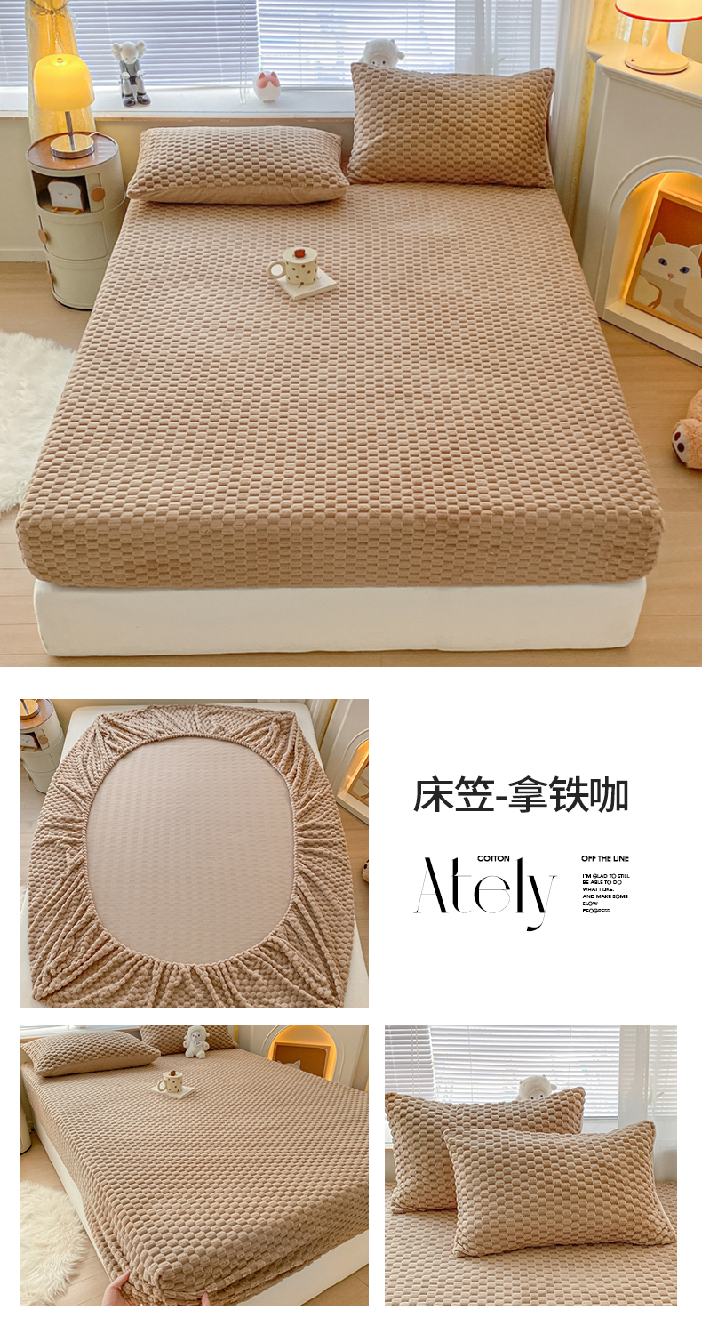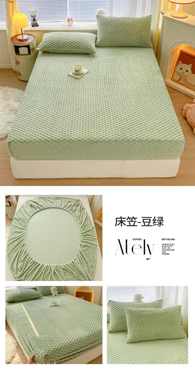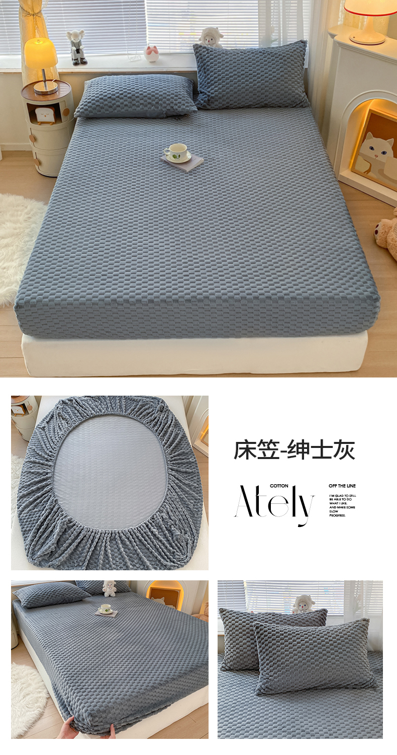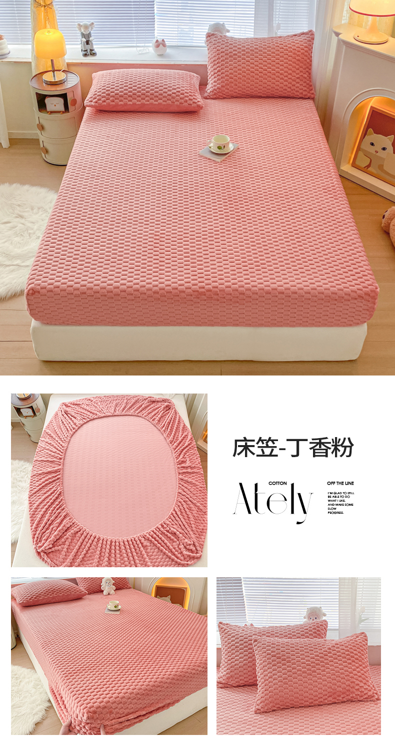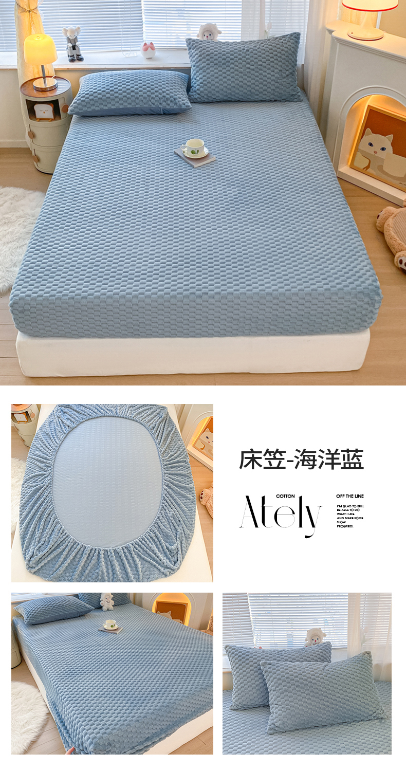 (总)欧邦 2025新款提花暖阳绒单床笠,苍穹蓝,初雪白,海棠粉,慕斯灰,青瓷绿,檀木咖
