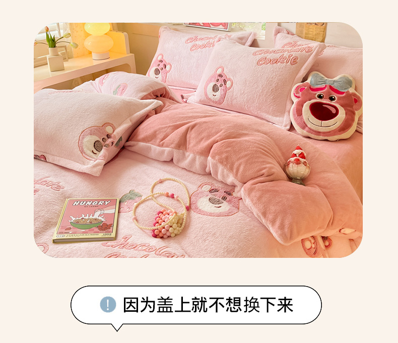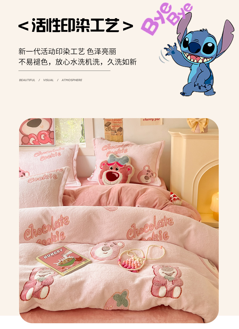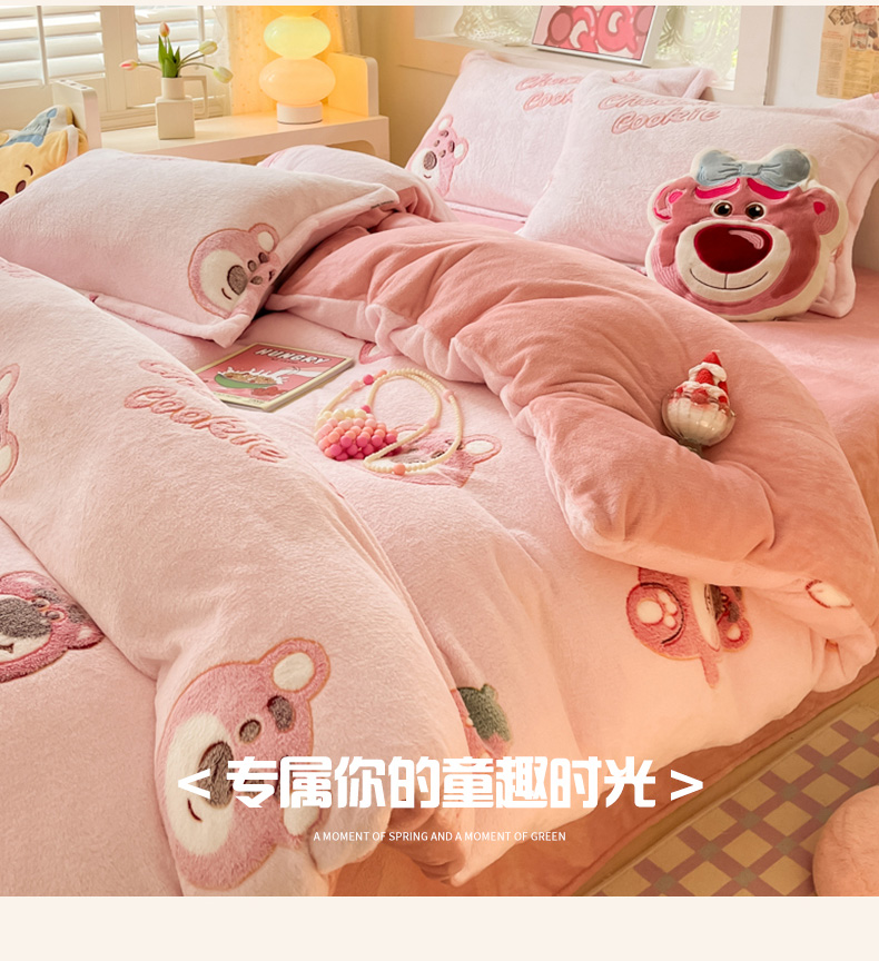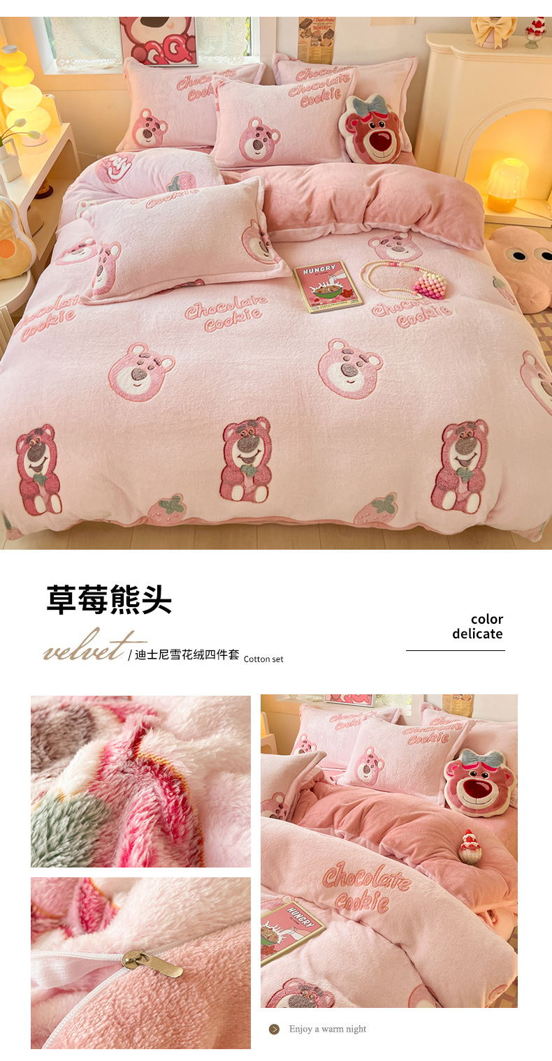 柒月家居 2023新款迪士尼雪花绒四件套 草莓熊头