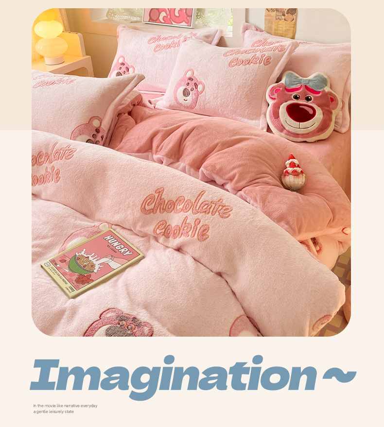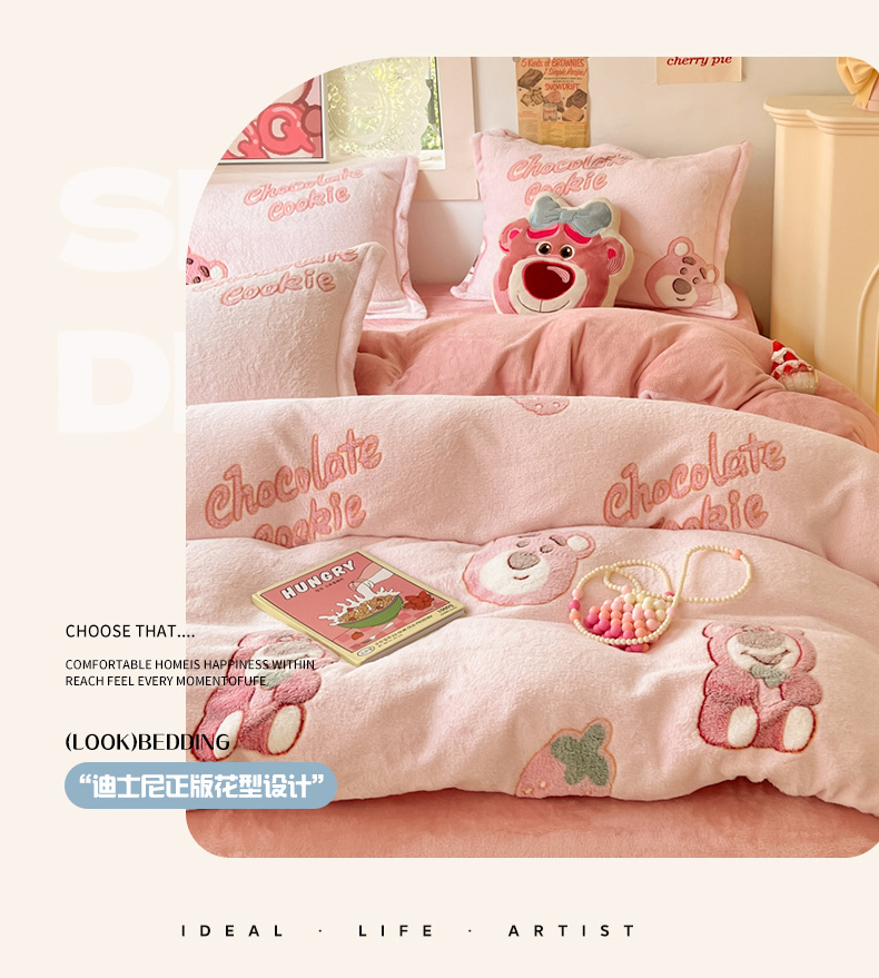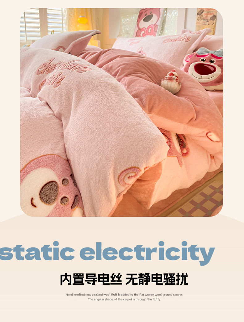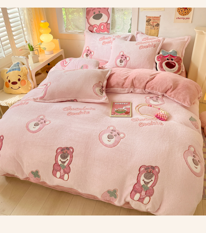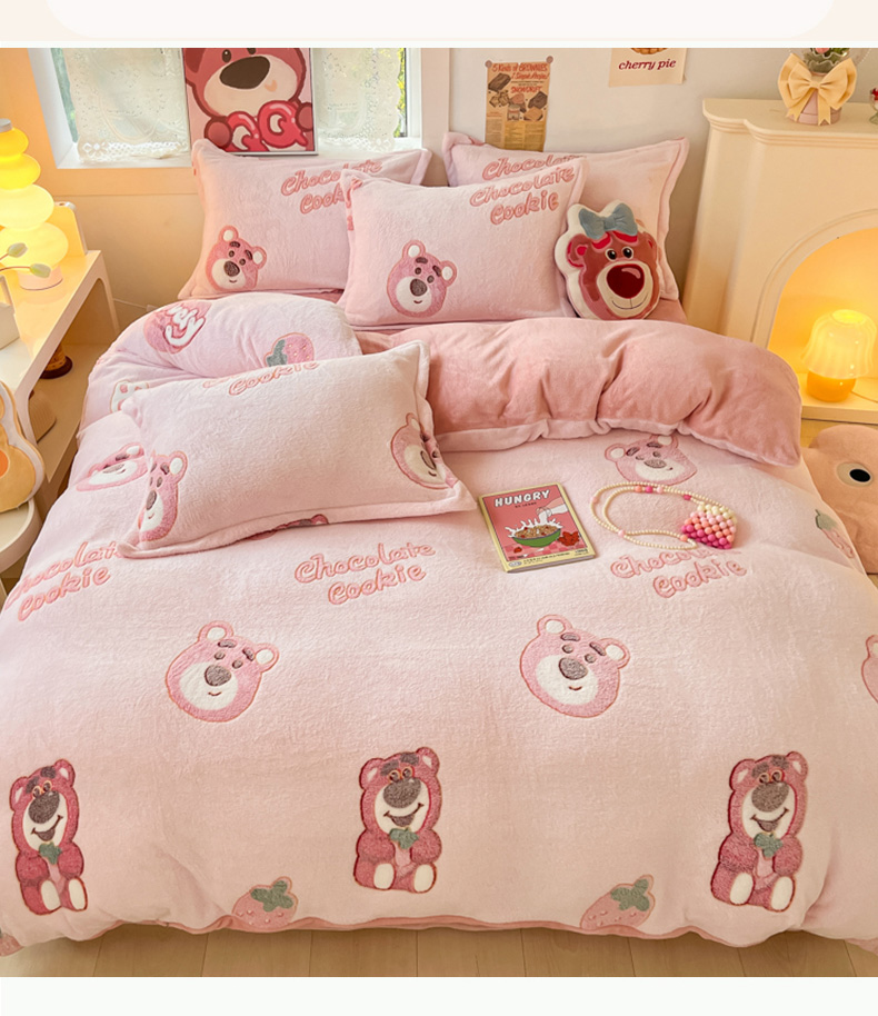 柒月家居 2023新款迪士尼雪花绒四件套 草莓熊头