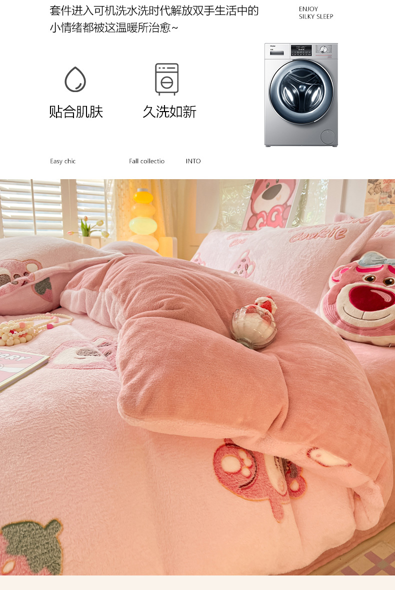 商品名称:柒月家居 2023新款迪士尼雪花绒四件套 草莓熊头