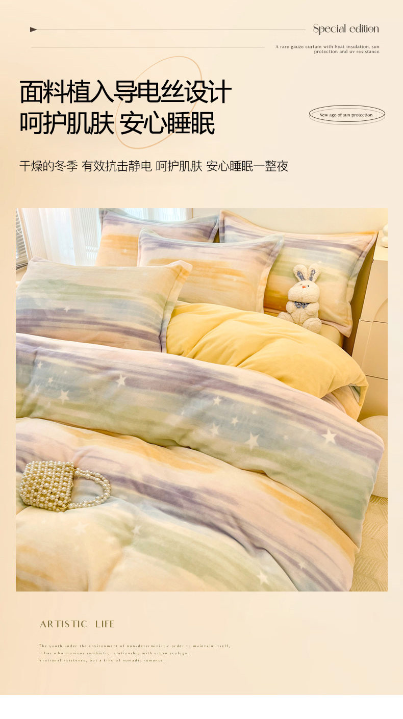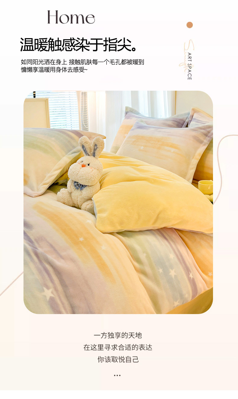 当前位置: 91家纺网 > 商品网购 > 床品套件 > 四件套 > 牛奶绒四件套 > 寐居家纺 2023新款小清新牛奶绒印花四件套 七彩流星