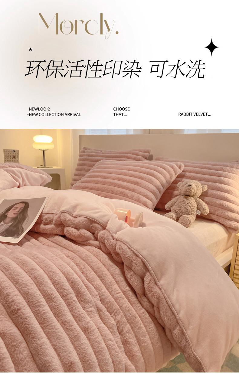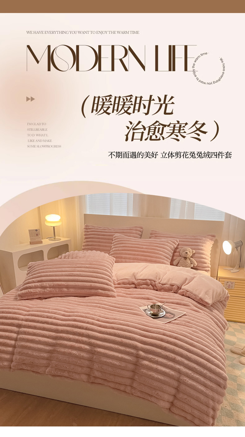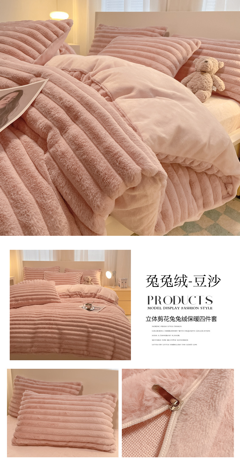 当前位置: 91家纺网 > 商品网购 > 床品套件 > 四件套 > 兔毛绒四件套 > 柒月家居 2023新款兔兔绒四件套 兔兔绒-豆沙