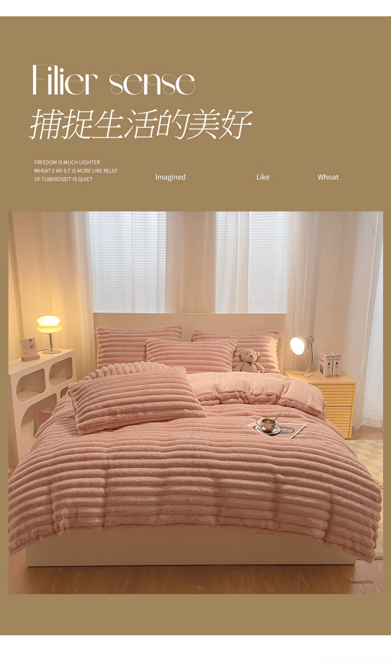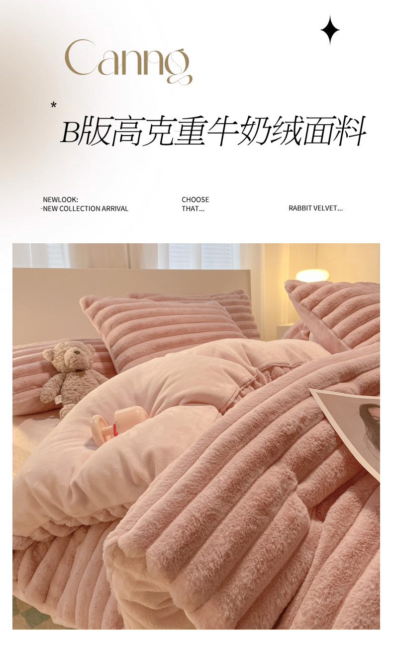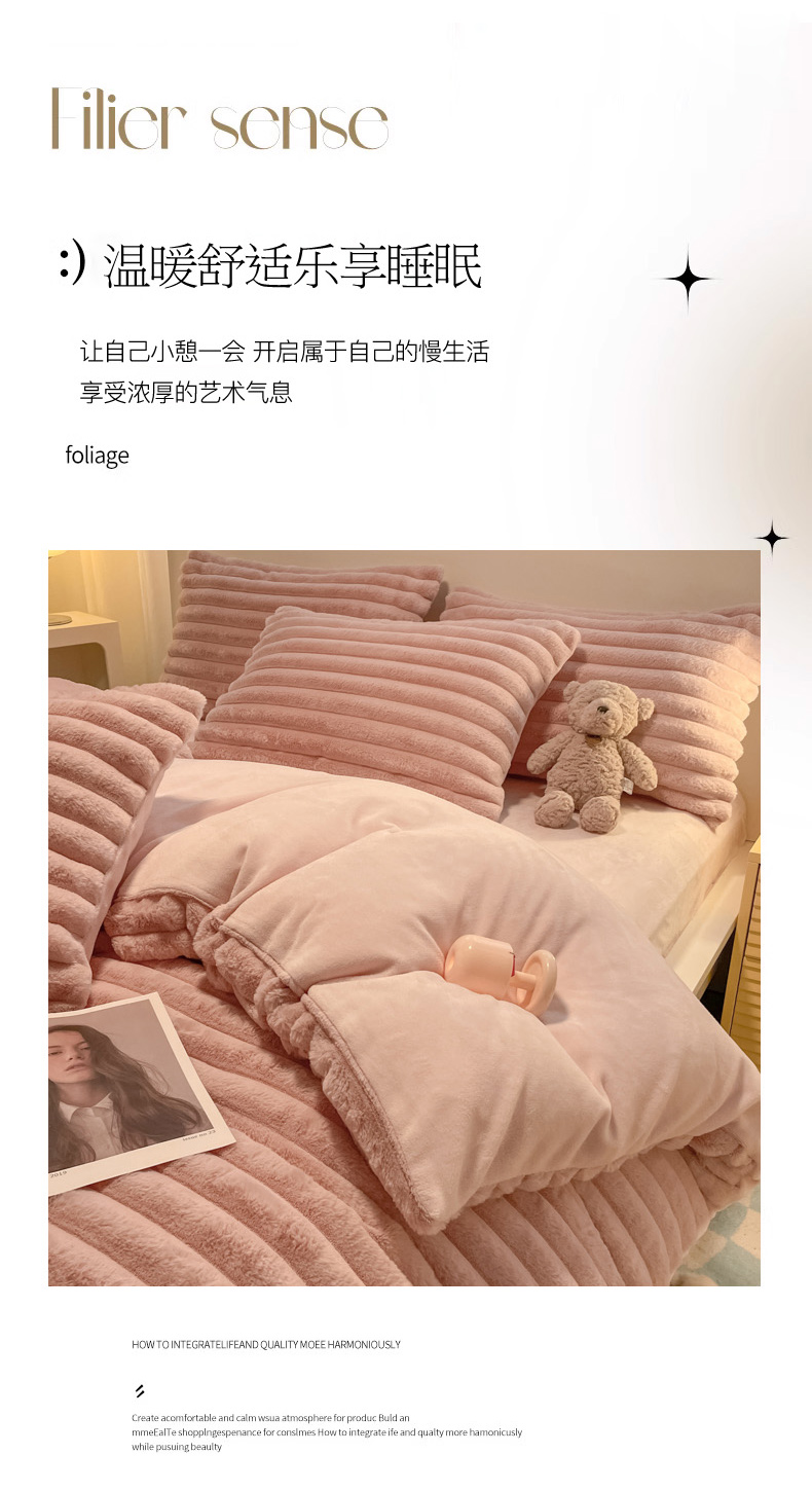 当前位置: 91家纺网 > 商品网购 > 床品套件 > 四件套 > 兔毛绒四件套 > 柒月家居 2023新款兔兔绒四件套 兔兔绒-豆沙