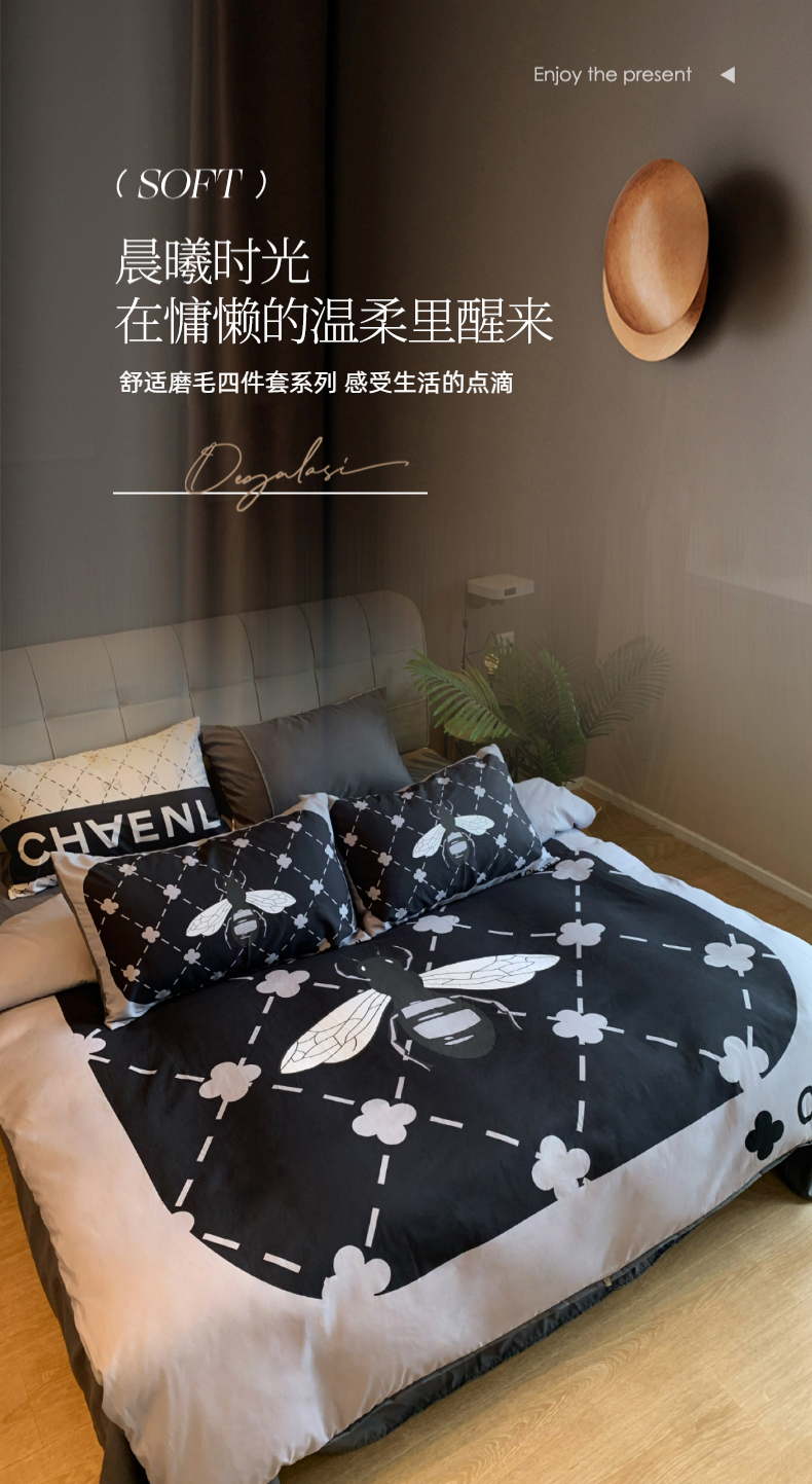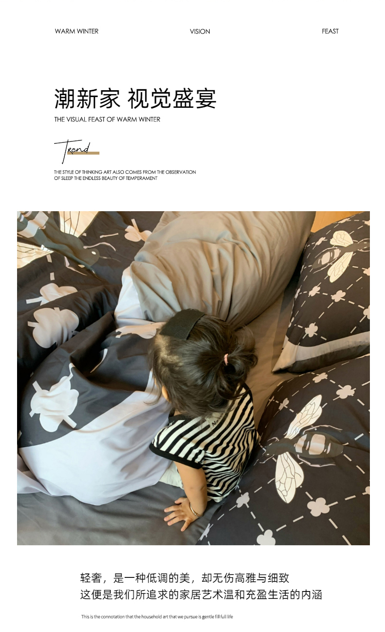 商品名称:色鬼 2023新款舒适潮牌风磨毛四件套 大蜜蜂