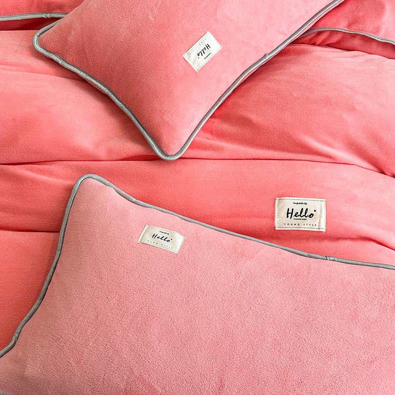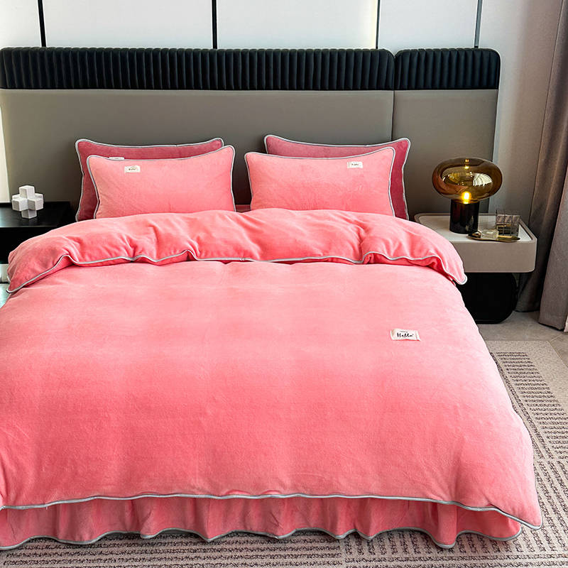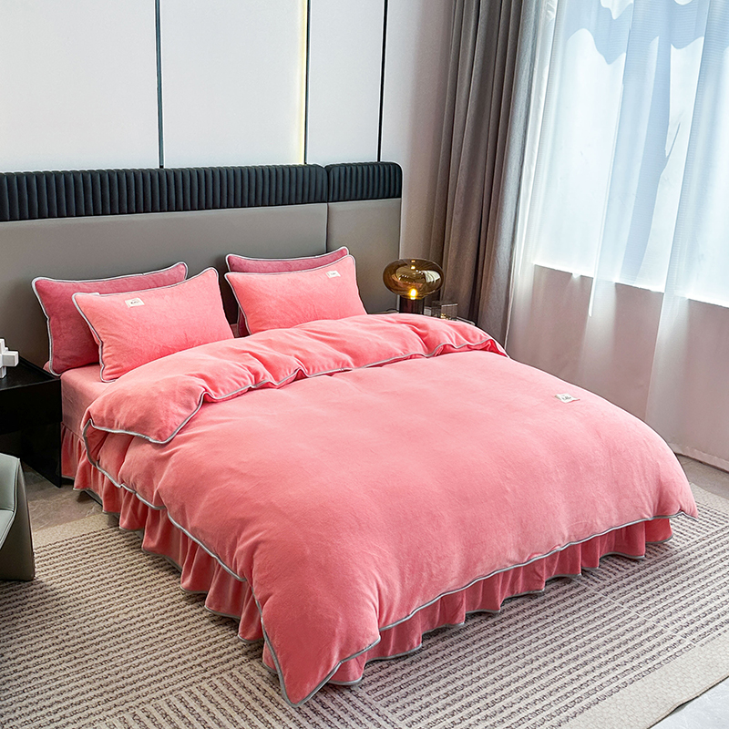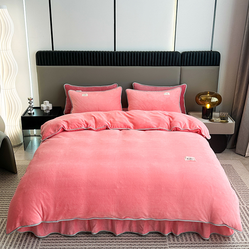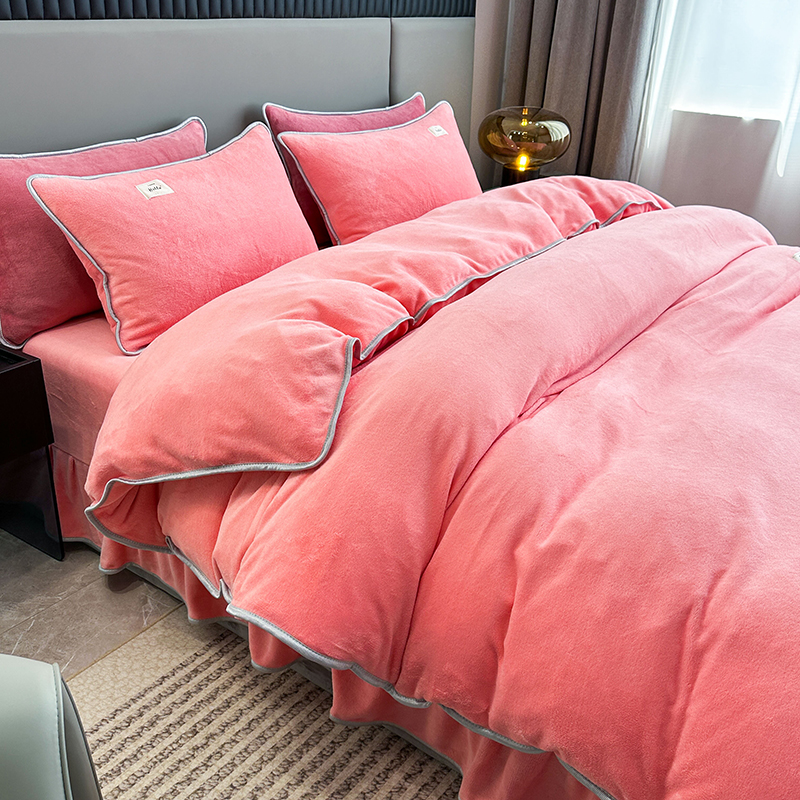 商品名称:欧喜璐 2023新款高克重牛奶绒四件套法莱绒金貂绒8.5斤加厚保暖-纯色款 西瓜红