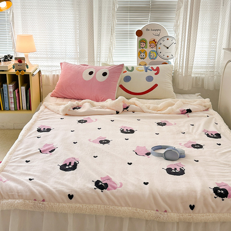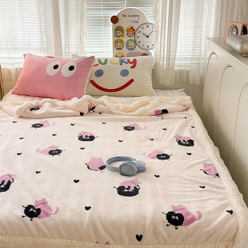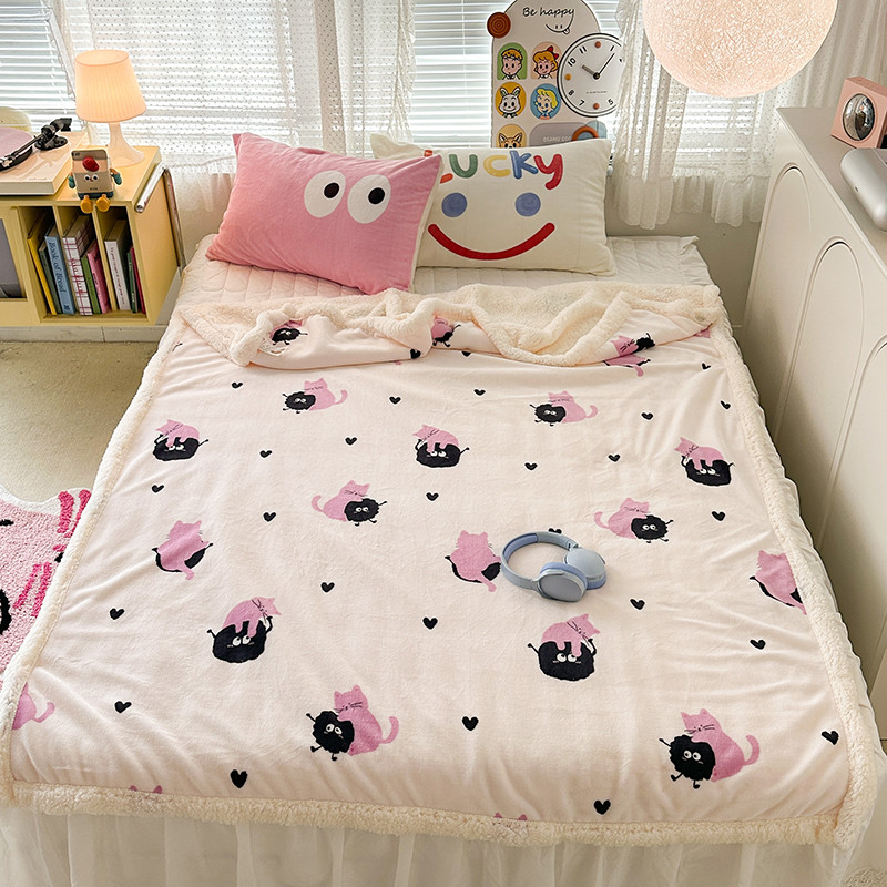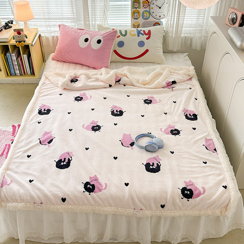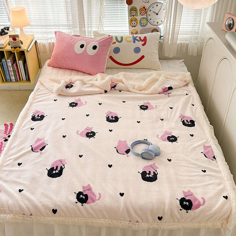 昔可家纺 2023新款ins风牛奶绒羊羔绒印花毛毯(风格一)粉猫煤球
