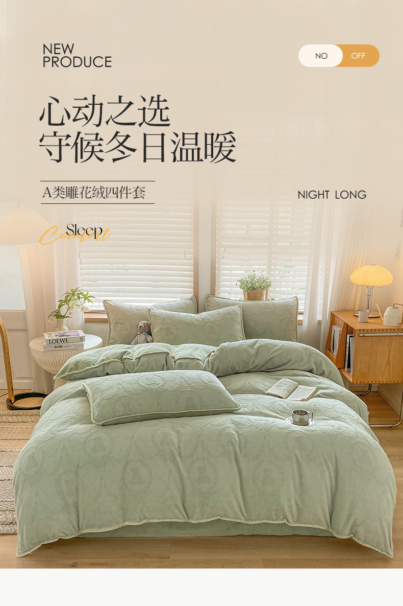 (总)简如 2025新款A类230克加厚立体雕花绒四件套,安吉拉-粉玉,安吉拉-海鸥灰,安吉拉-浅灰,安吉拉-浅绿,安吉拉-天空蓝,米兰-粉,米兰-米驼,米兰-玉,米兰-中灰