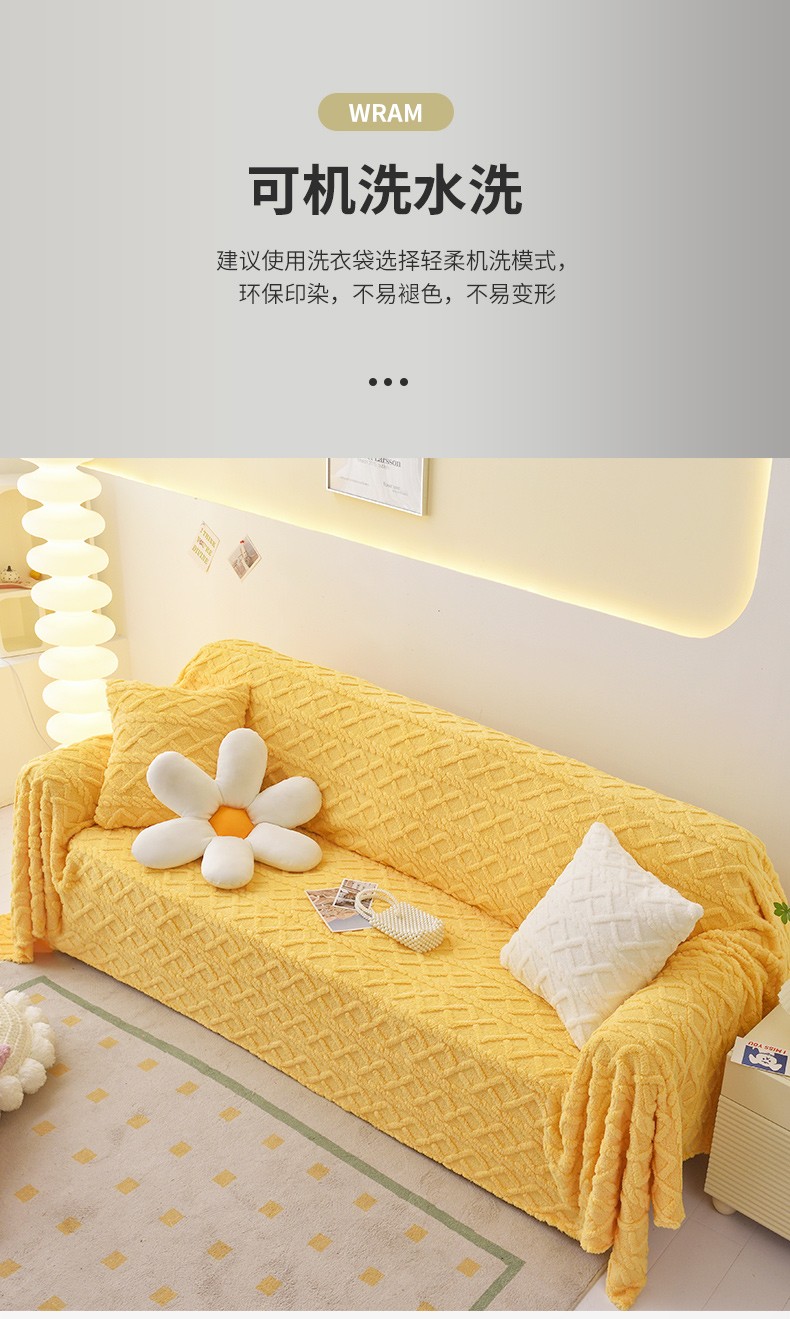 当前位置: 91家纺网 > 商品网购 > 居家布艺 > 坐垫/椅垫/沙发垫 > 沙发垫 > 启博 2023新款纯色提花绒沙发巾 奶咖色