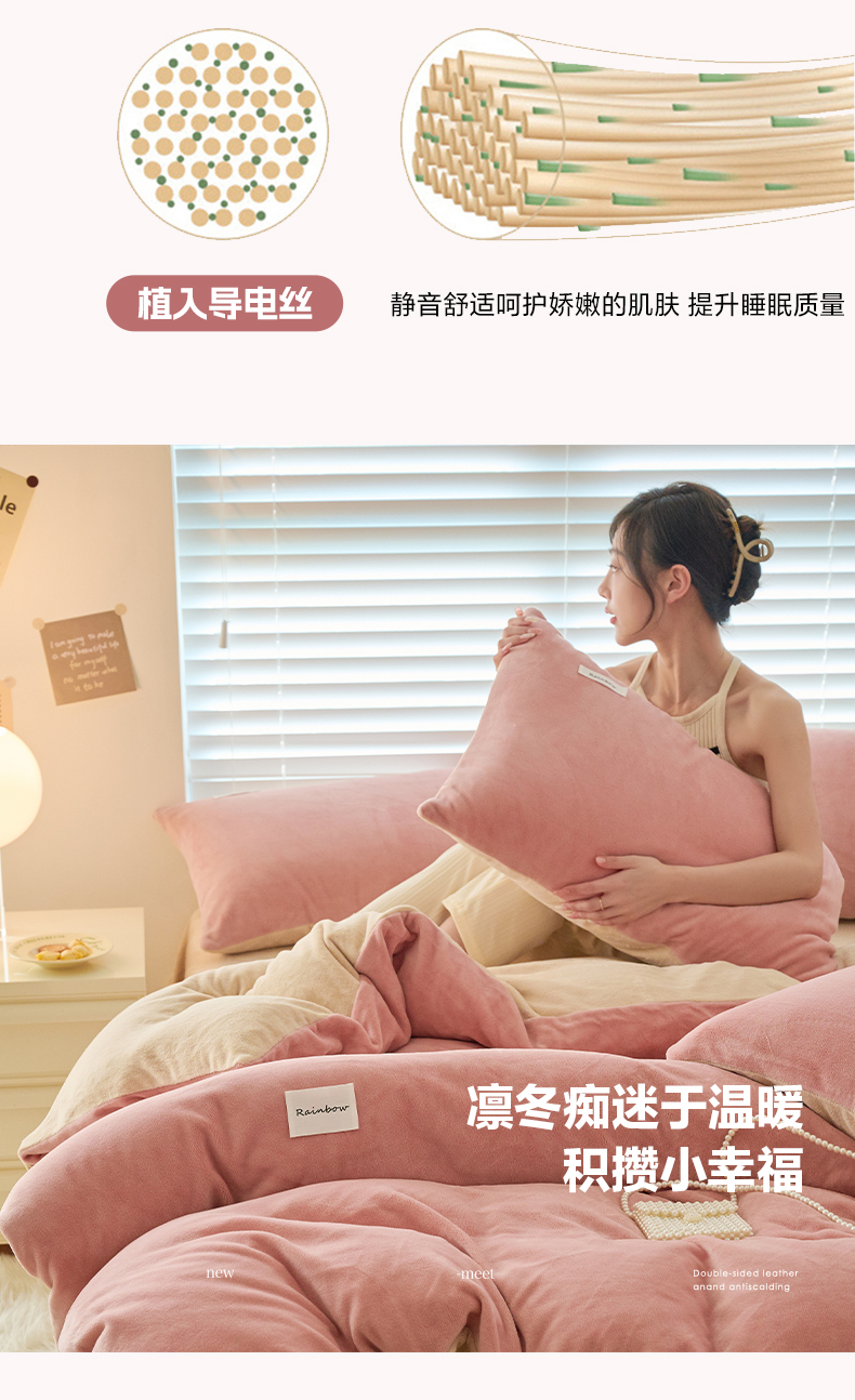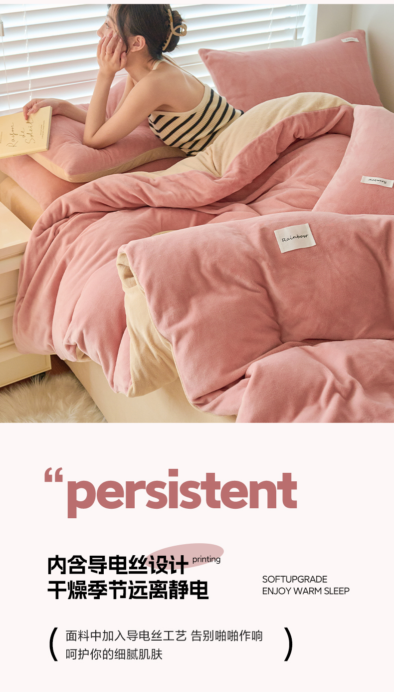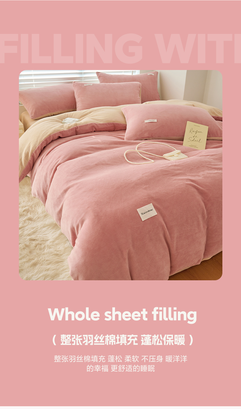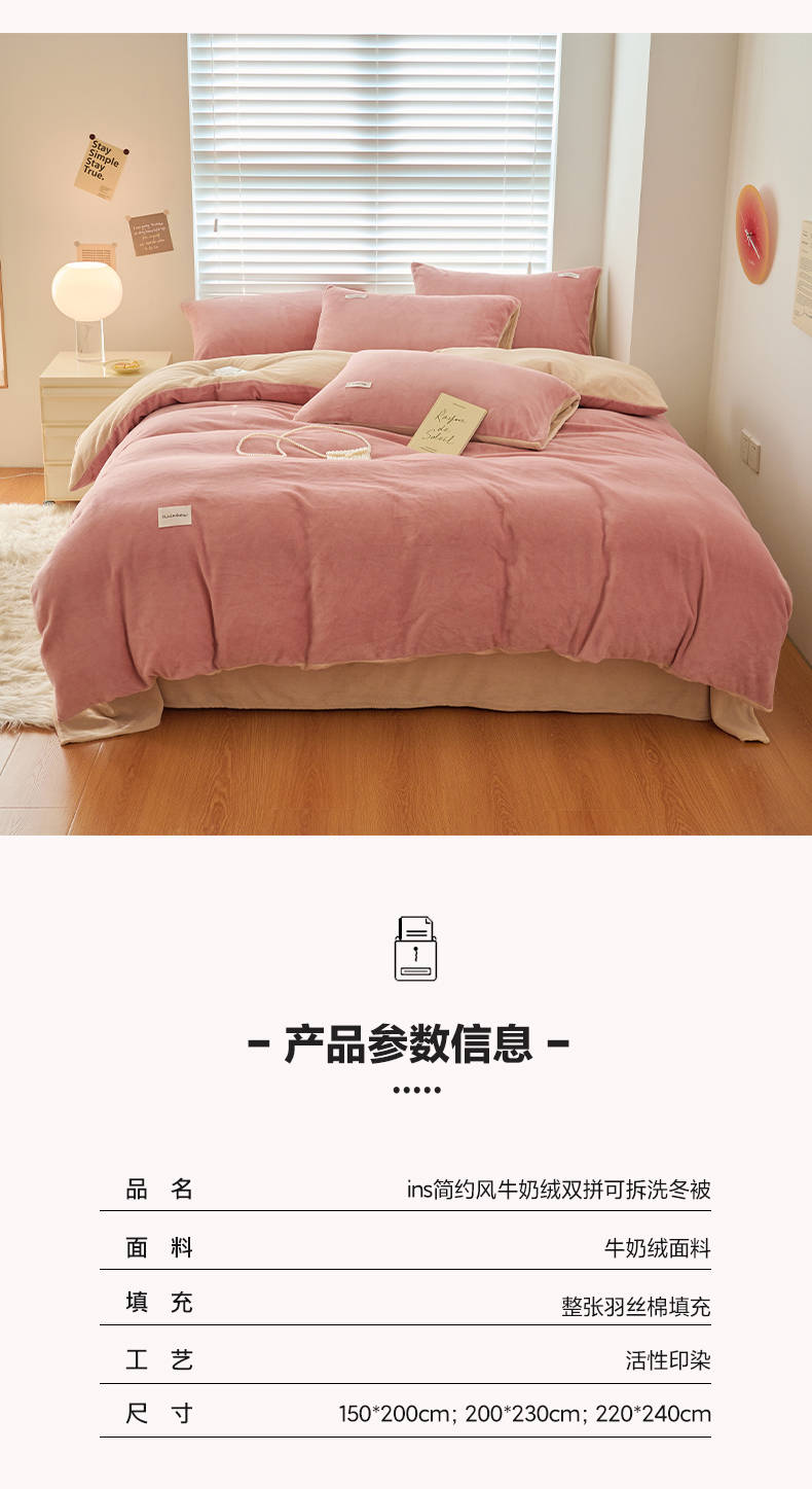 • 91家纺网 家纺一手货源 找家纺 晨曦 2023新款ins简约风牛奶绒双拼四件套可拆洗冬被 烂漫豆沙