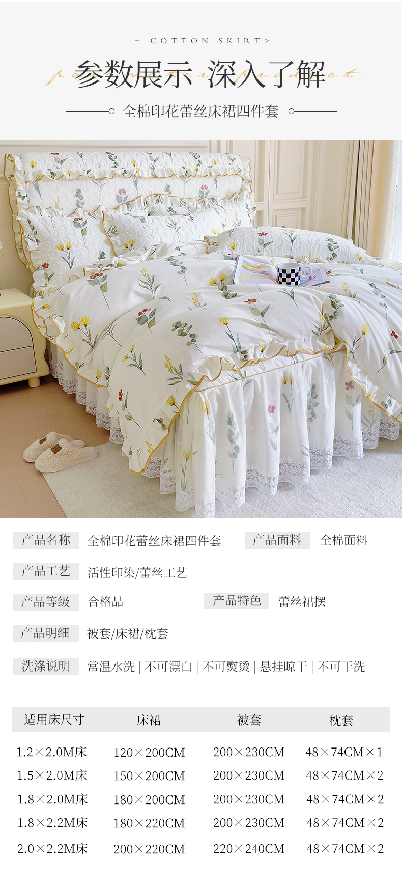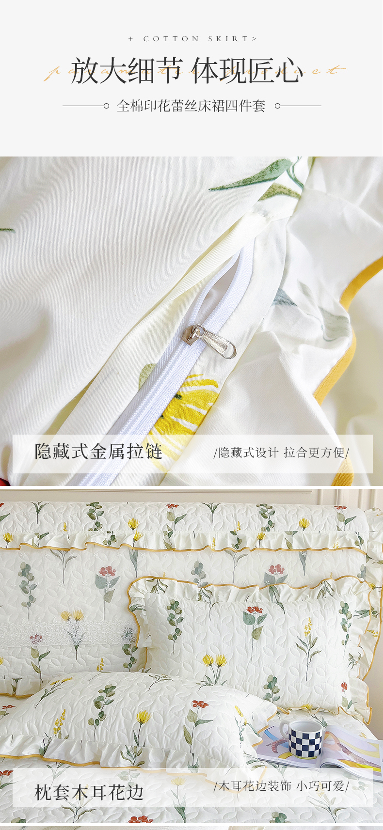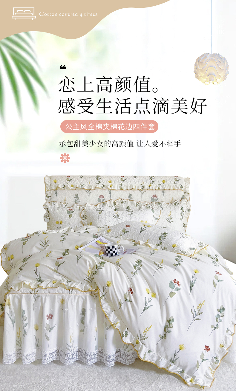 当前位置: 91家纺网 > 商品网购 > 床品套件 > 四件套 > 全棉普通四件套 > 十个点 2024新款印花夹棉蕾丝四件套 静香