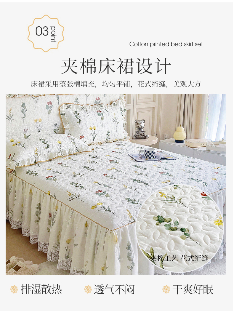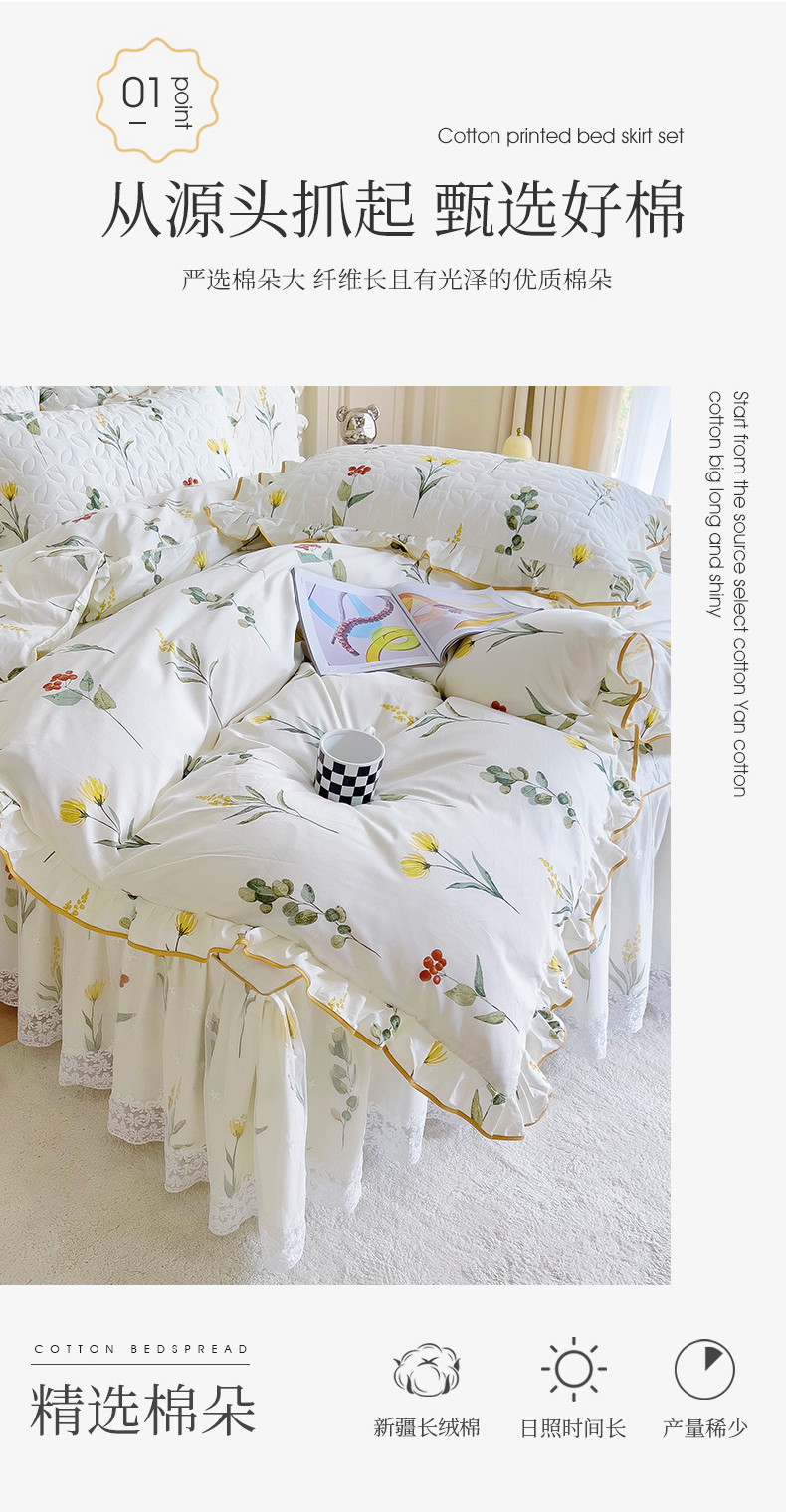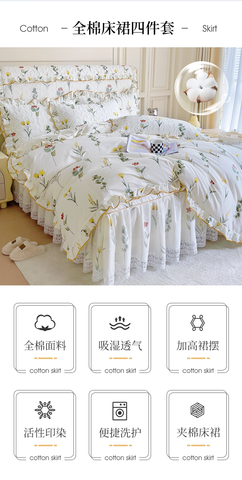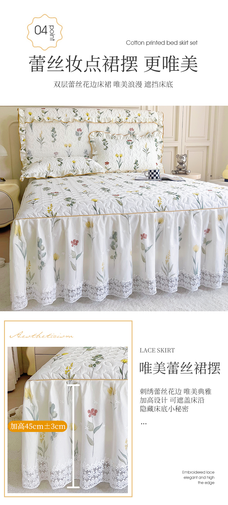 当前位置: 91家纺网 > 商品网购 > 床品套件 > 四件套 > 全棉普通四件套 > 十个点 2024新款印花夹棉蕾丝四件套 静香