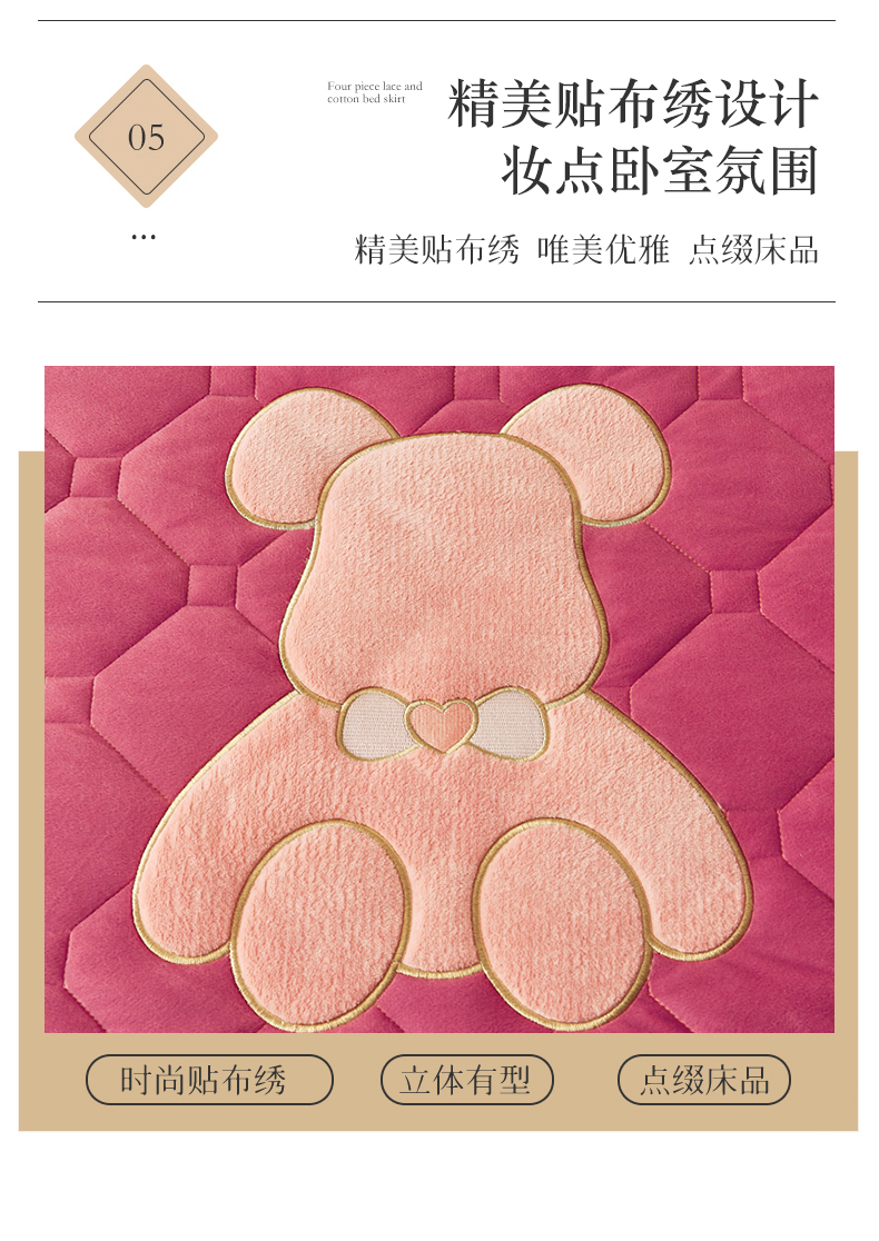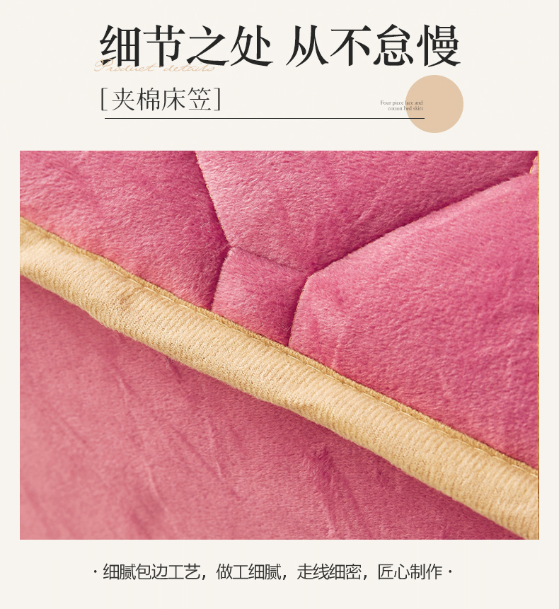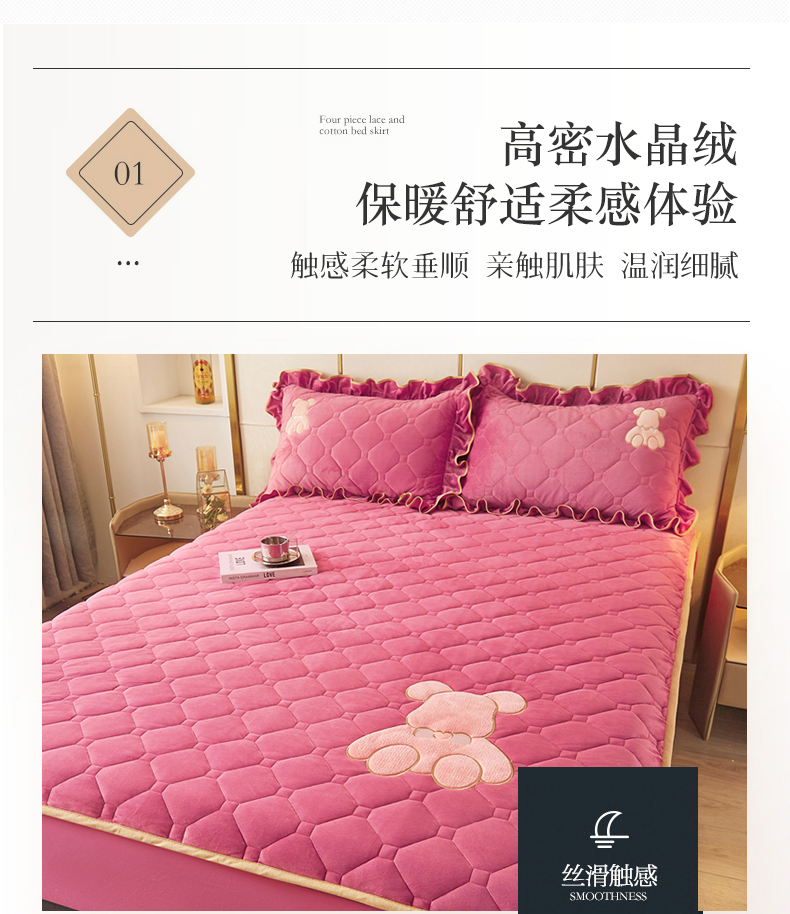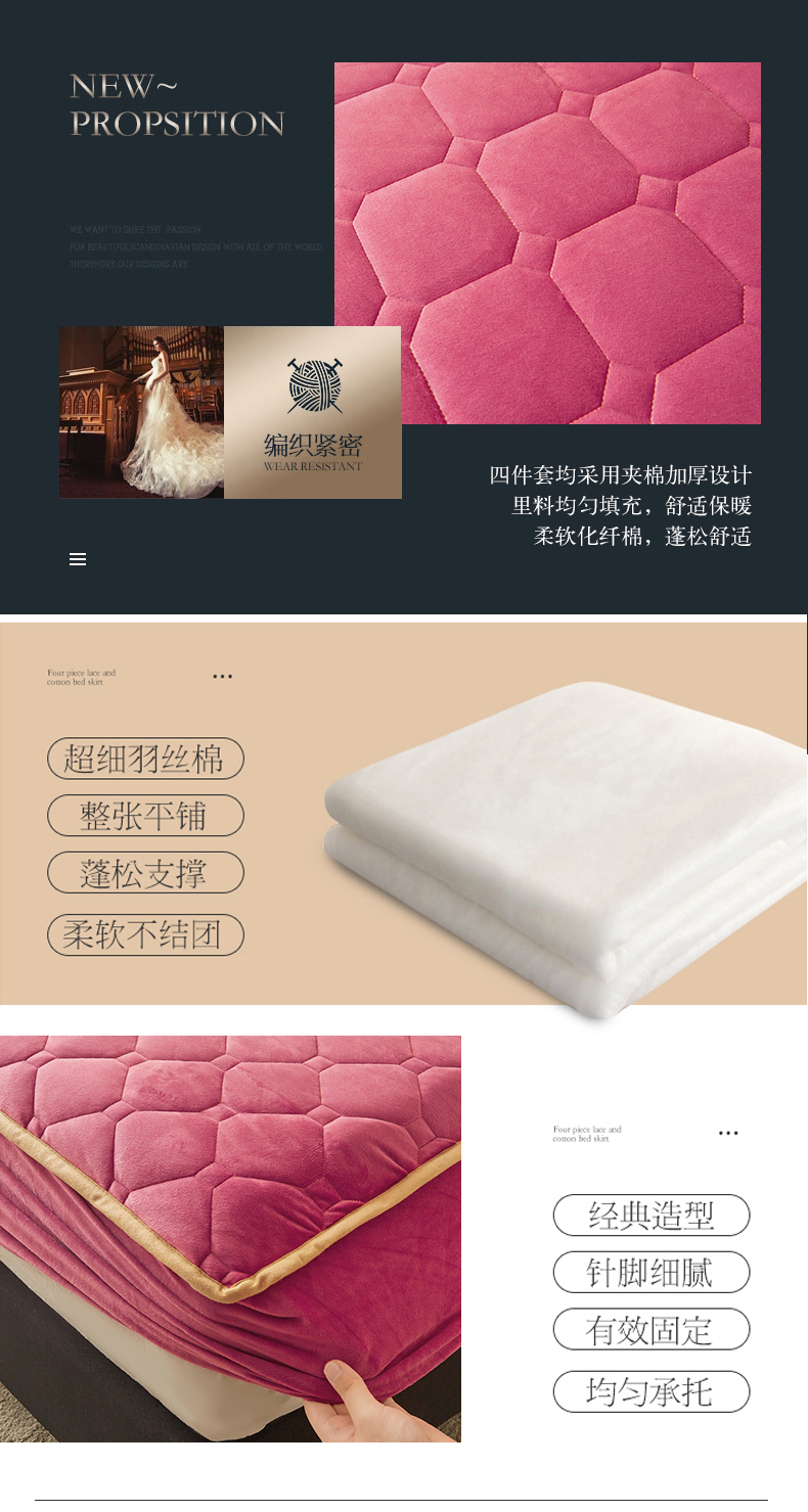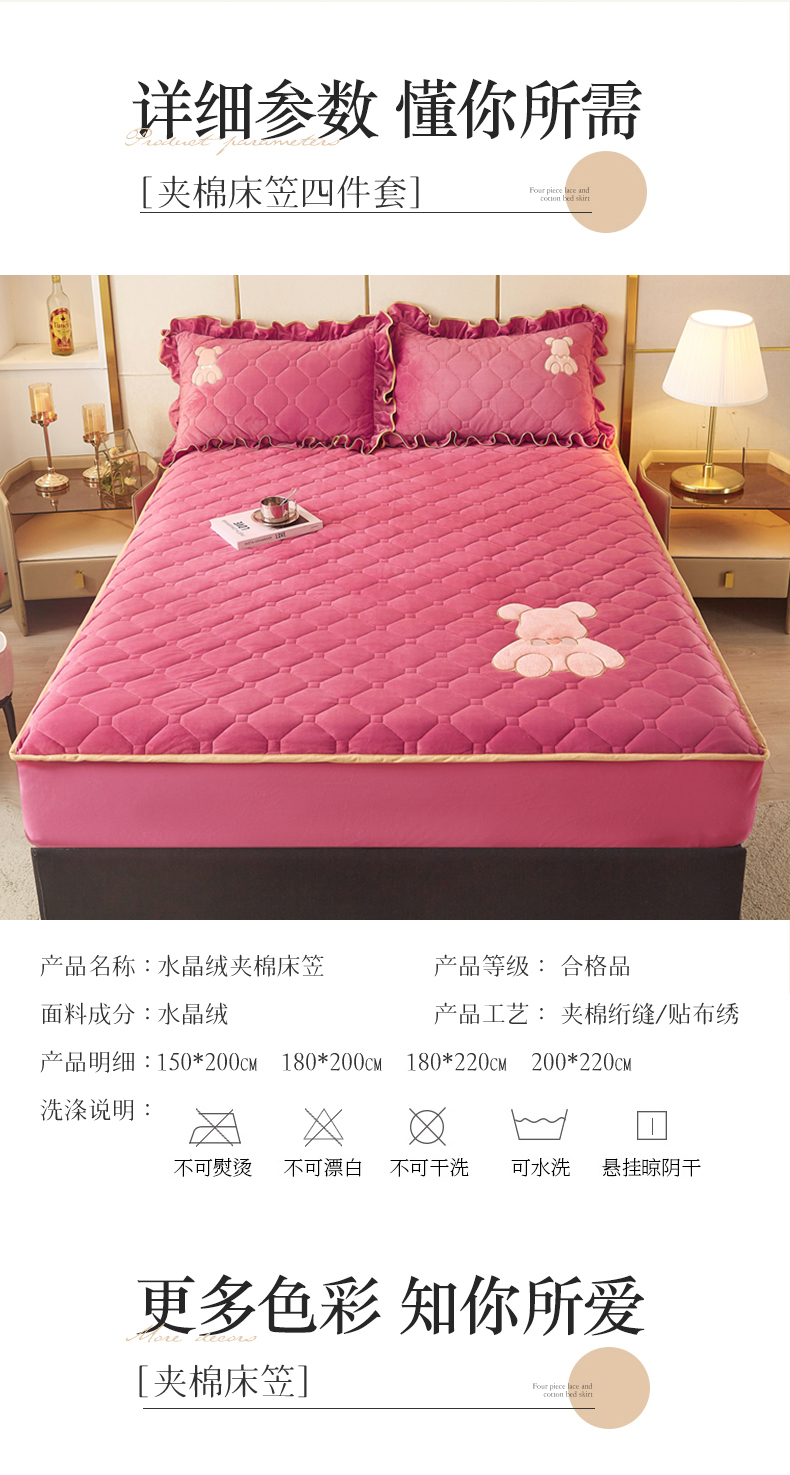 (总)屹成家纺2025新款水晶绒夹棉绗缝床裙四件套(塞纳河畔)四件套起售价不低于230元,大红,豆沙,翡翠绿,粉玉,橄榄绿,蔚蓝,银灰