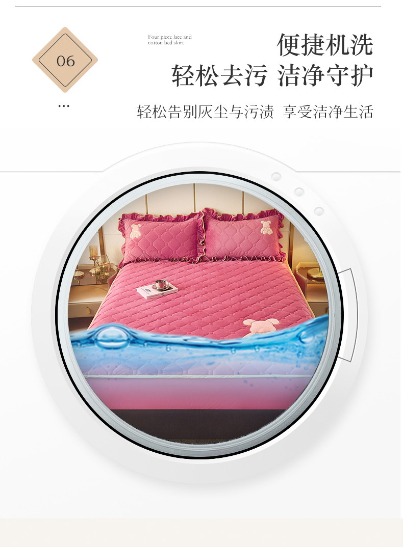 (总)屹成 2024新款水洗棉蕾丝四季款床笠床裙单品套件-床裙三件套,粉玉,豆沙,粉红,大红,橄榄绿,卡其,玫红,浅紫,水绿,天蓝,银灰