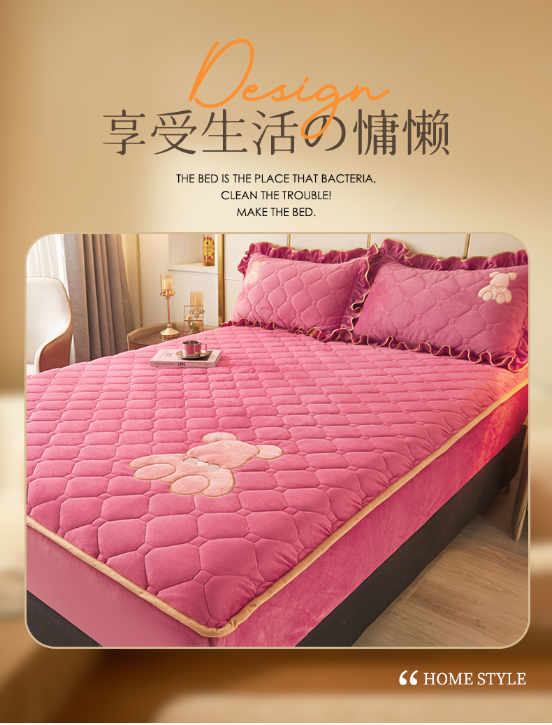 屹成 2024新款亲肤水晶绒夹棉单床笠-小熊款 豆沙