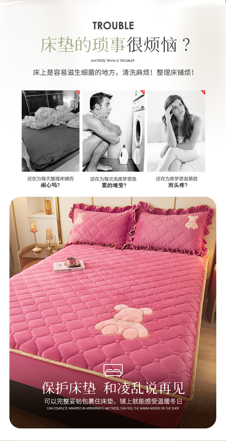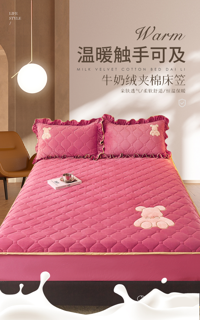 商品名称:屹成 2024新款亲肤水晶绒夹棉单床笠-小熊款 豆沙