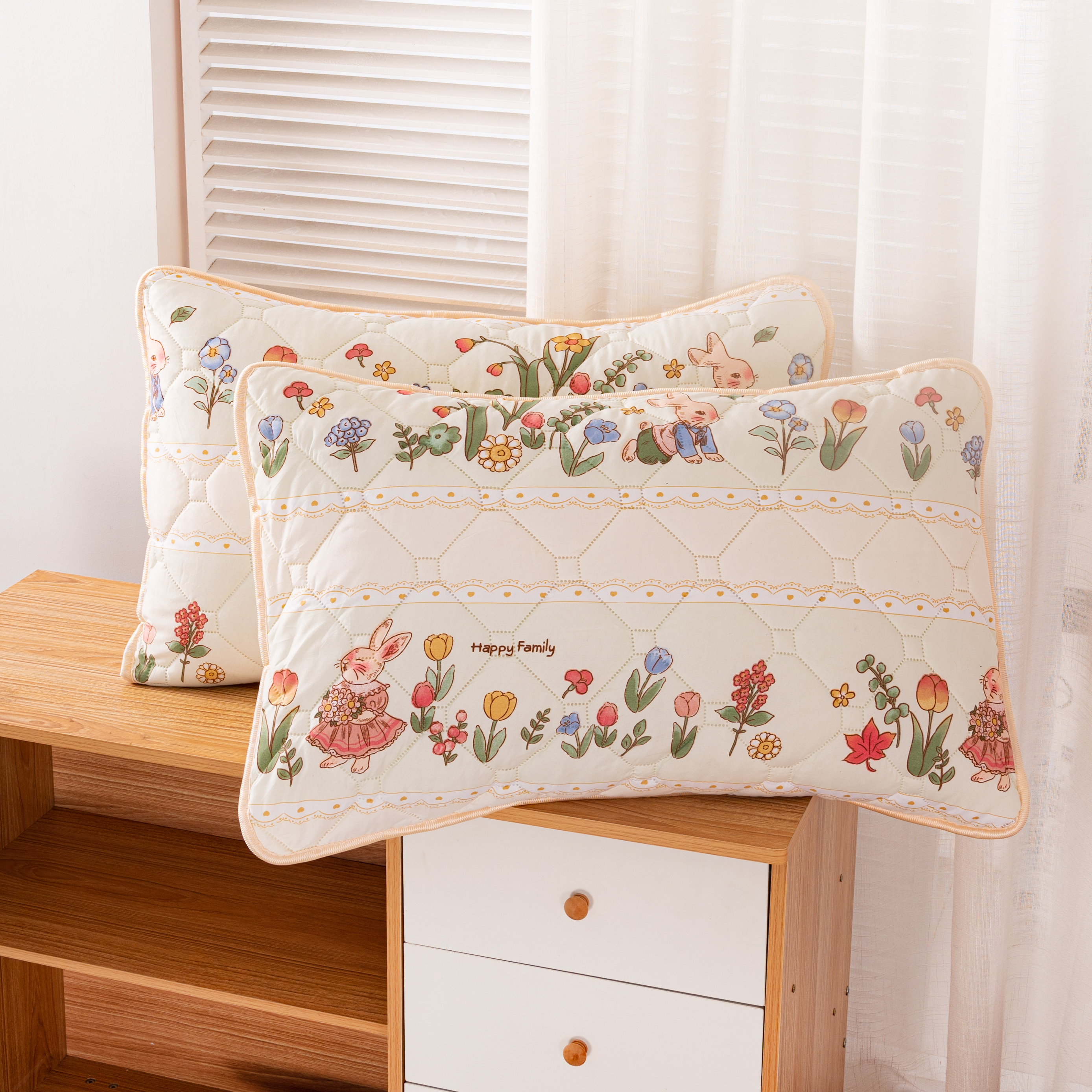 花言狐语2025新款水洗棉防水枕套 花丛兔