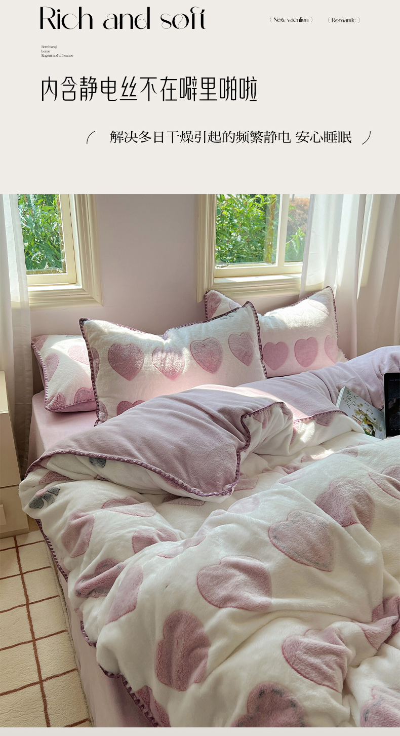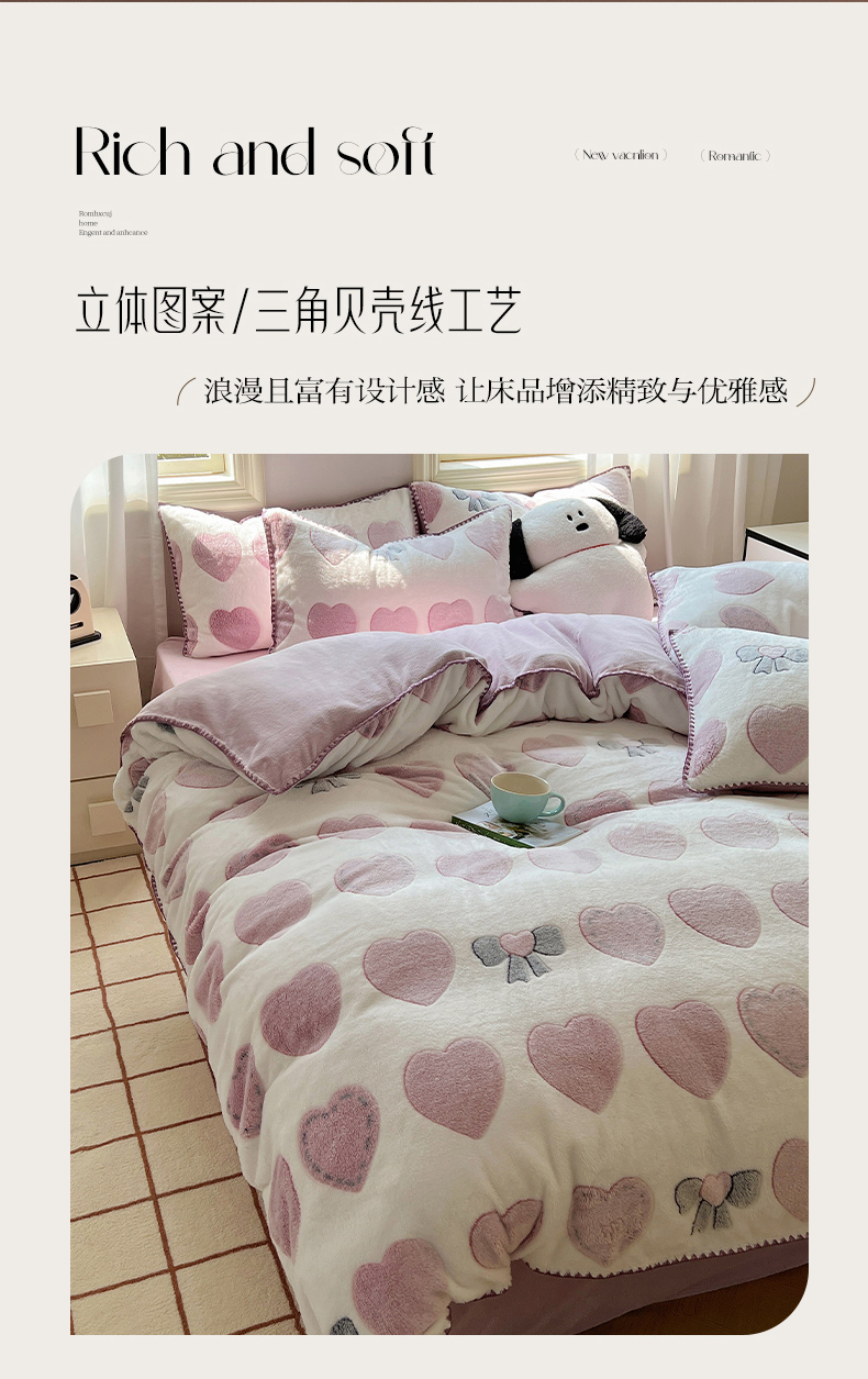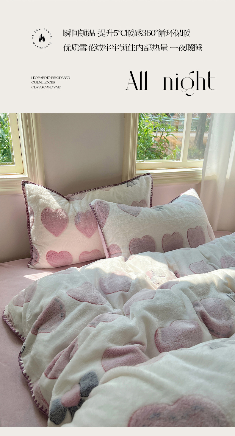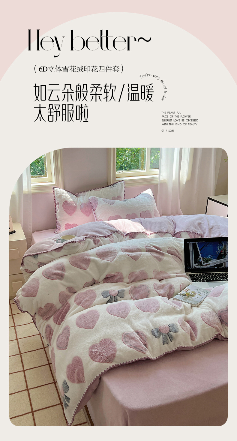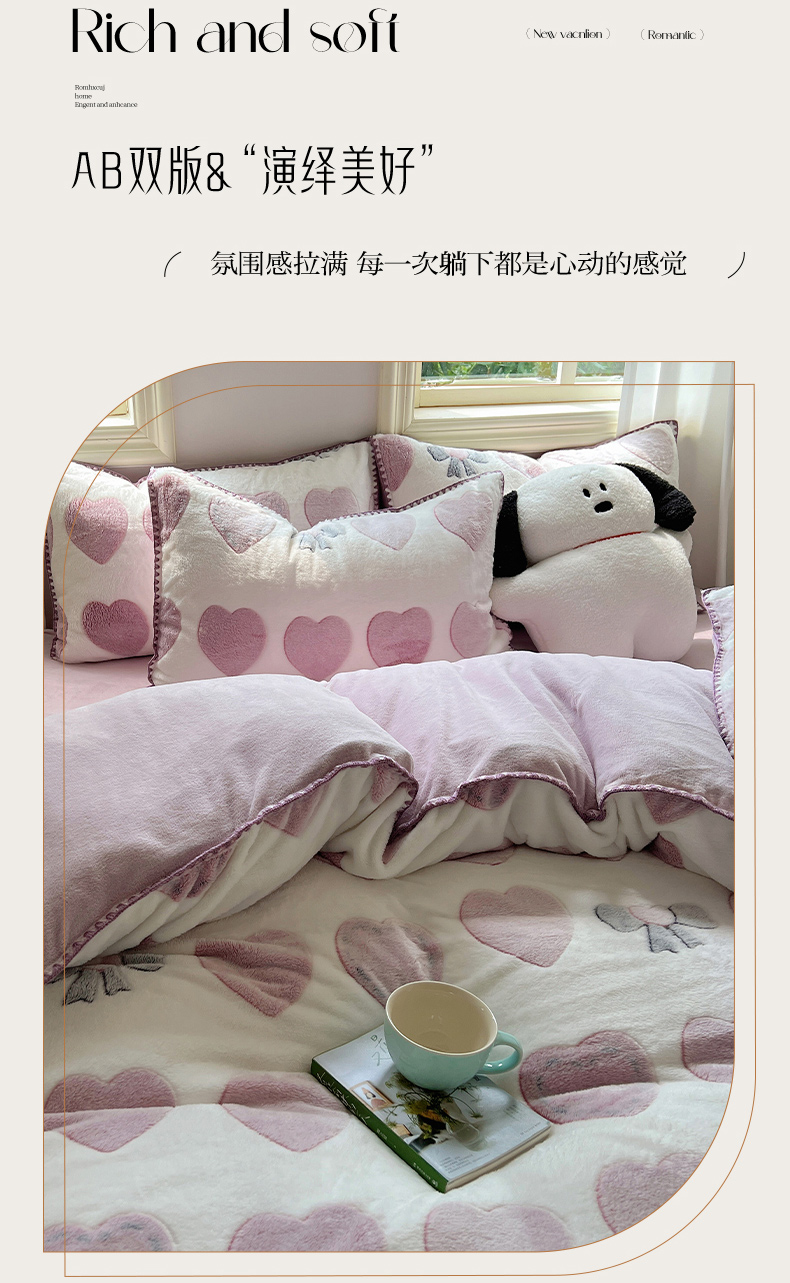 三朵家纺 2023新款高克重雪花绒绒混搭系列四件套 约定