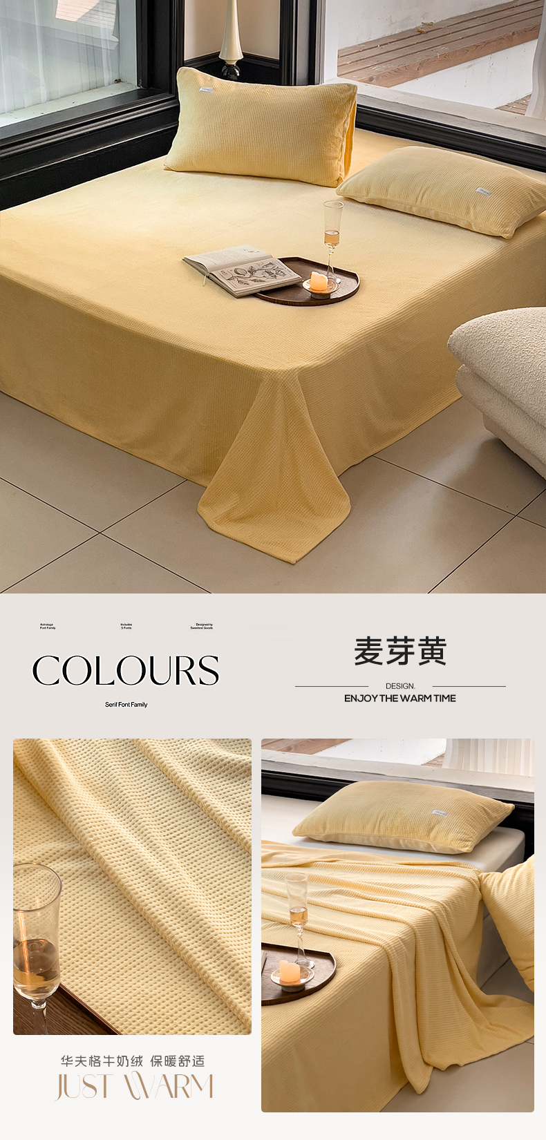 商品名称:时光里 2023新款全消光华夫格绒-单床单 麦芽黄