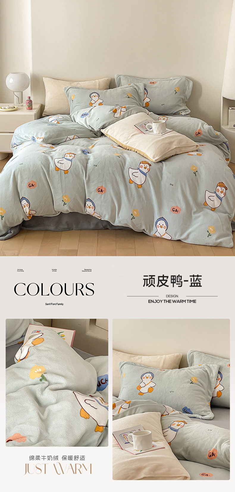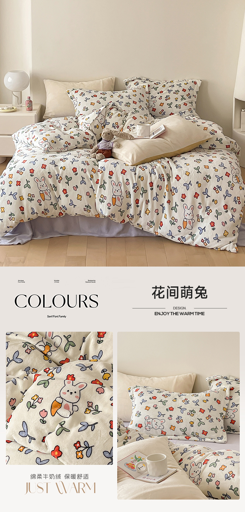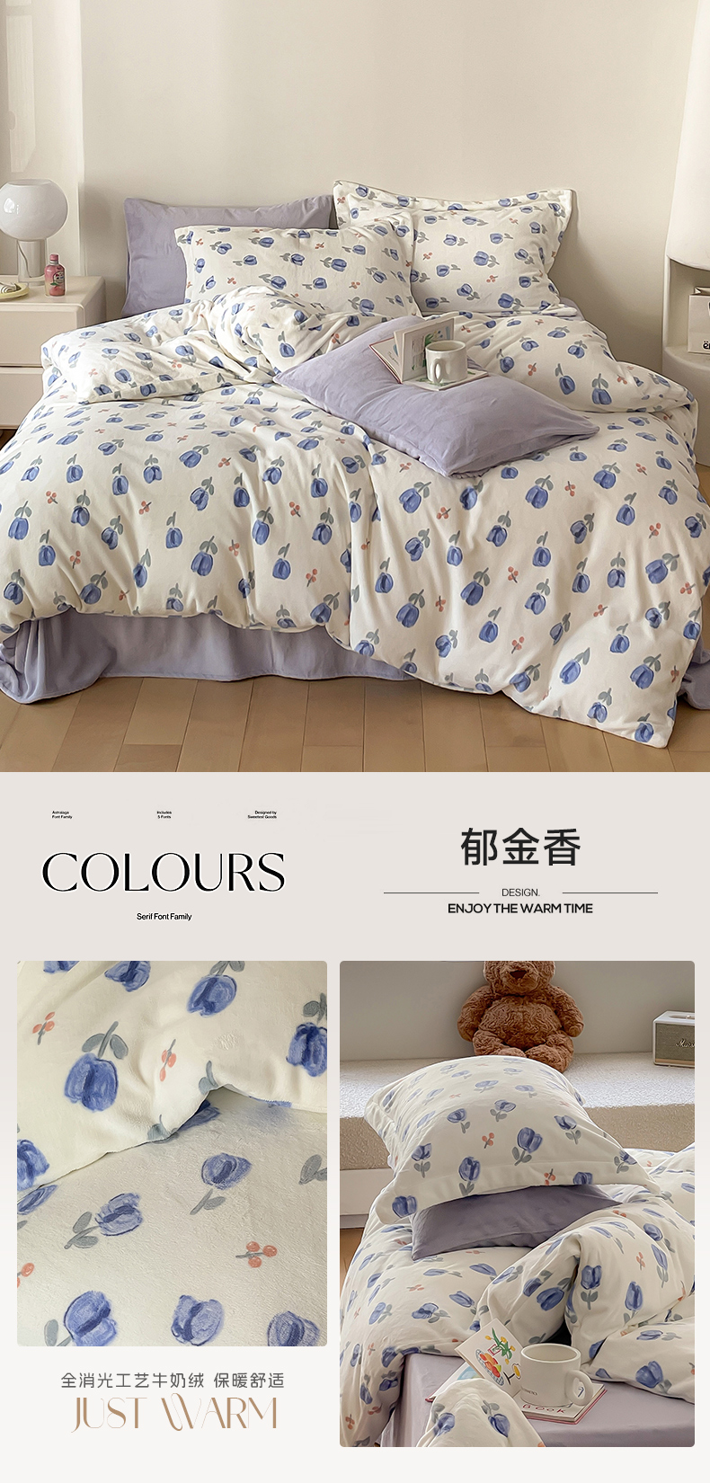 (总)时光里 2023新款全消光加厚牛奶绒印花四件套