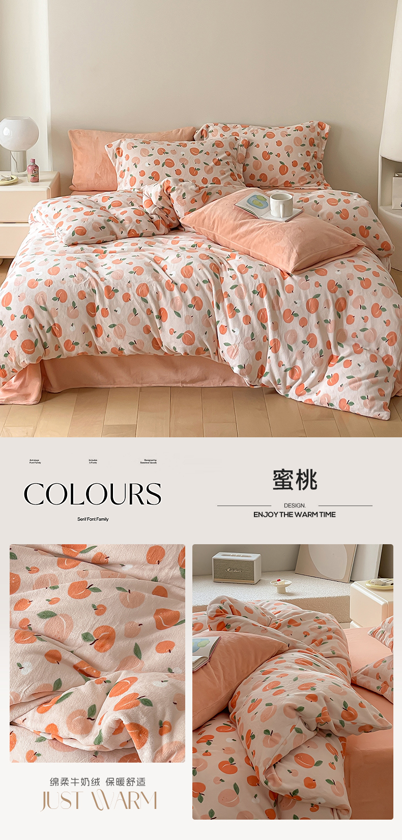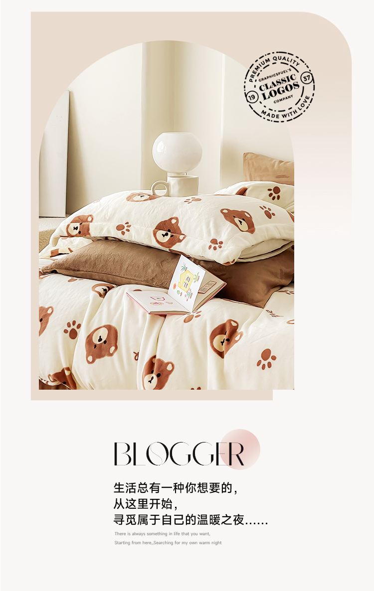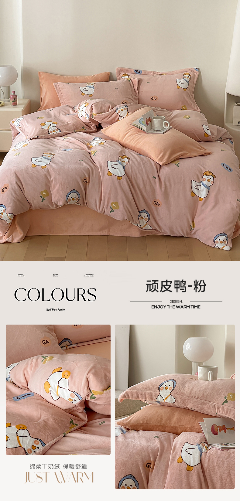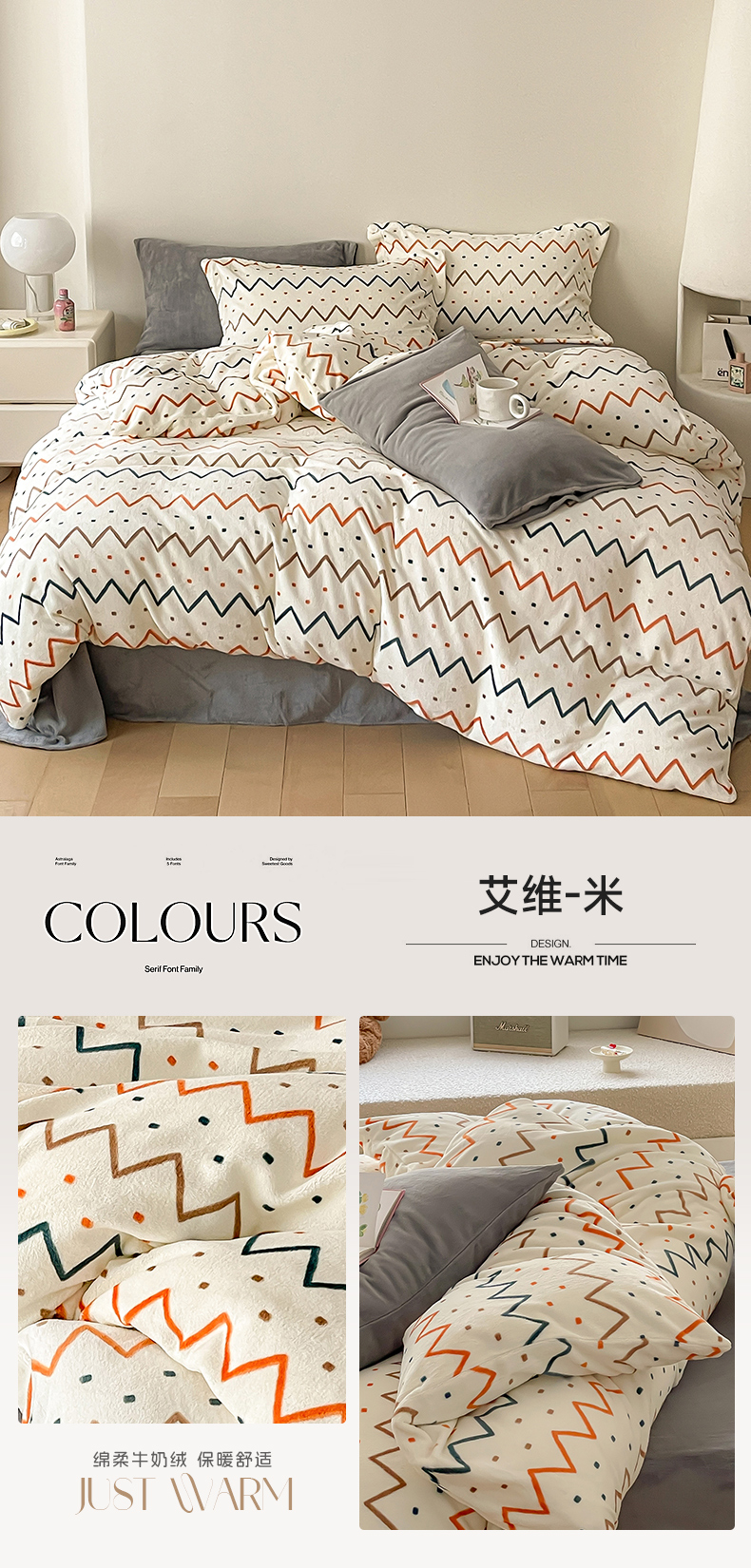 (总)时光里 2023新款全消光加厚牛奶绒印花四件套