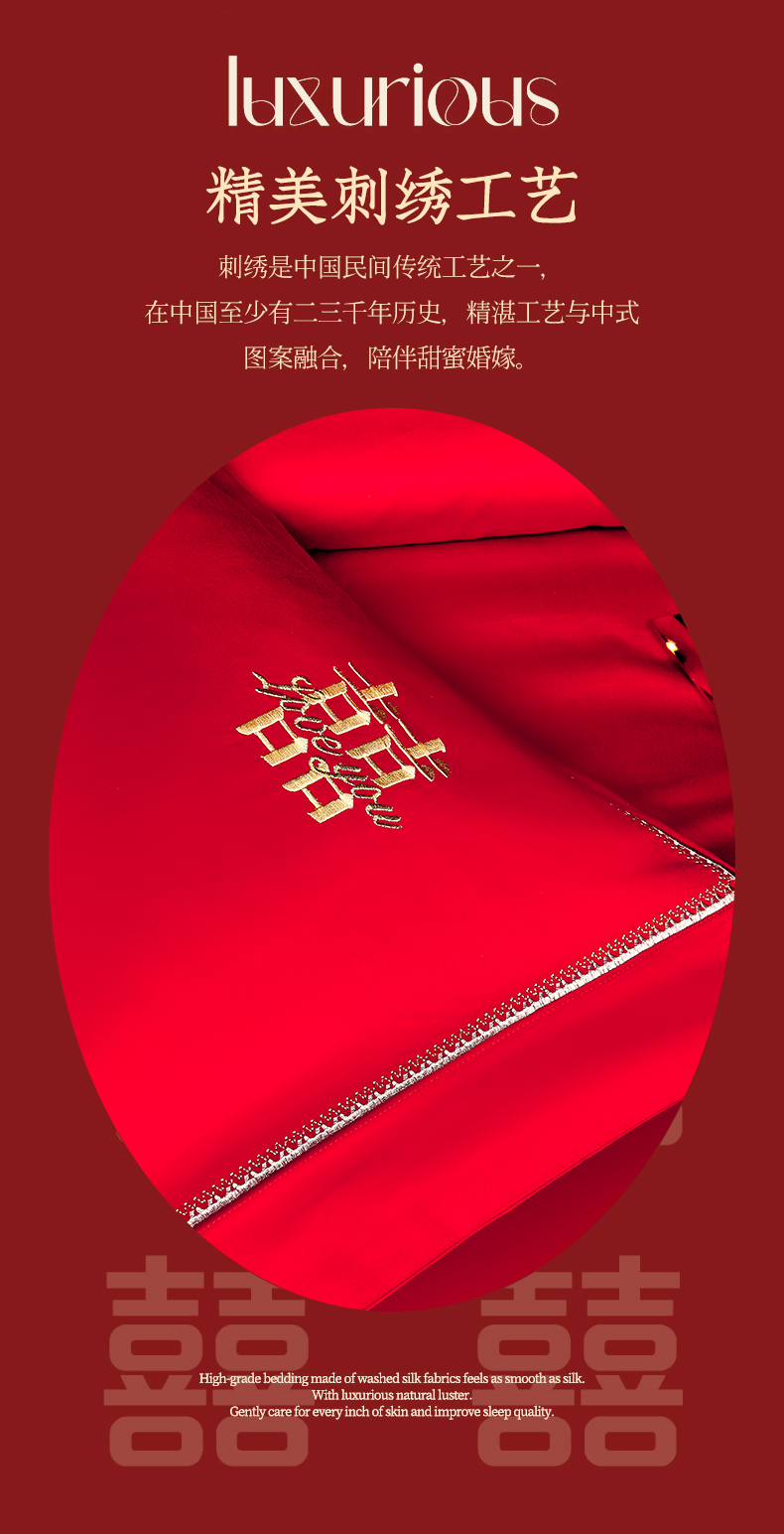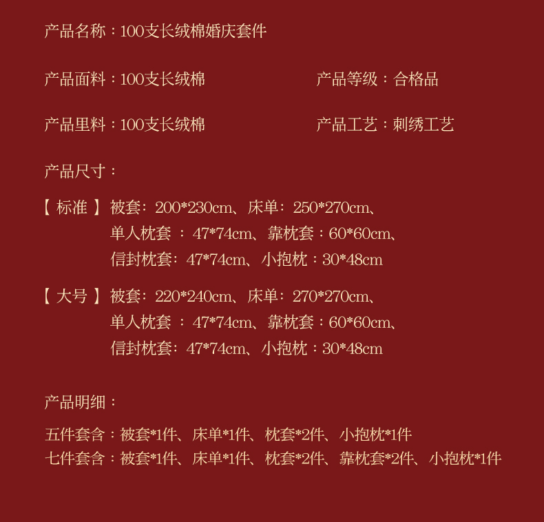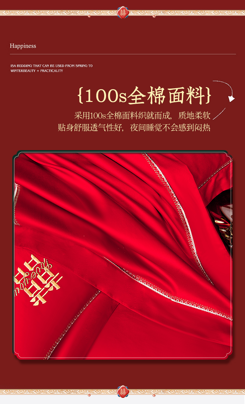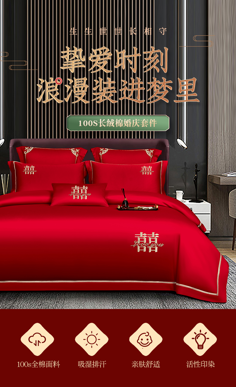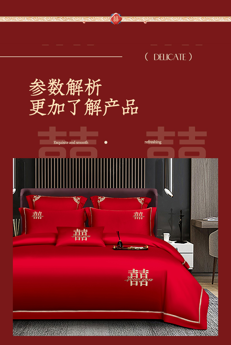 商品名称:皇潮婚庆馆 新款100支长绒棉婚庆套件 喜