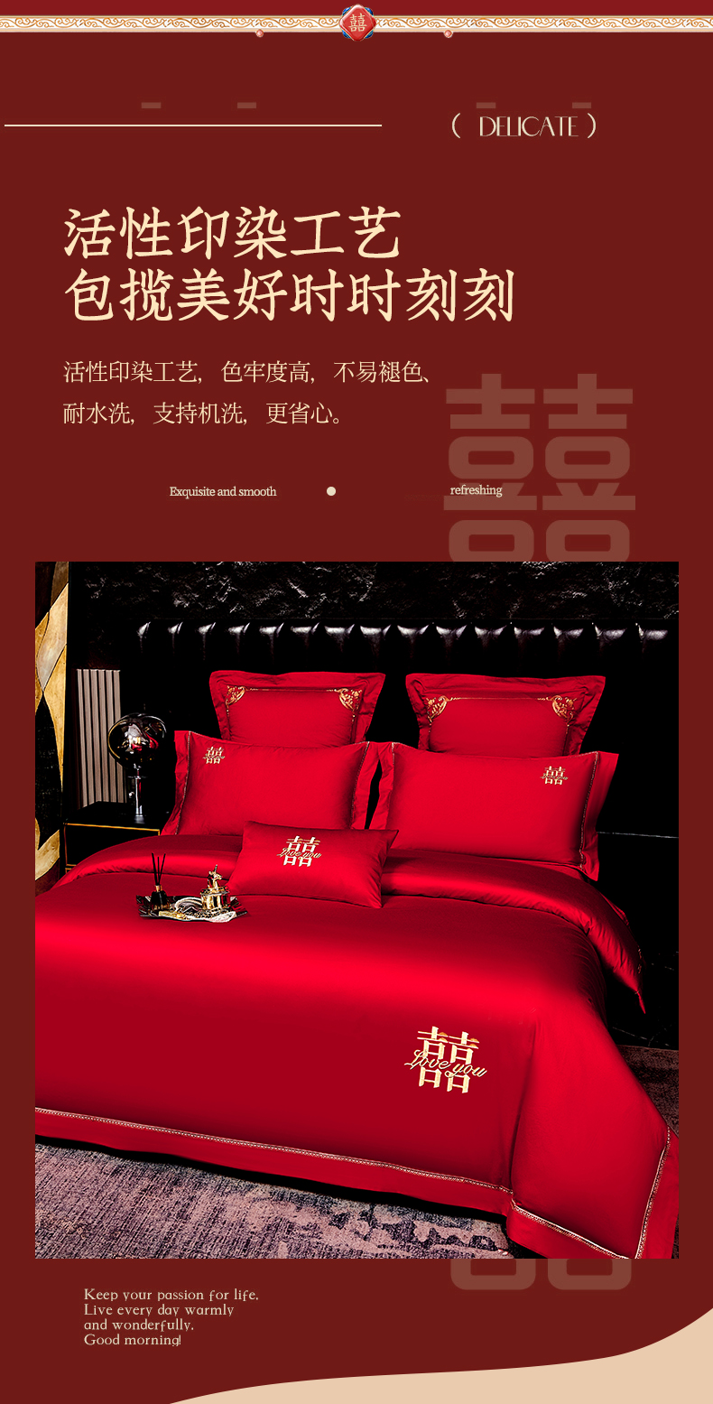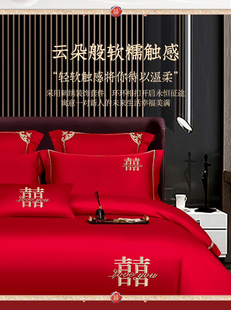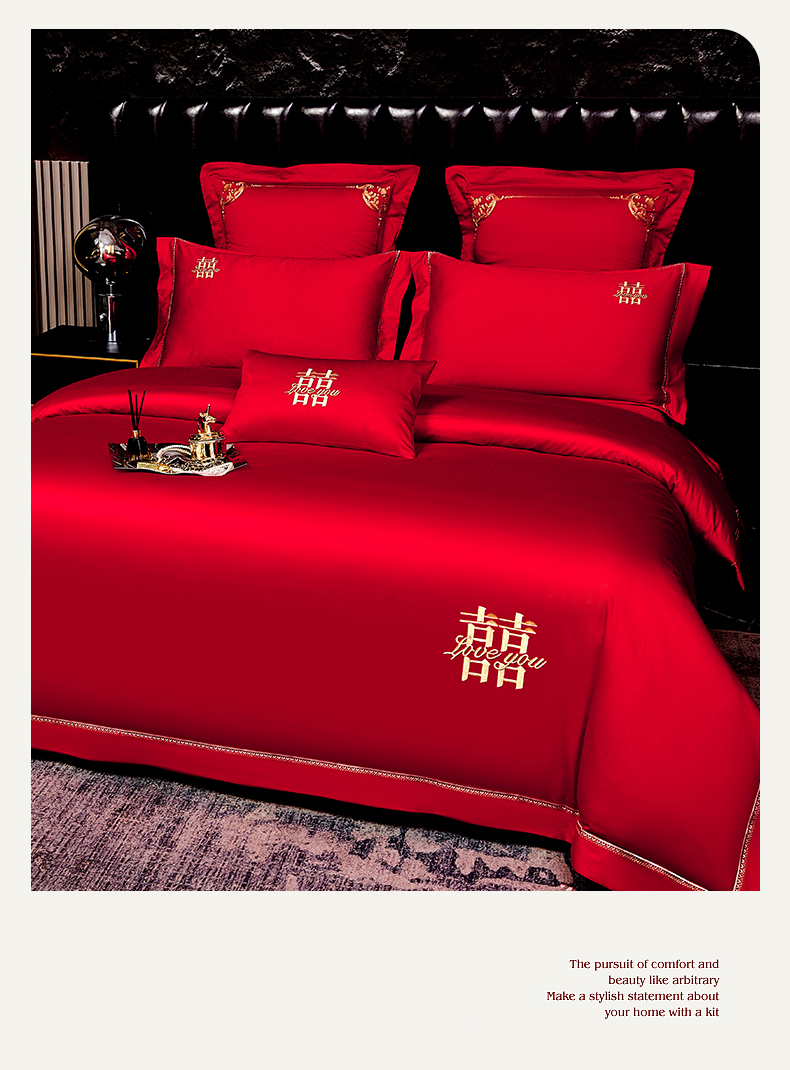 皇潮婚庆馆 新款100支长绒棉婚庆套件 喜