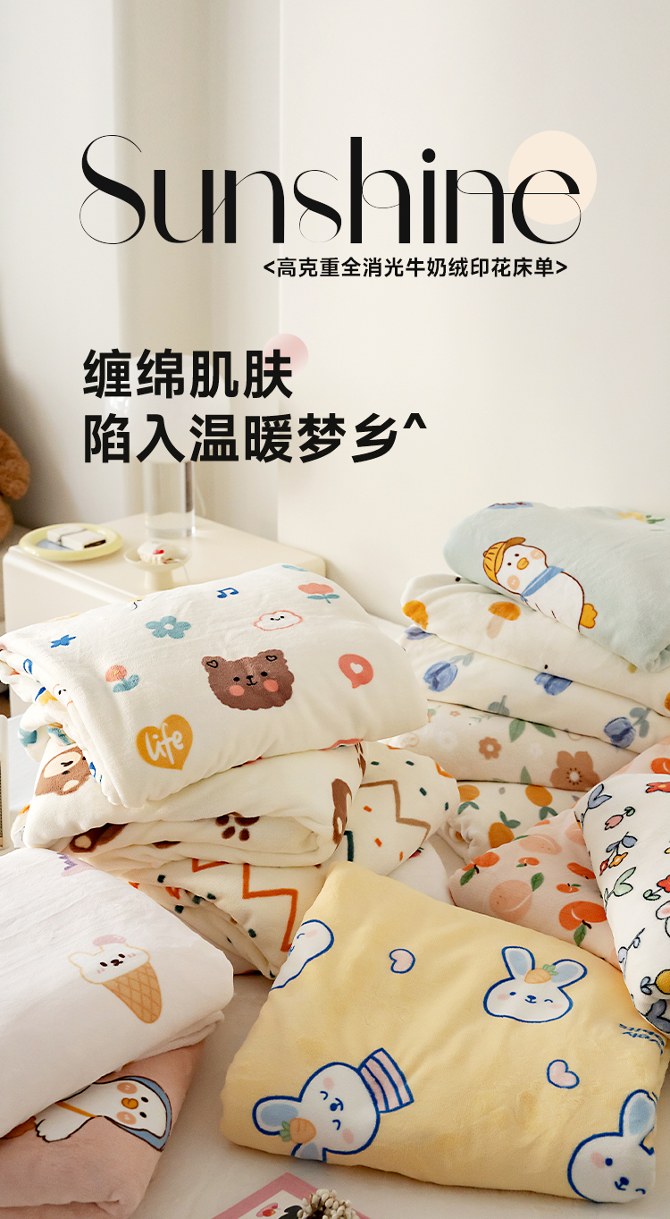 (总)时光里 2025新款230克印花牛奶绒系列单床单,波点小汪,动物园,扶摇,格子兔,花盏,咖格汪,拉布,萌宠物语,喵星人,奶兔糖,甜蜜熊,兔仔熊,汪汪巾,汪汪小队,小犬帽,集合图