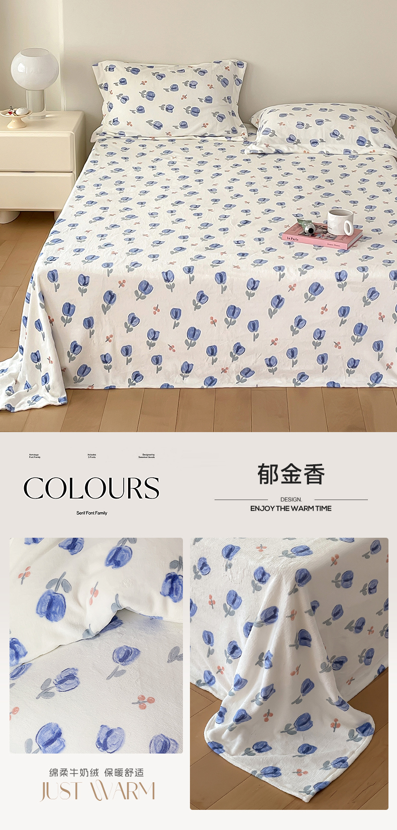 商品名称:时光里 2023新款全消光加厚牛奶绒印花单品单床单 郁金香