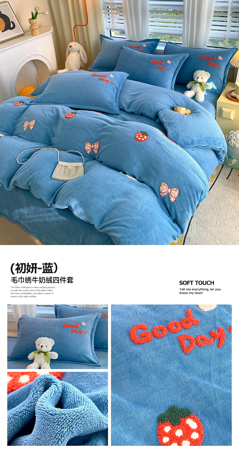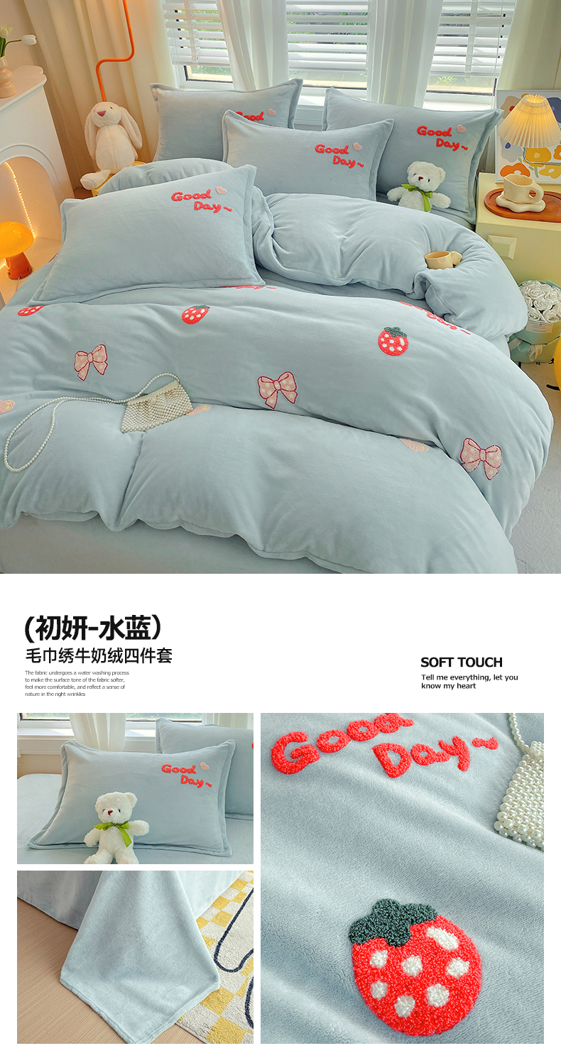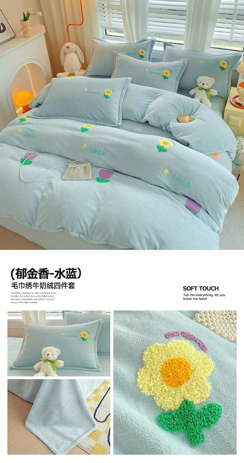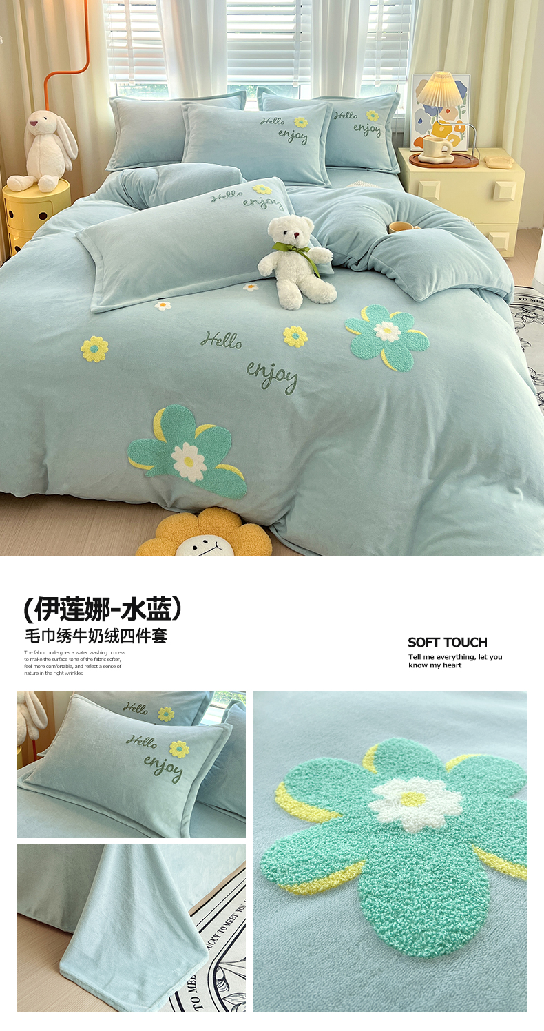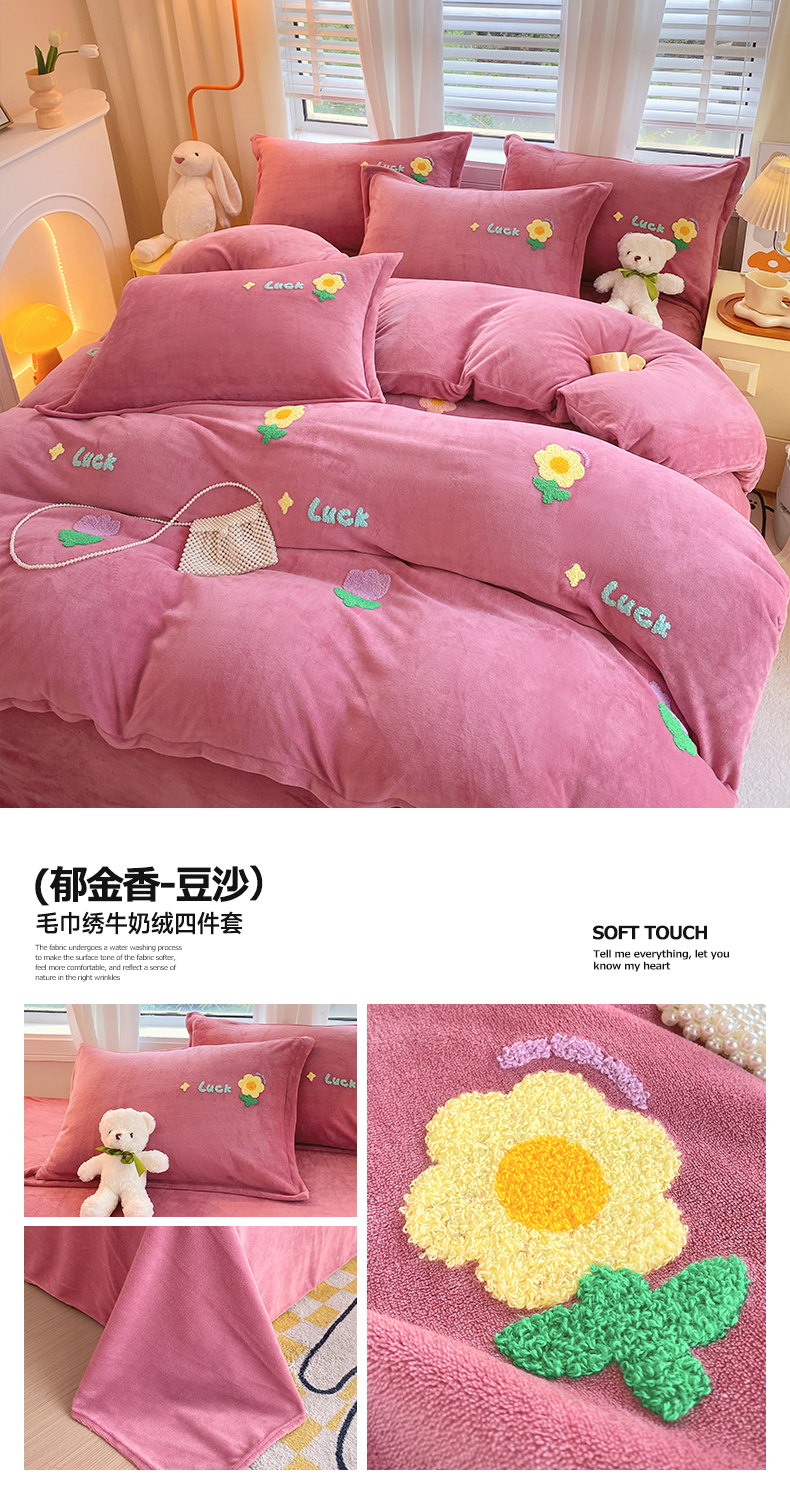 (总)凡客家居 2023新款毛巾绣牛奶绒四件套学生宿舍三件套