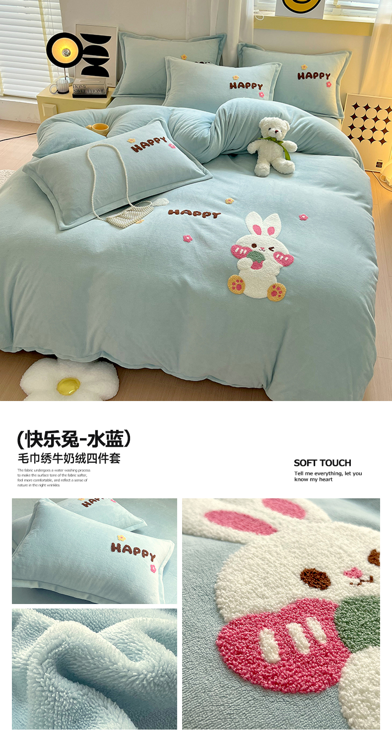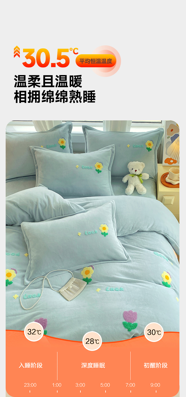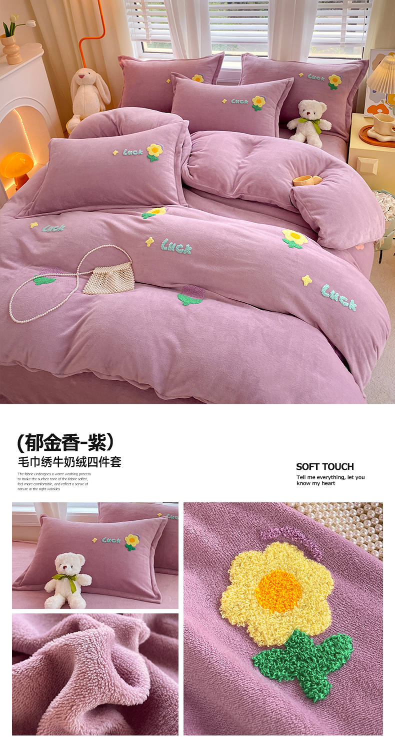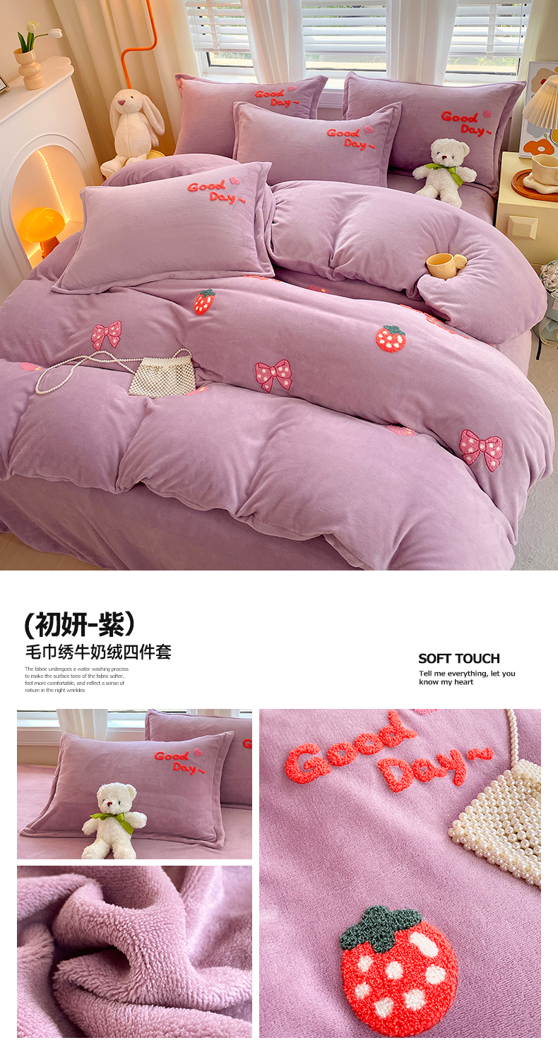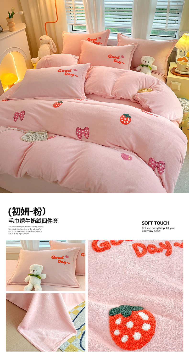 (总)凡客家居 2023新款毛巾绣牛奶绒四件套学生宿舍三件套