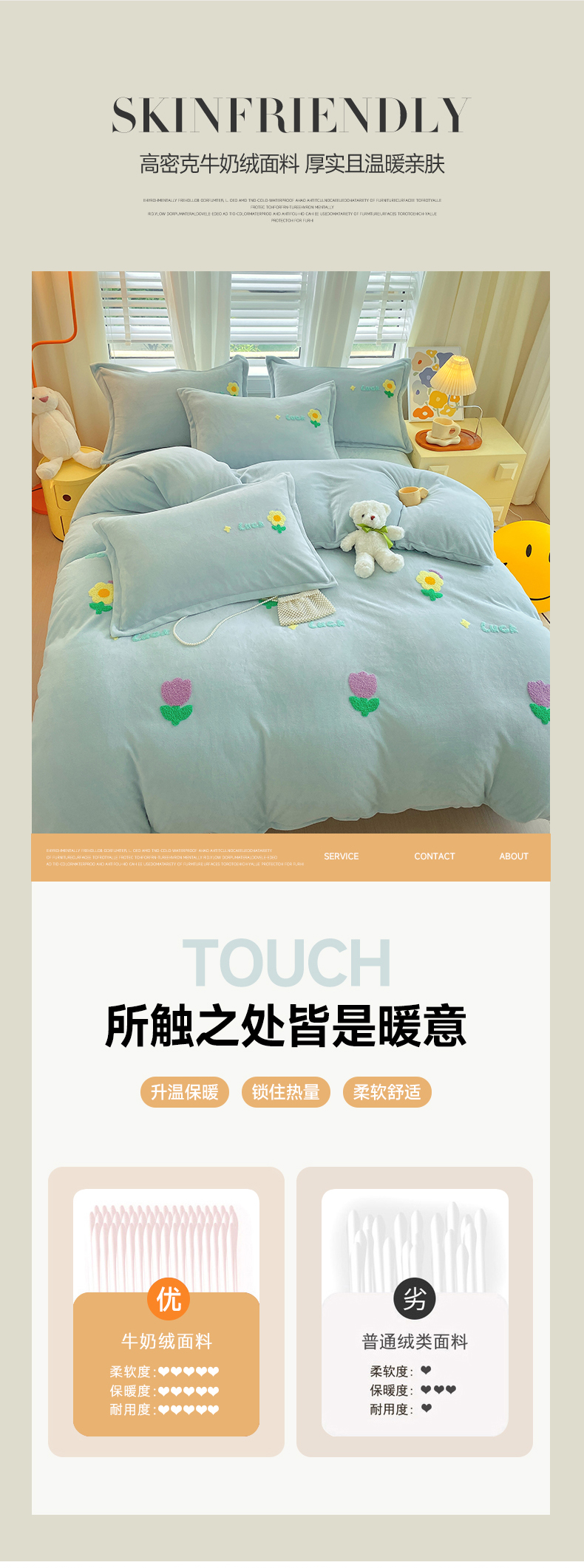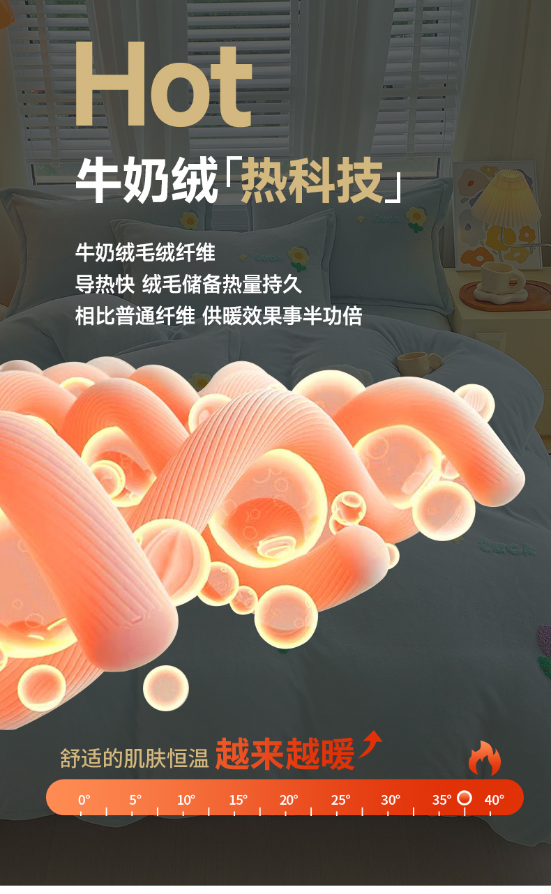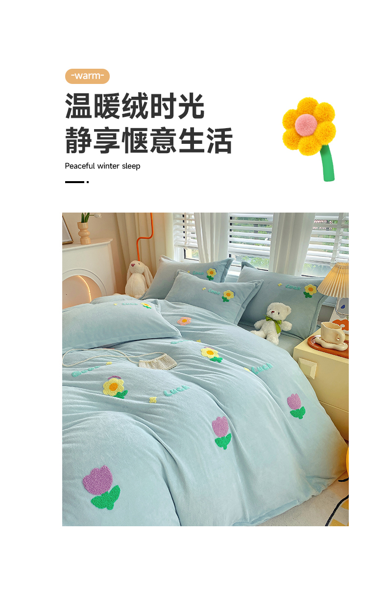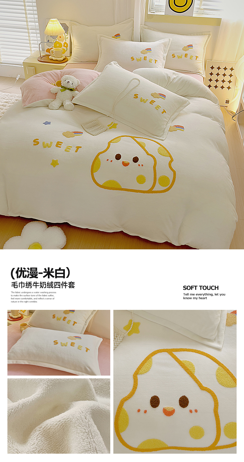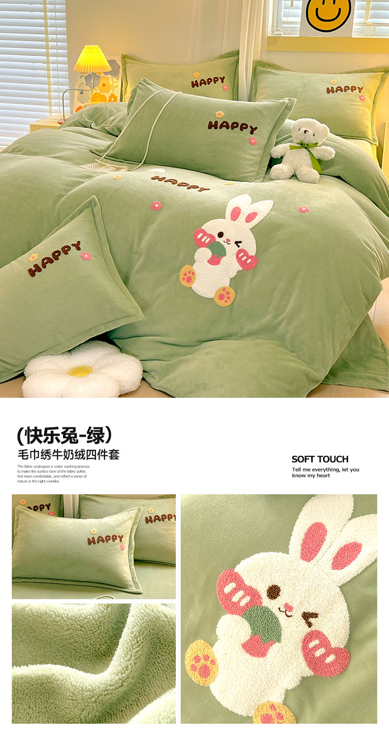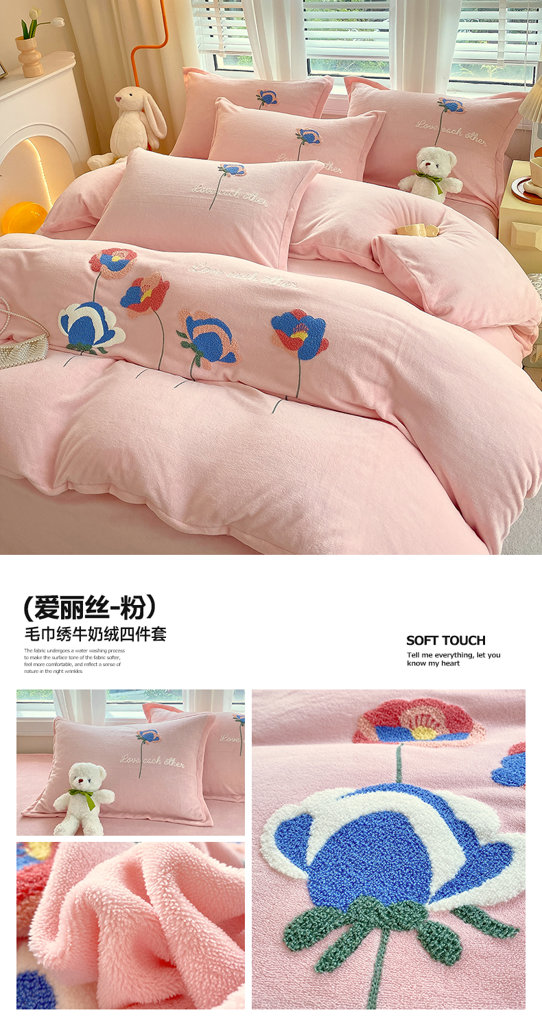 (总)凡客家居 2023新款毛巾绣牛奶绒四件套学生宿舍三件套