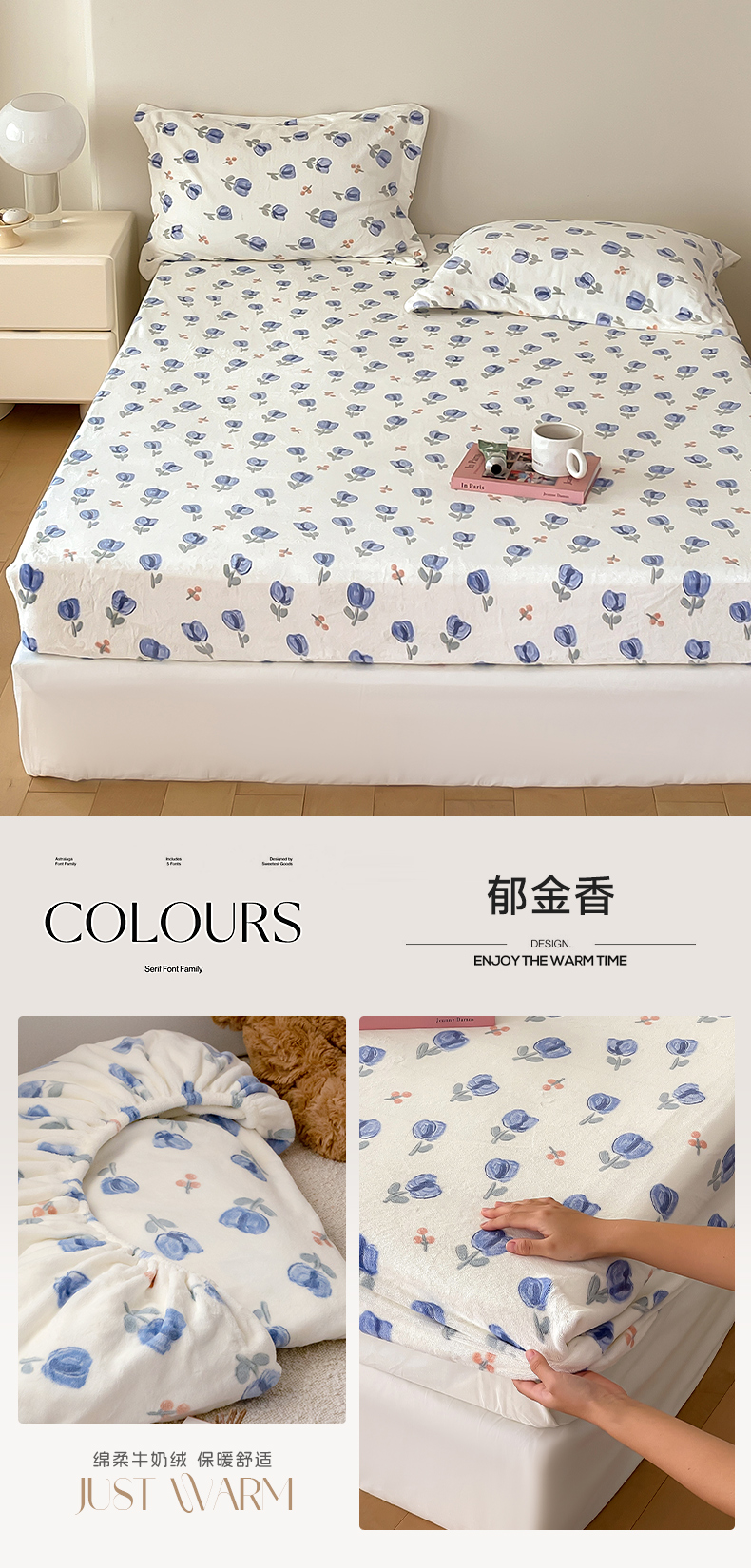 时光里 2023新款全消光加厚牛奶绒印花单品单床笠 郁金香