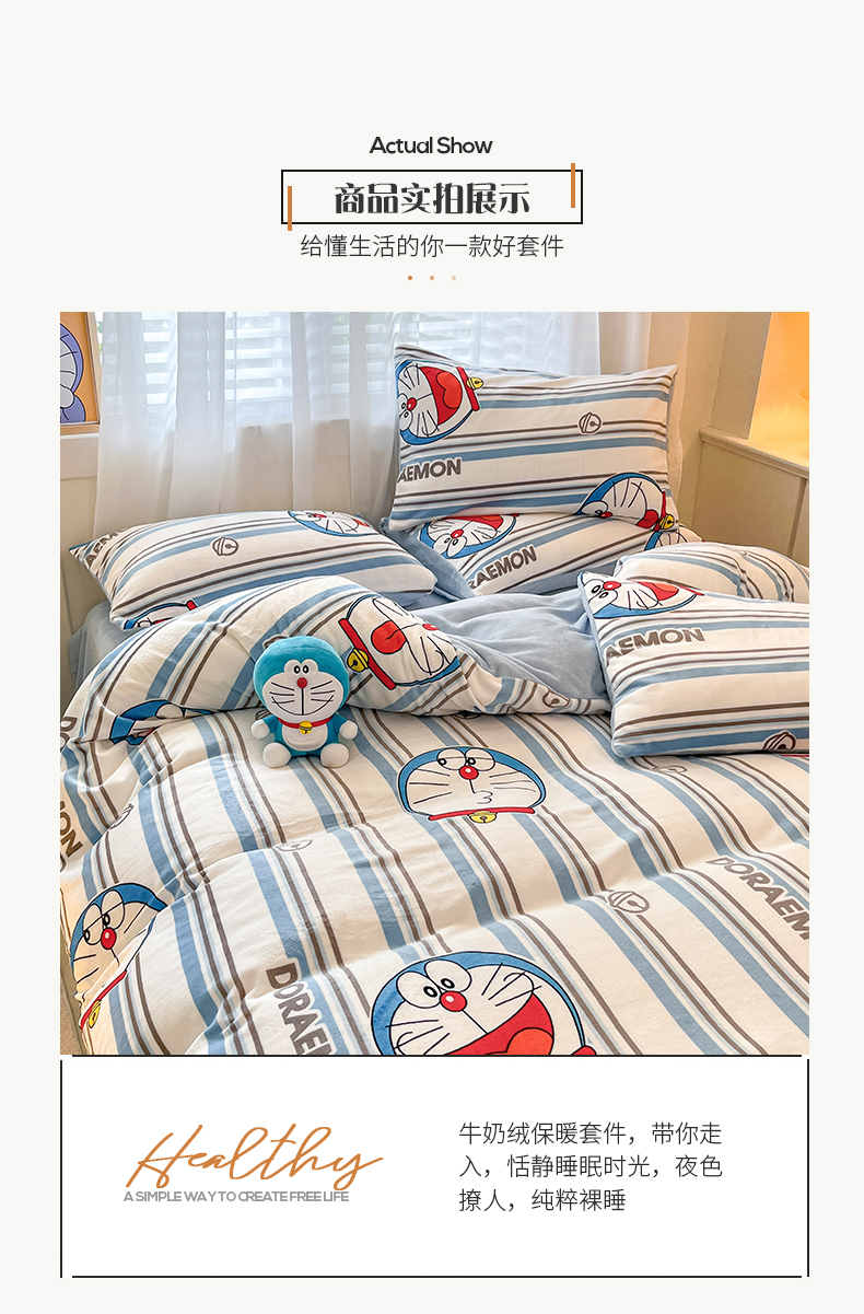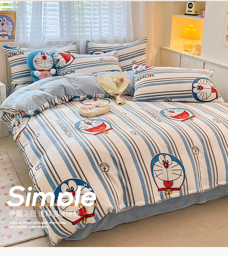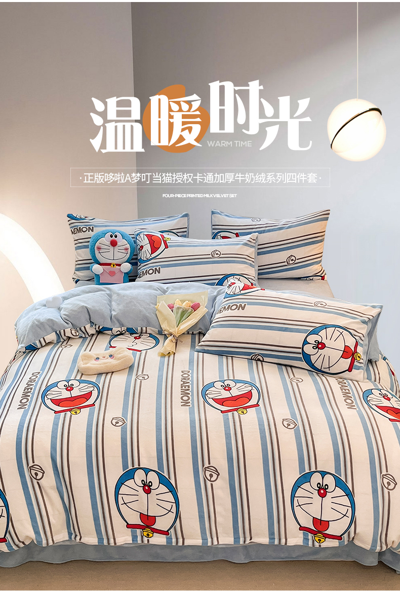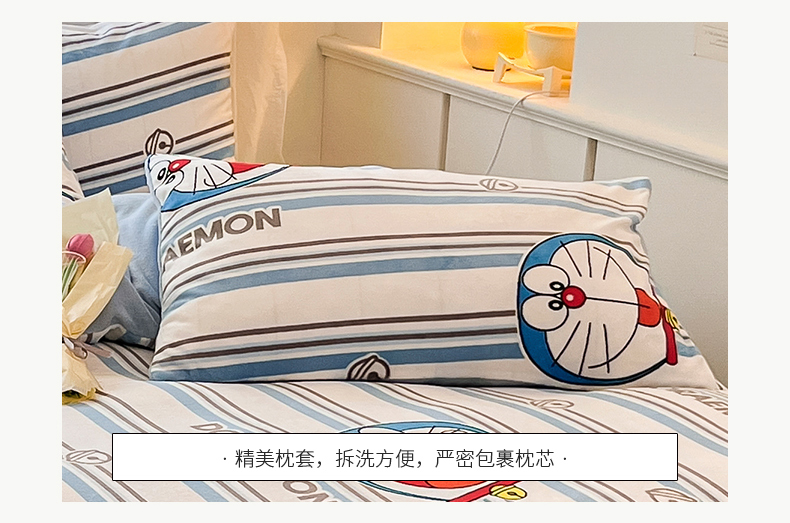 当前位置: 91家纺网 > 商品网购 > 床品套件 > 四件套 > 牛奶绒四件套 > 桃子家居 2023新款正版哆啦A梦叮当猫授权卡通加厚牛奶绒系列四件套 绒哆啦A梦-条纹叮当