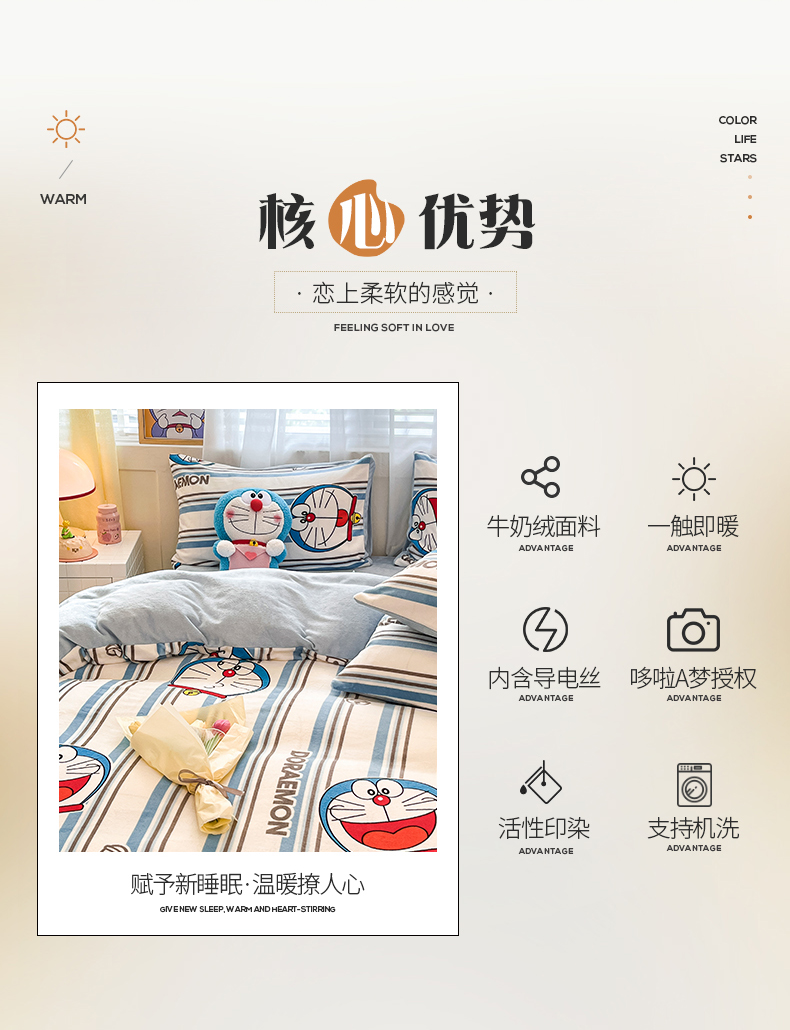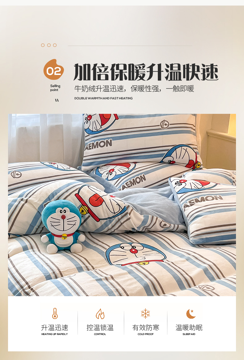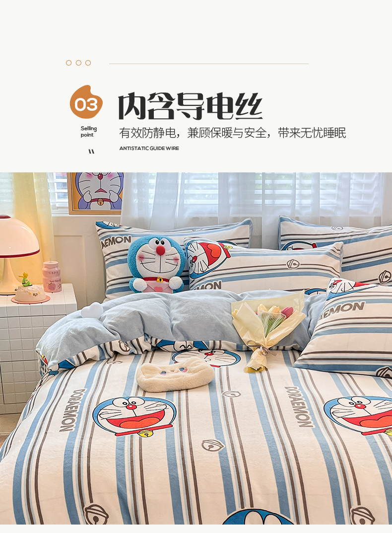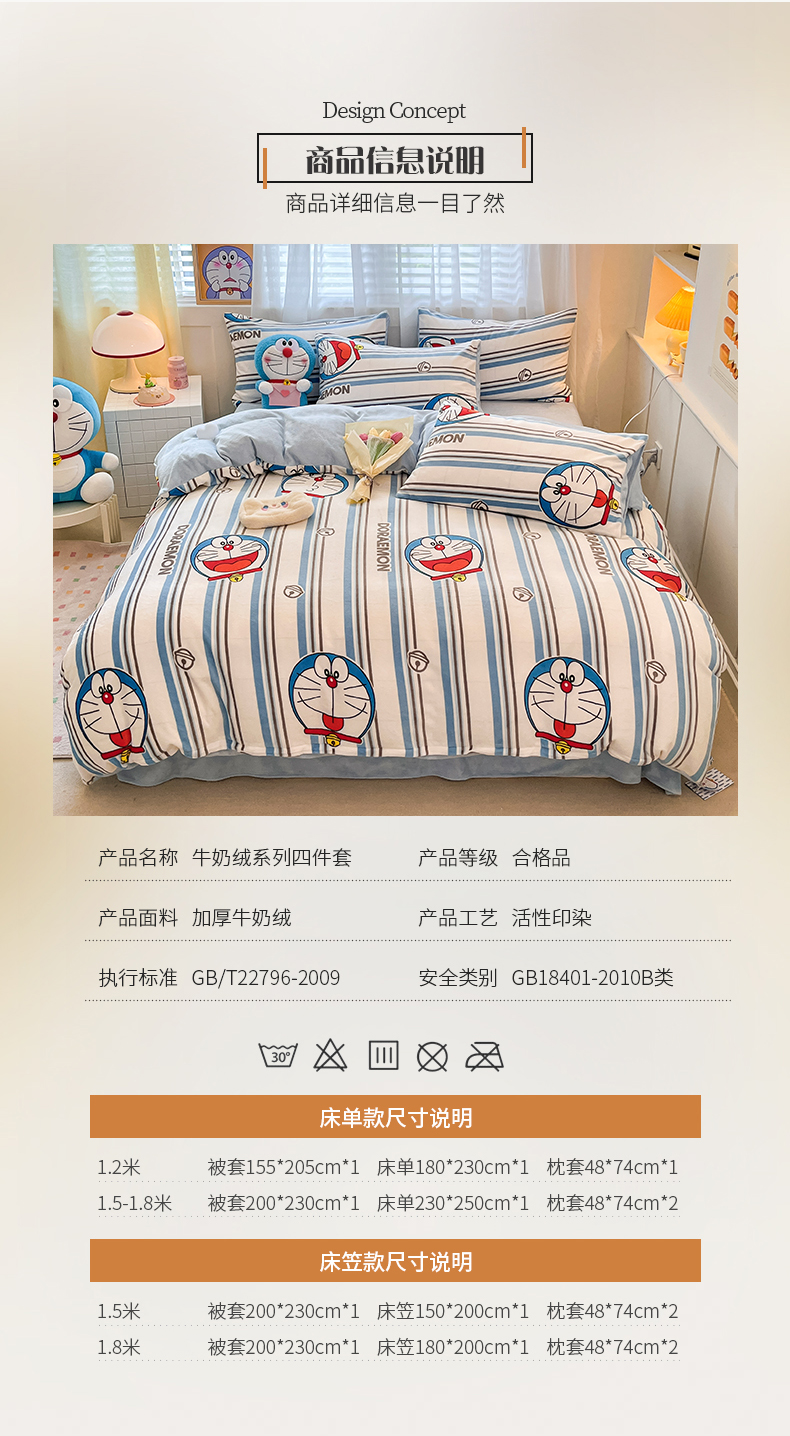 当前位置: 91家纺网 > 商品网购 > 床品套件 > 四件套 > 牛奶绒四件套 > 桃子家居 2023新款正版哆啦A梦叮当猫授权卡通加厚牛奶绒系列四件套 绒哆啦A梦-条纹叮当