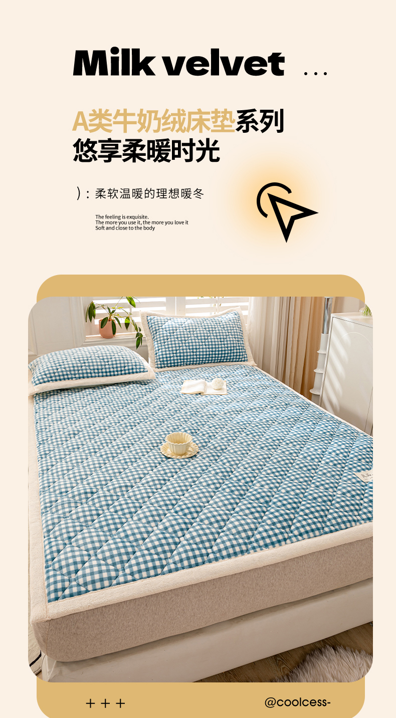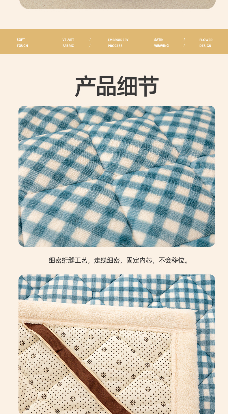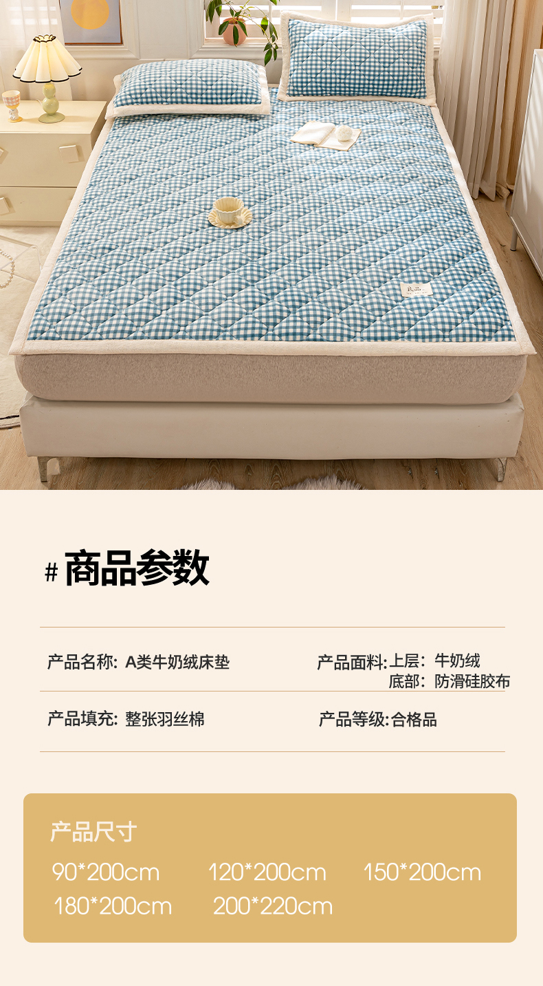 当前位置: 91家纺网 > 商品网购 > 床垫/床褥 > 普通床垫 > 慕木家纺 2025新款A类牛奶绒纯色印花加厚保暖床垫护垫床褥子 蓝小格