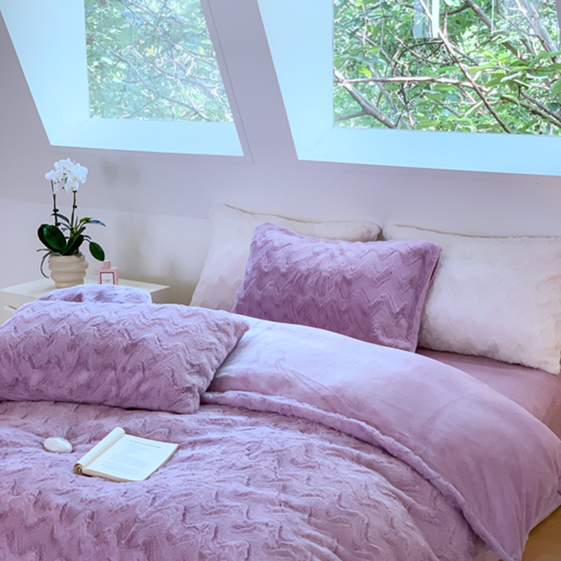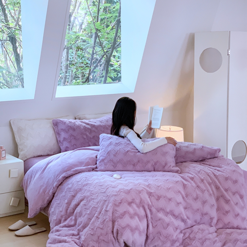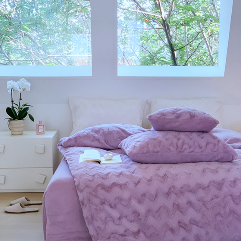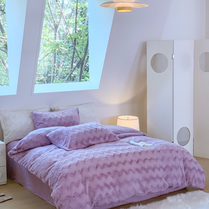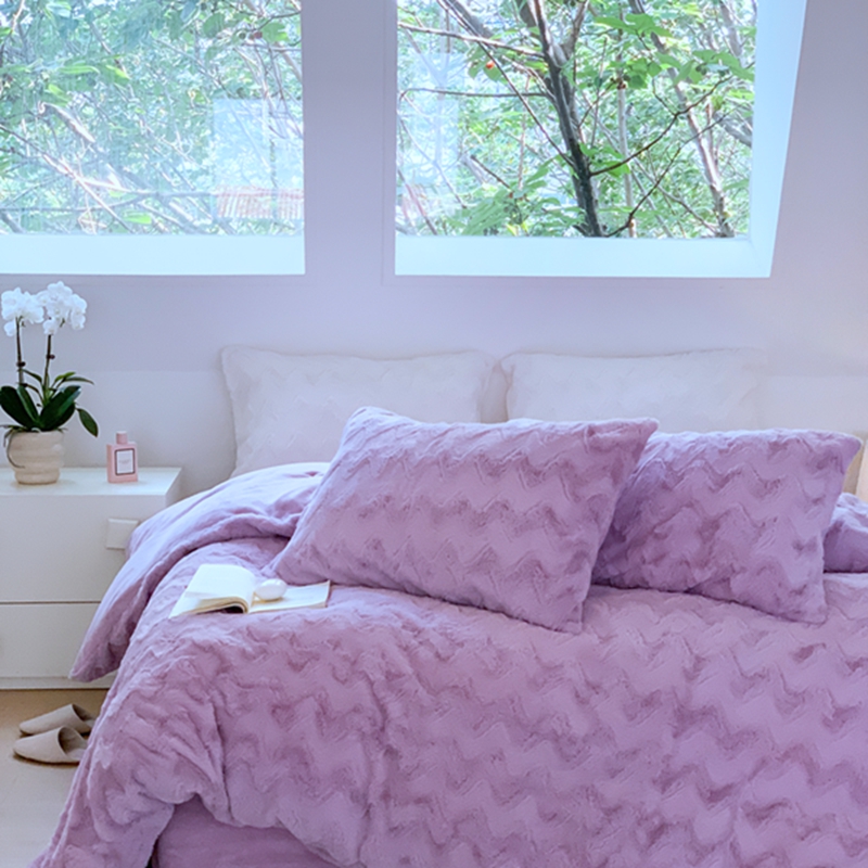 昔可家纺 2023兔兔绒四件套 紫波纹