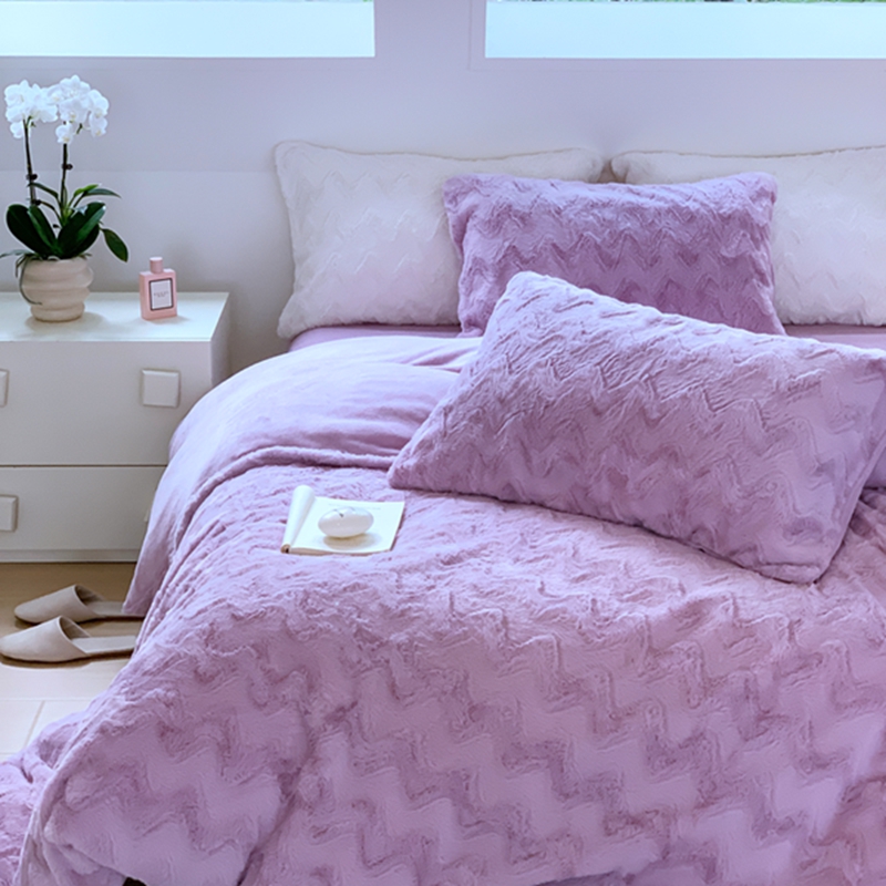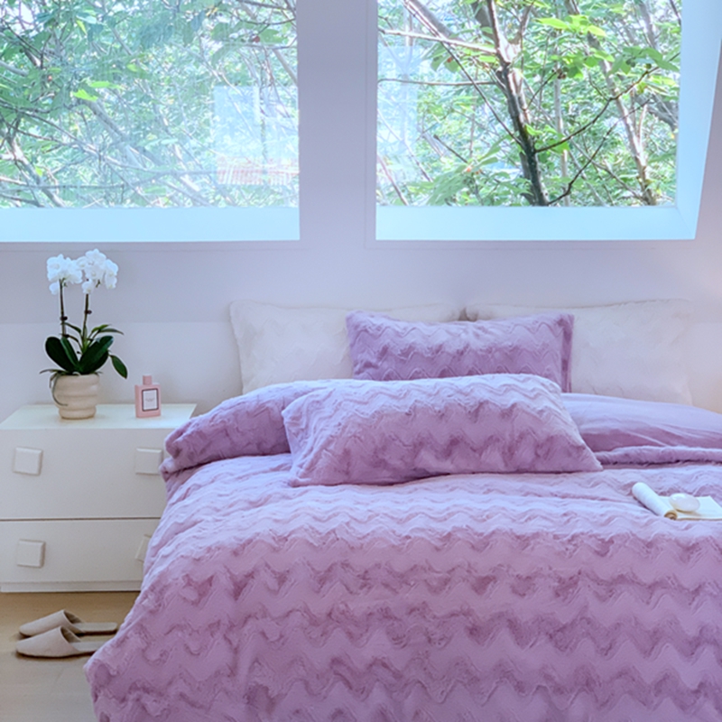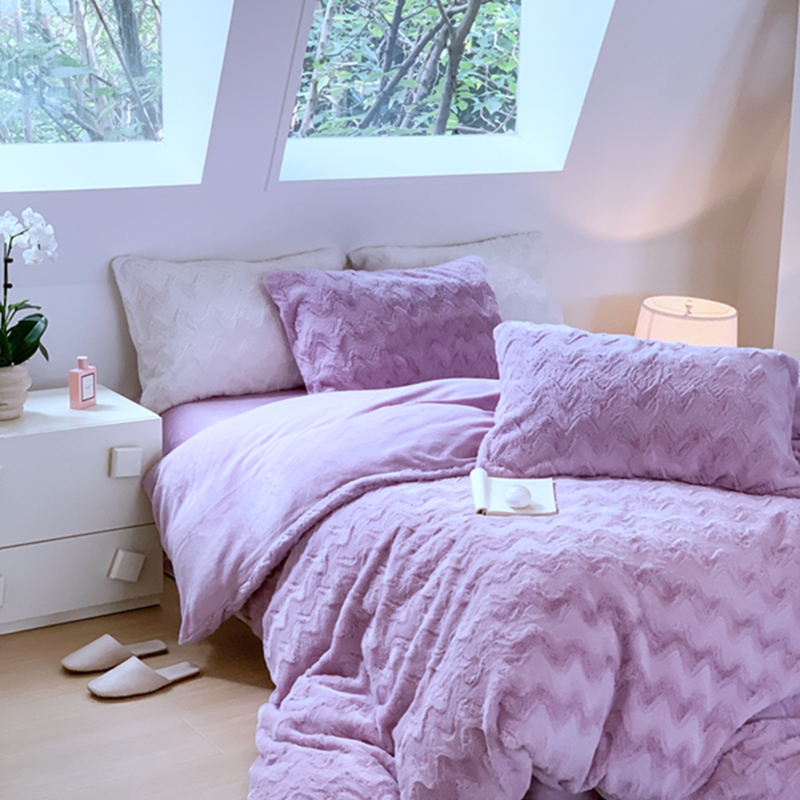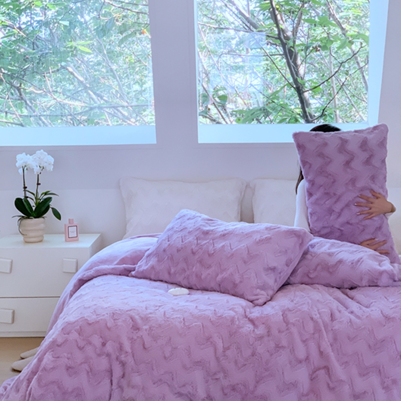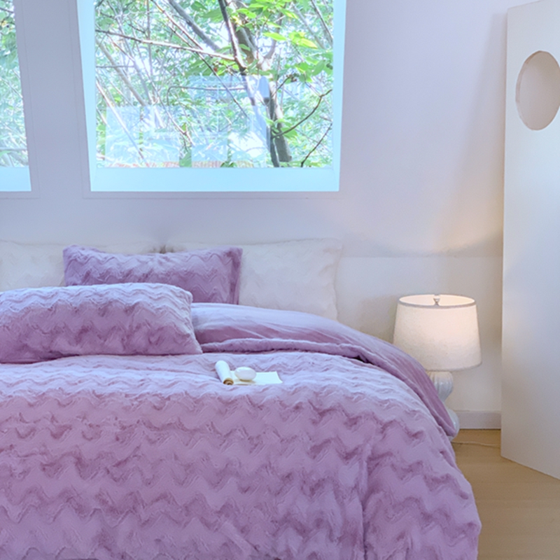 昔可家纺 2023兔兔绒四件套 紫波纹