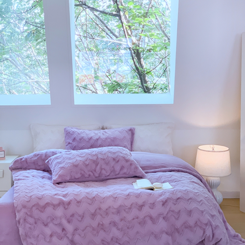 商品名称:昔可家纺 2023兔兔绒四件套 紫波纹