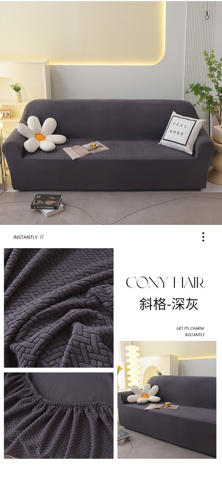 天下布艺 2023新款摇粒绒沙发套斜格 斜格深灰