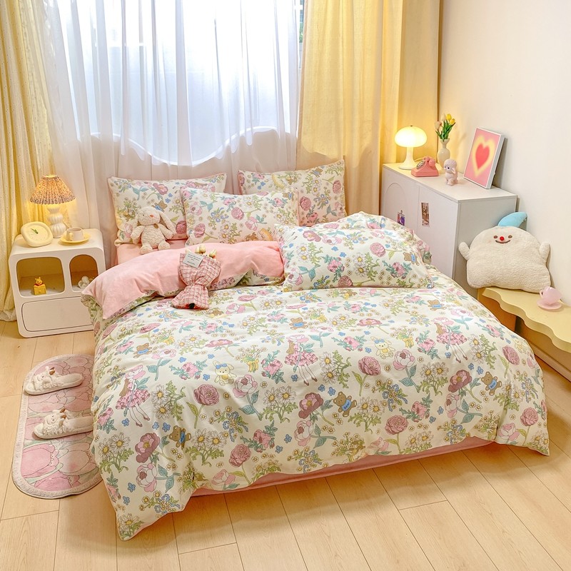 (总)曼之夏 2025新款全棉纯棉双层印花四件套,缤纷草莓,哈哈狗,花丛兔,花开半夏,花满楼,凯蒂熊仔,快乐凯蒂,快乐星球,玫瑰物语,萌萌兔,陌上花开,软萌女孩,水果派对,亭亭玉立,紫梦