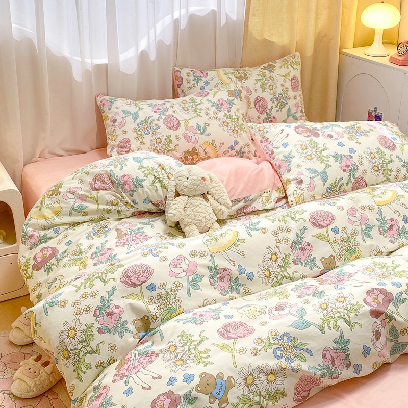 (总)曼之夏 2025新款小清新全棉双层纱四件套,半岛红茶,彩虹樱桃,春日熊,哈基米,黄油小熊,可颂,泡芙狗,晴天,如愿,碎花西高地,吾欢喜,夏日限定,小满,辛巴