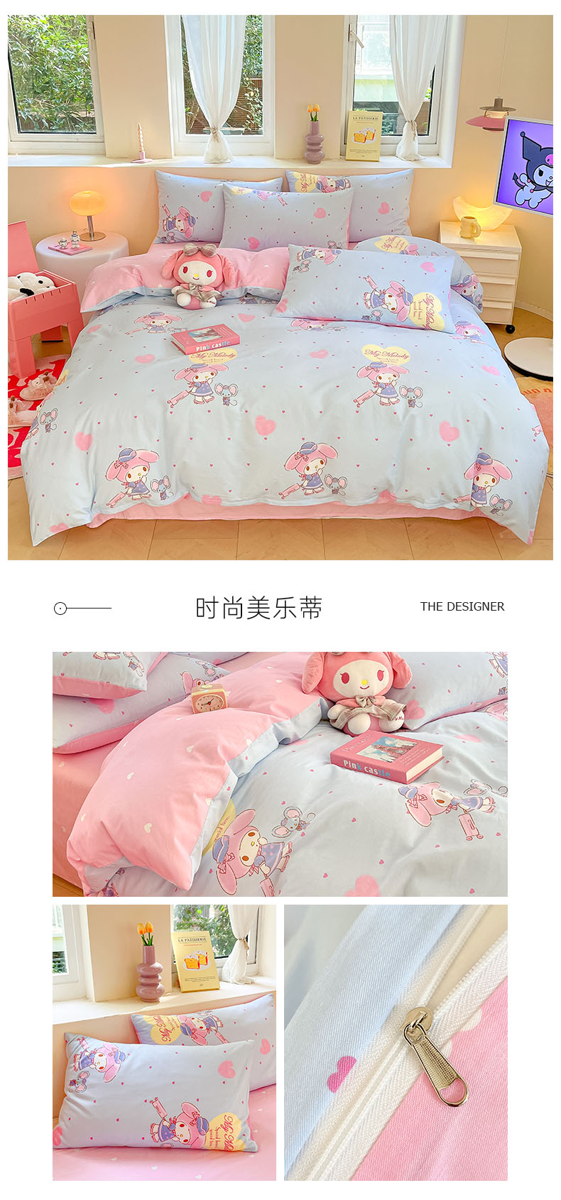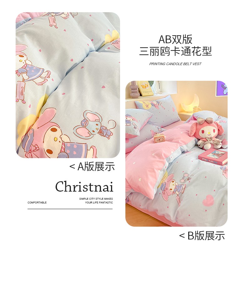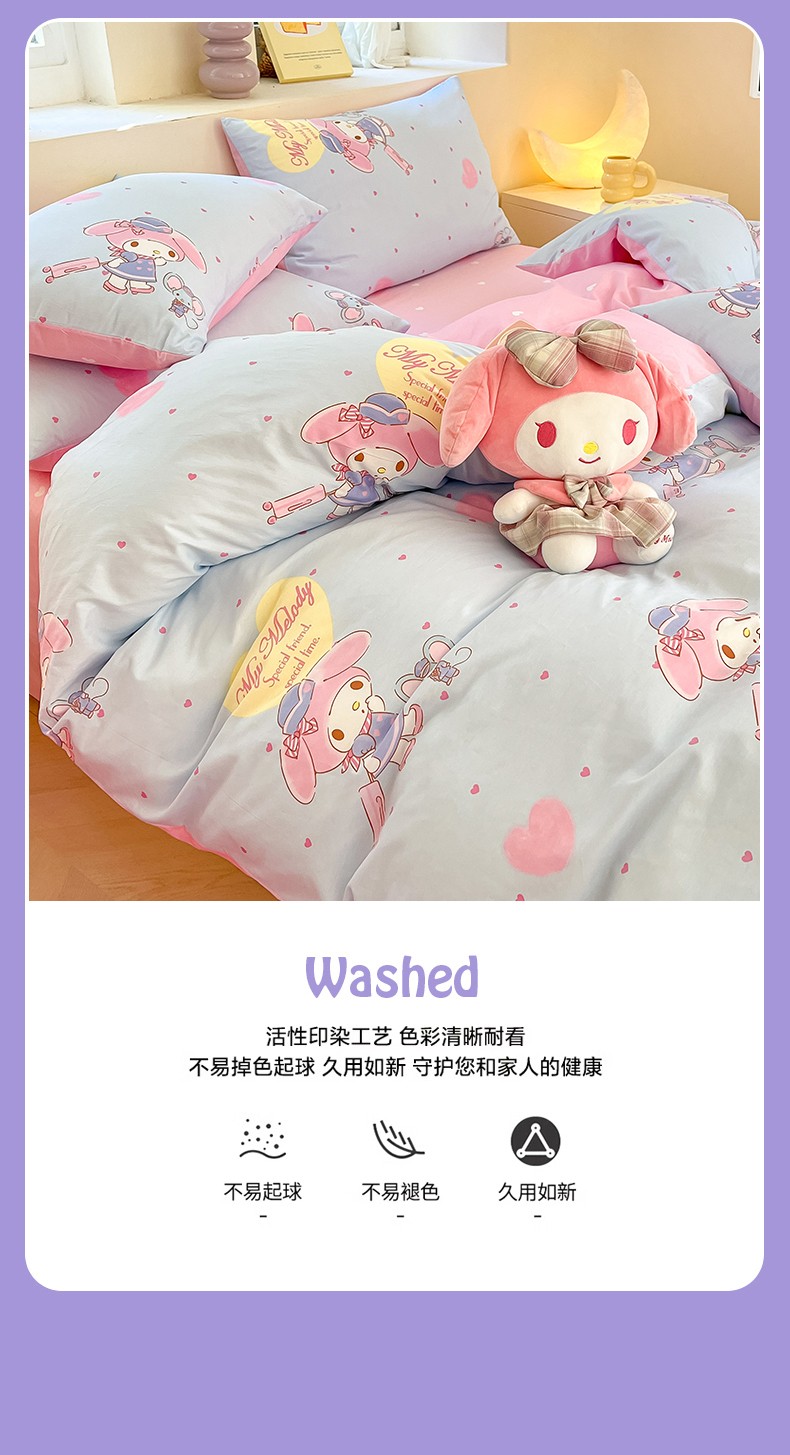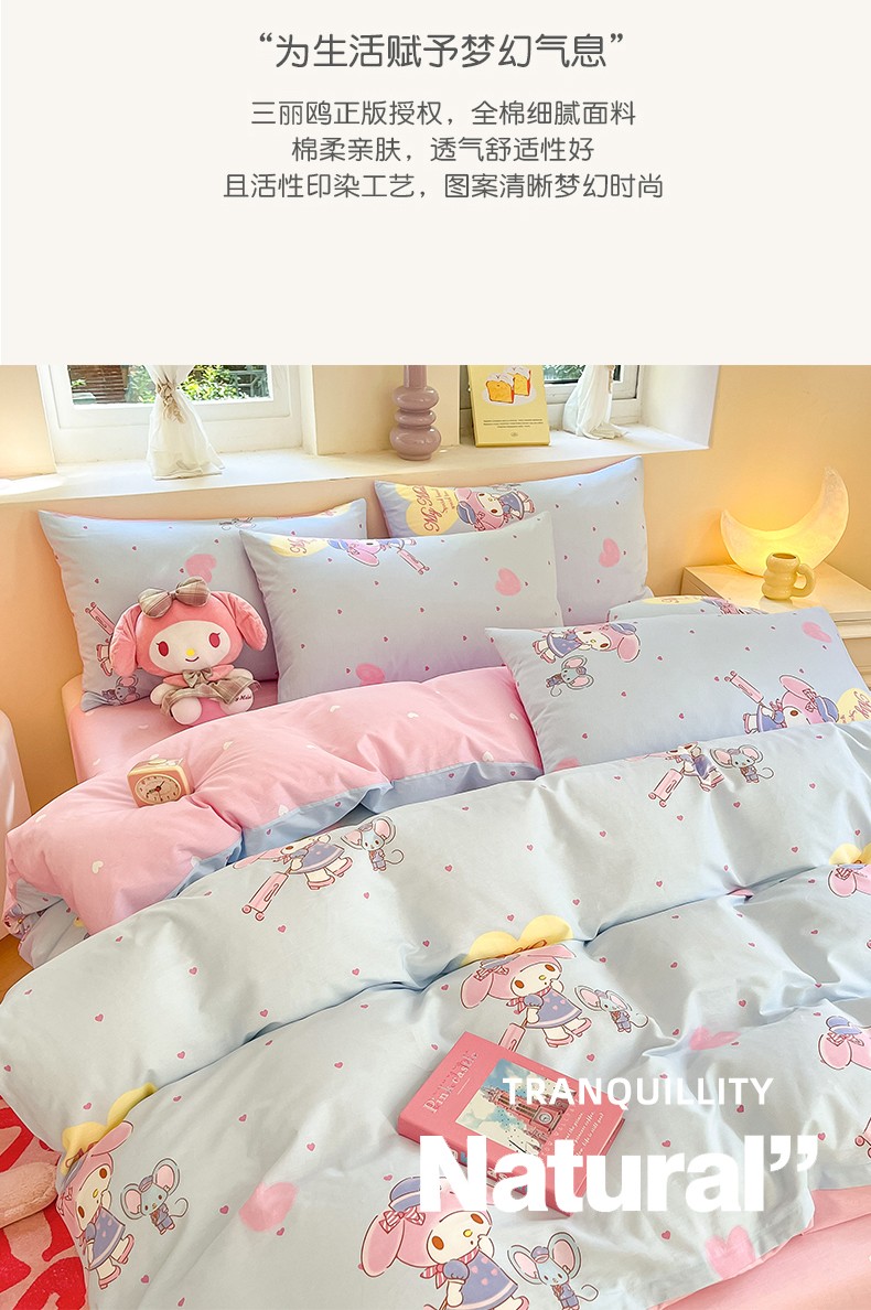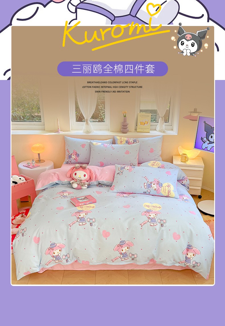 商品名称:曼之夏 2023新款全棉三丽鸥卡通四件套 时尚美乐蒂