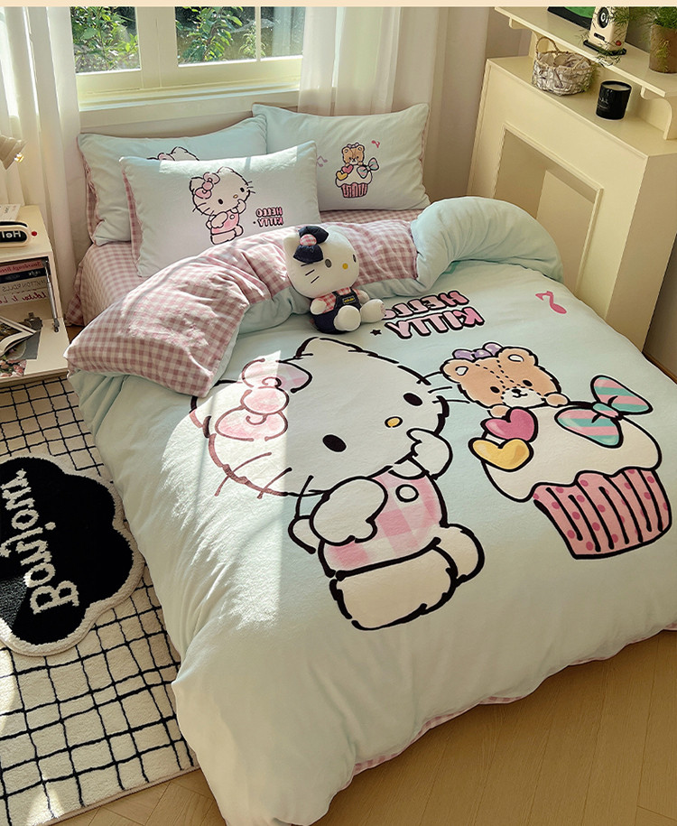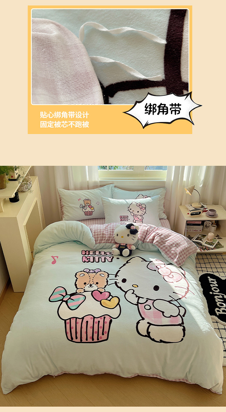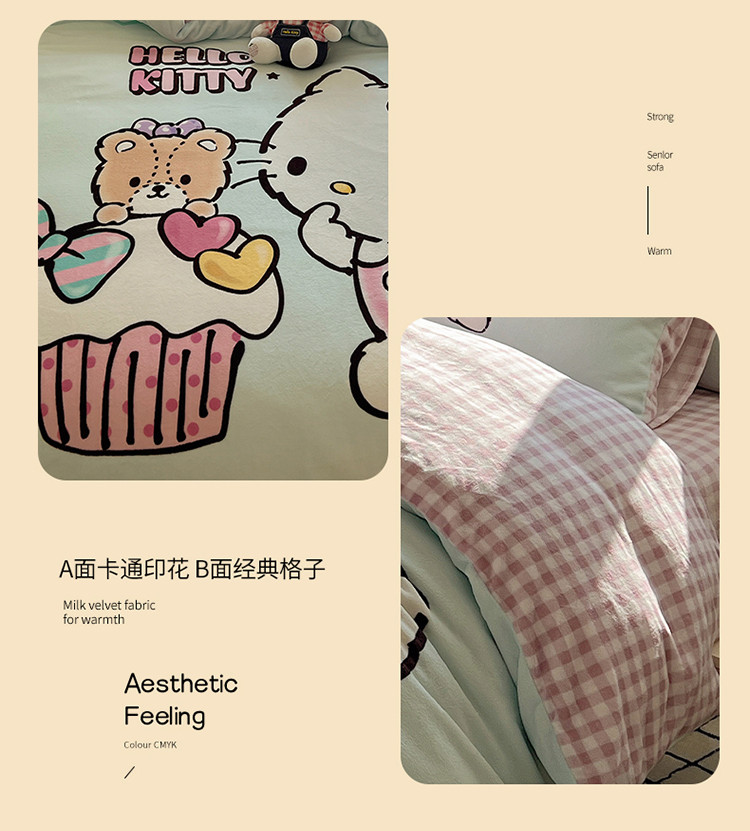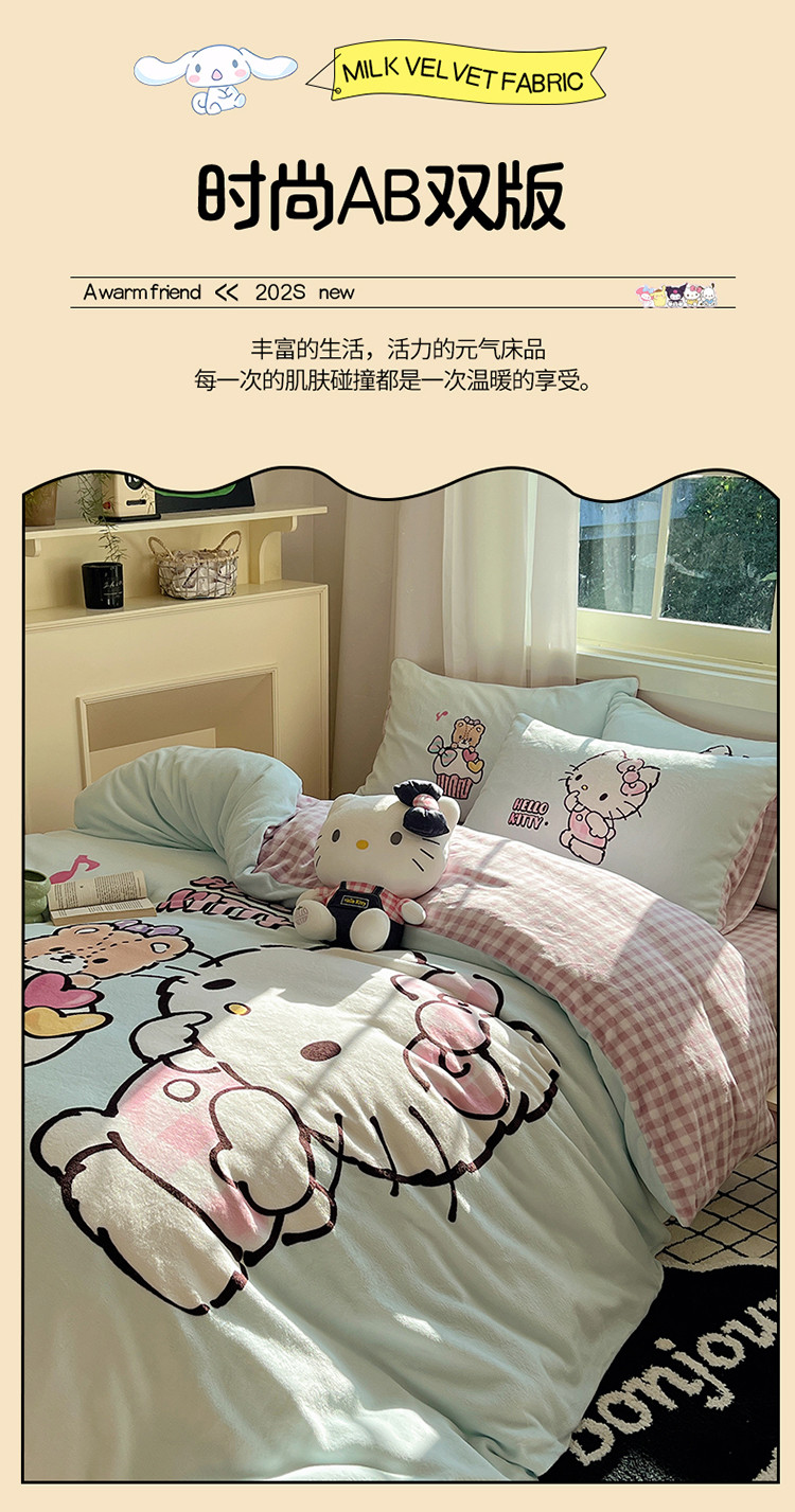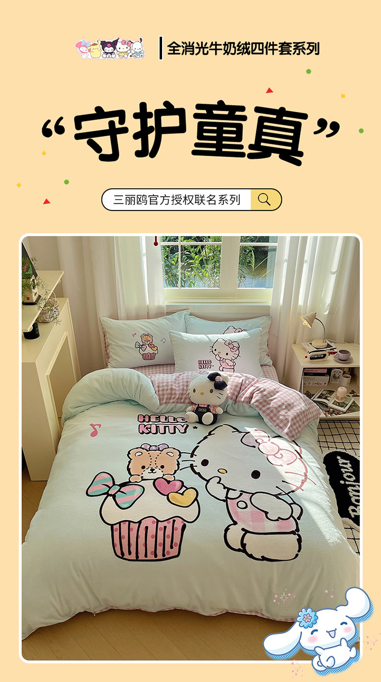 商品名称:三朵 2023新款三丽鸥牛奶绒数码印花大版系列四件套 奶油KT